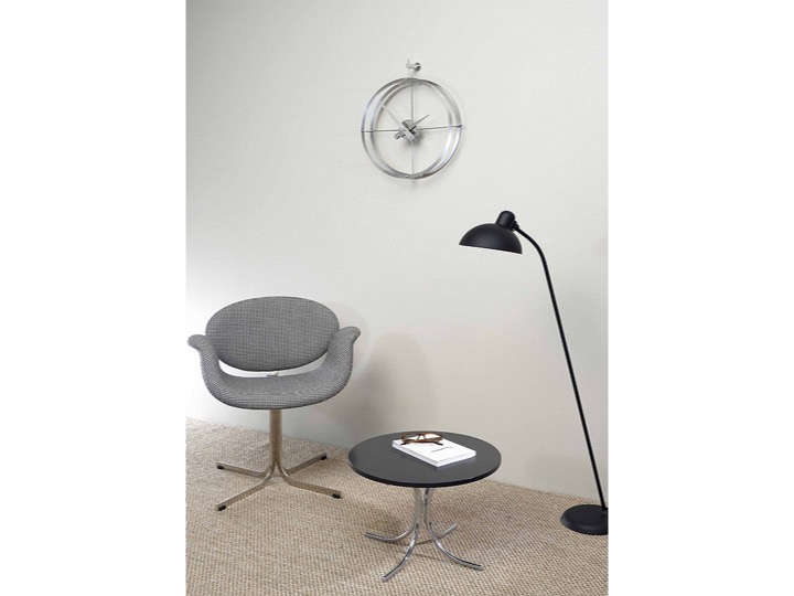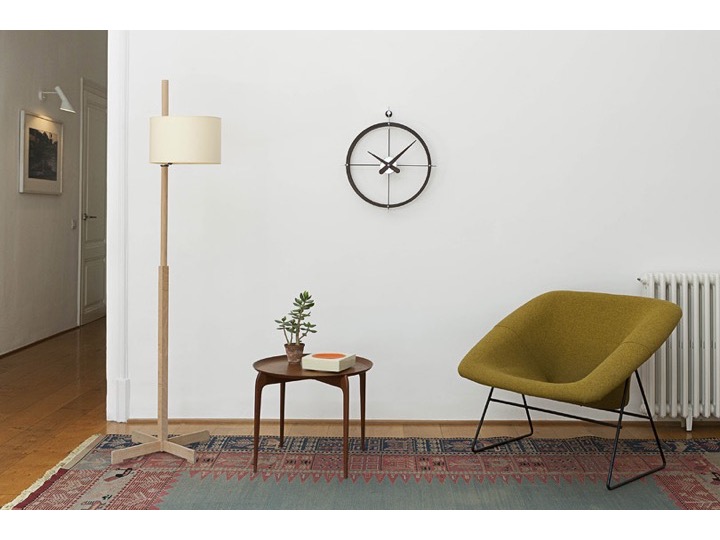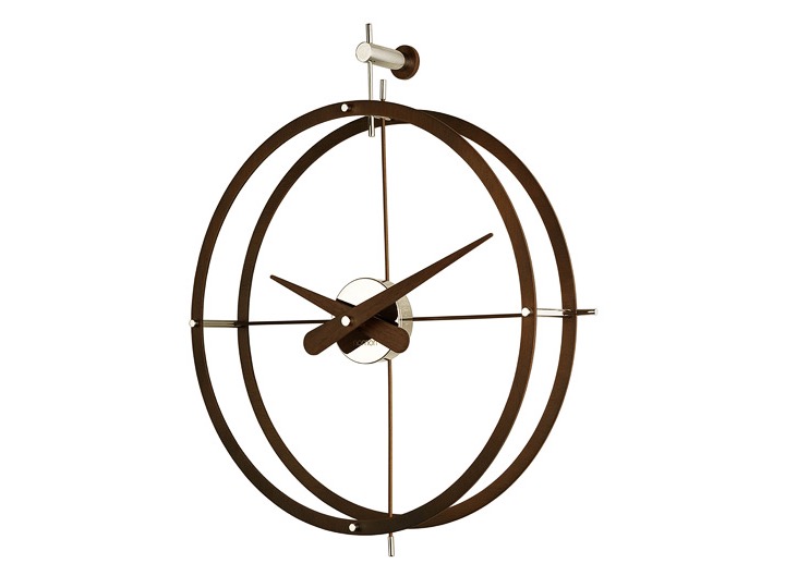 2 Puntos - nowoczesny i minimalistyczny zegar ścienny, który wtapia się w otoczenie. Dzięki temu, że pozbawiony jest tarczy, jego tarczą staje się ściana, na której zostanie powieszony. Jest to charakterystyczna cecha wielu zegarów z oferty firmy nomon. Dwie wersje - wykończona polerowaną stalą lub drewnem kalabo