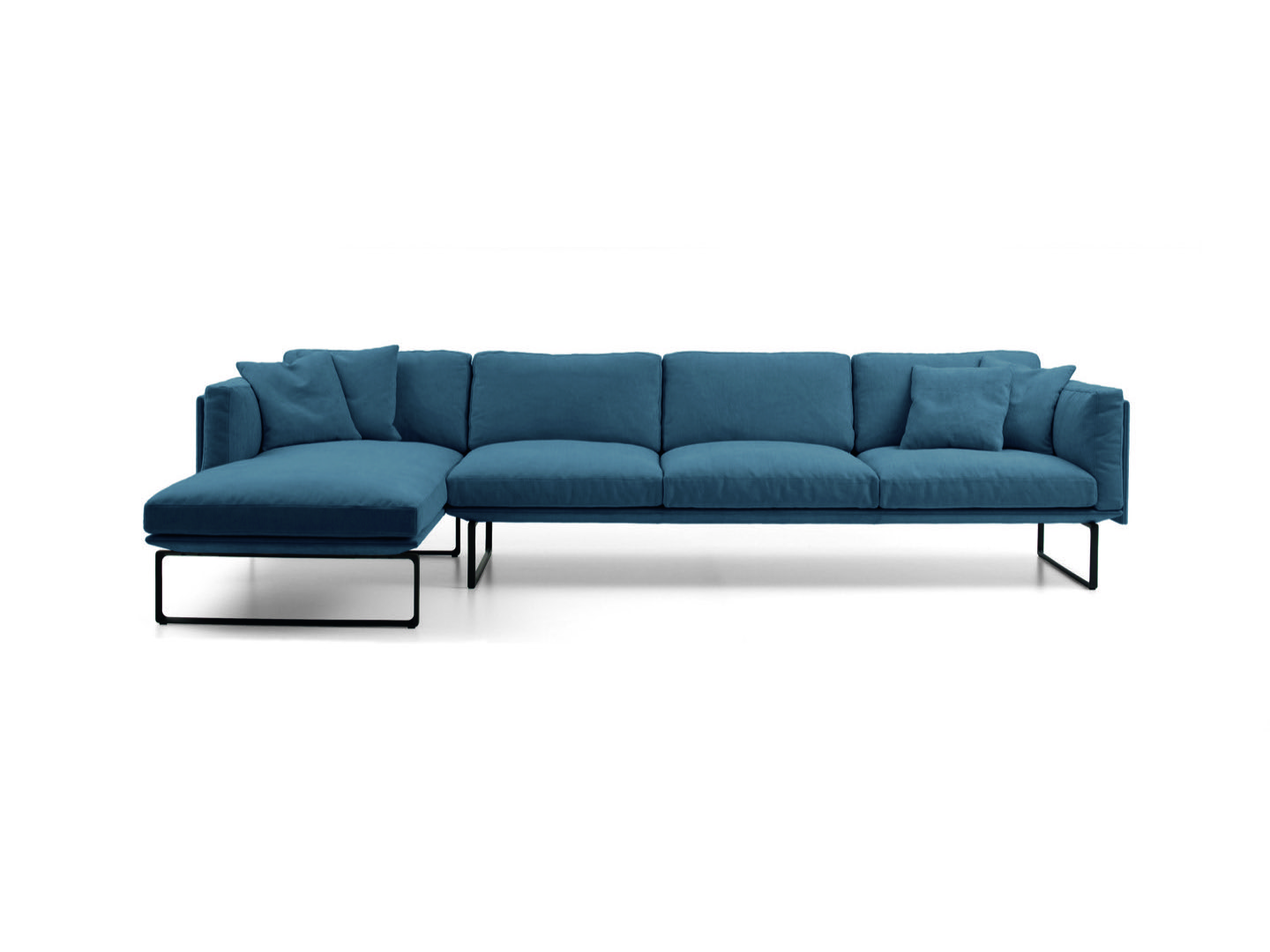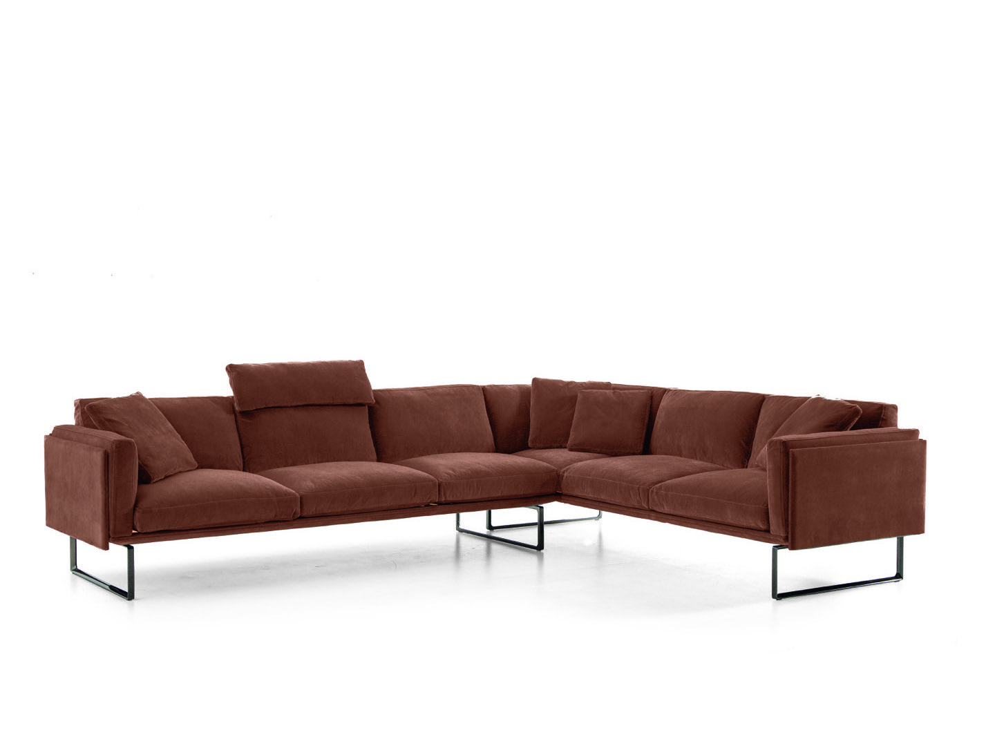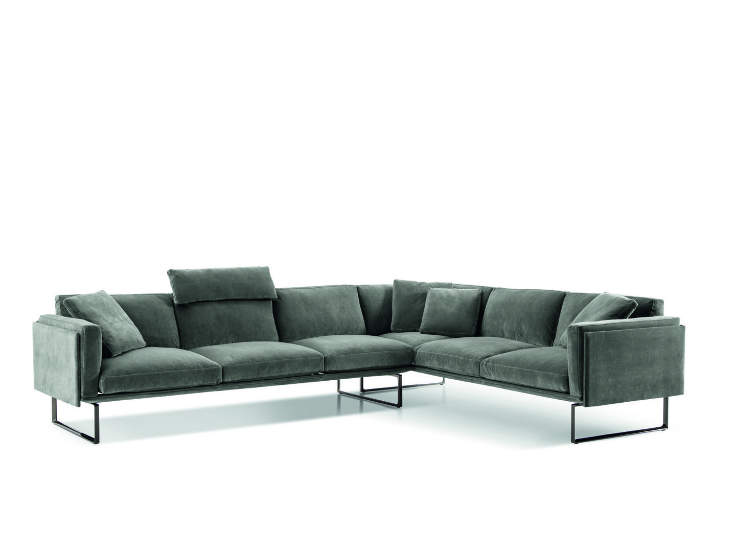 Minimalistyczne kształty charakteryzują ponadczasową elegancję tej segmentowej sofy, która daje dodatkowy komfort dzięki puchowym wstawkom w poduszkach siedziska i oparcia oraz podłokietnikach.