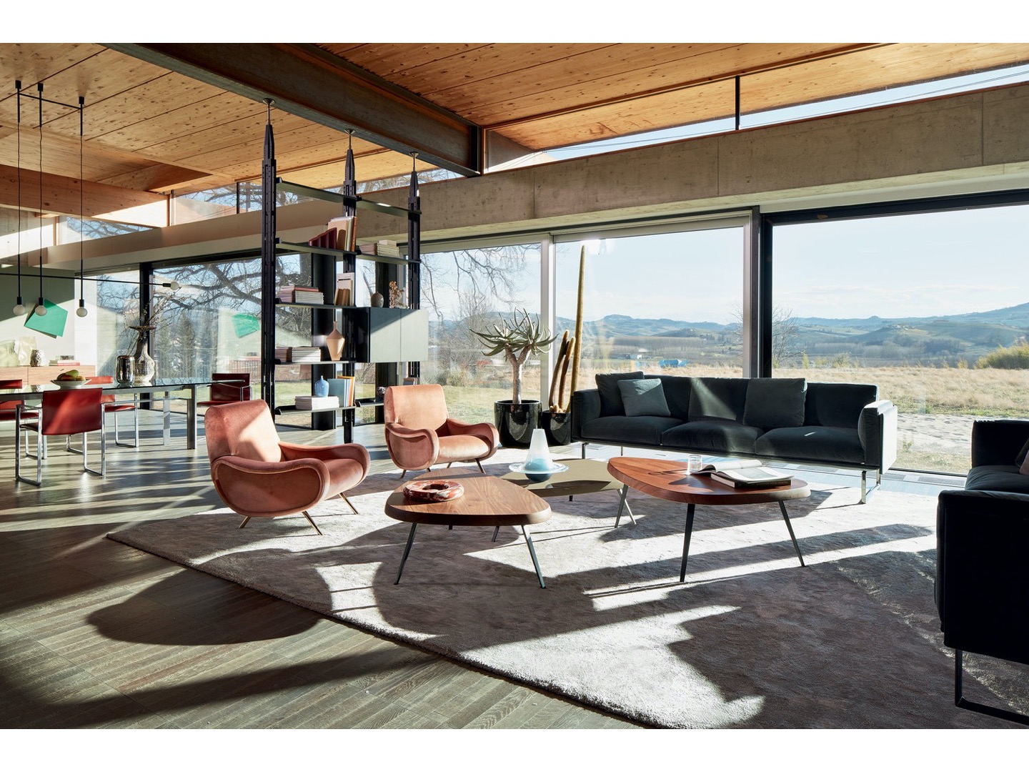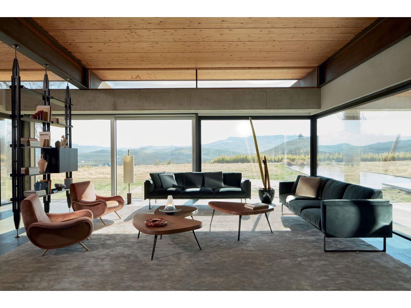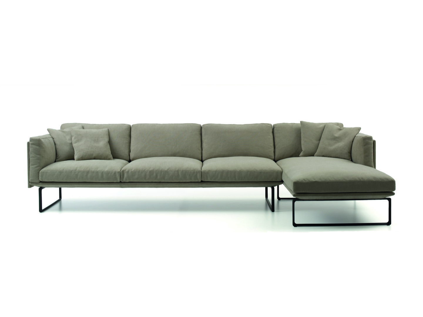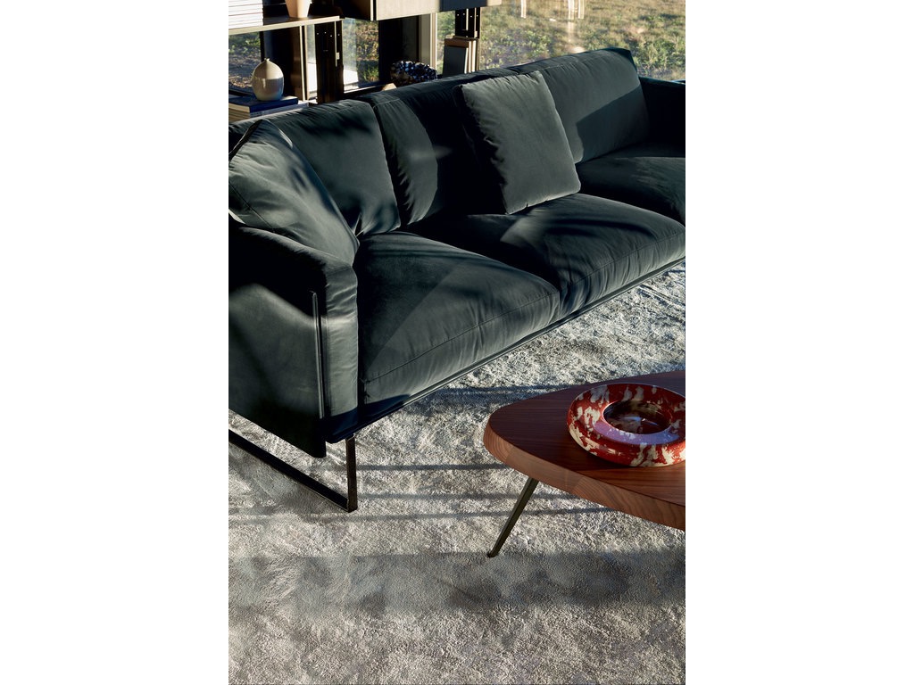 Minimalistyczne kształty charakteryzują ponadczasową elegancję tej segmentowej sofy, która daje dodatkowy komfort dzięki puchowym wstawkom w poduszkach siedziska i oparcia oraz podłokietnikach.