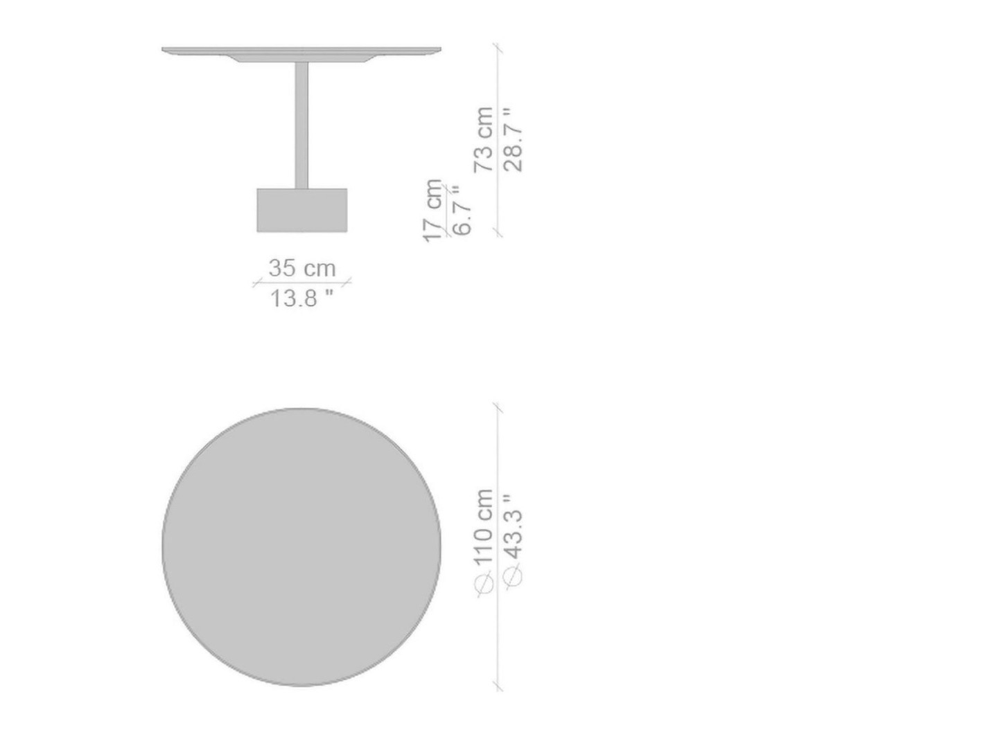 wysokość 73 x średnica blatu 110 x średnica podstawy 35 cm