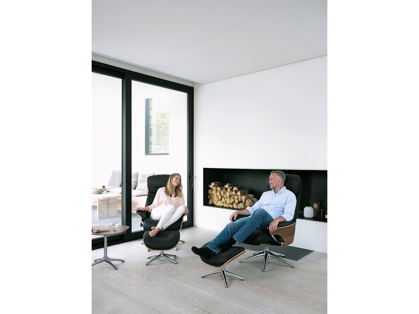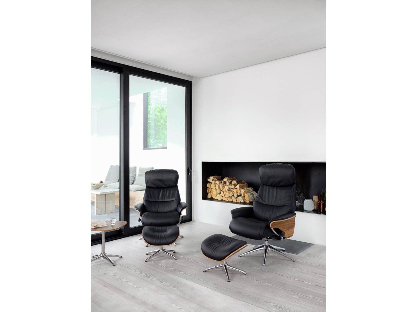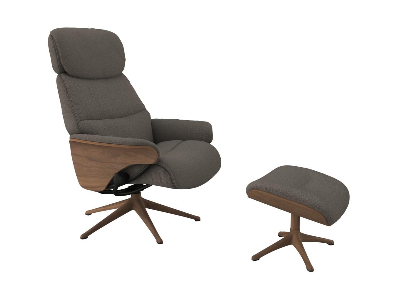 Aarhus został zaprojektowany z funkcją pochylania opartą na grawitacji, którą można regulować zarówno pod kątem wzrostu, jak i wagi. Mechanizm podwójnej regulacji zapewnia naturalny i stylowy wypoczynek, który pozwala szybko dostosować kąt do preferowanej pozycji. Podnóżek zapewni Ci spokojne miejsce na relaks. Zagłówek ma regulowaną wysokość i kąt, aby uzyskać najlepszą pozycję do czytania, oglądania telewizji lub relaksu. Eleganckie nogi aluminiowe dostępne są w kolorze Wood Decor, czarnym lub polerowanym aluminium.