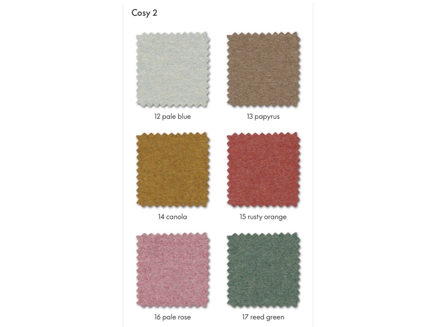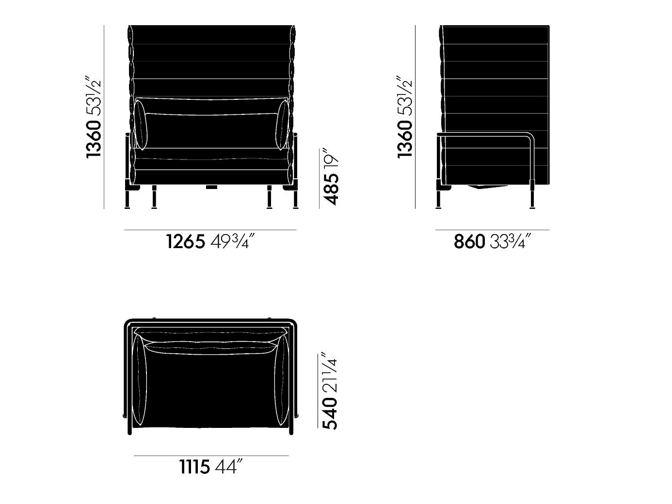 Sofa dostępna jest w dwóch wersjach Alcove Sofa - 94 cm h, oraz Alcove Sofa Highback Sofa - 136 cm h. Każda z wersji dostępna jest w trzech długościach: 125,5 cm, 164 cm, 237 cm oraz w trzech różnych tapicerkach: Credo, Laser i Panamone w szerokiej gamie kolorystycznej.
