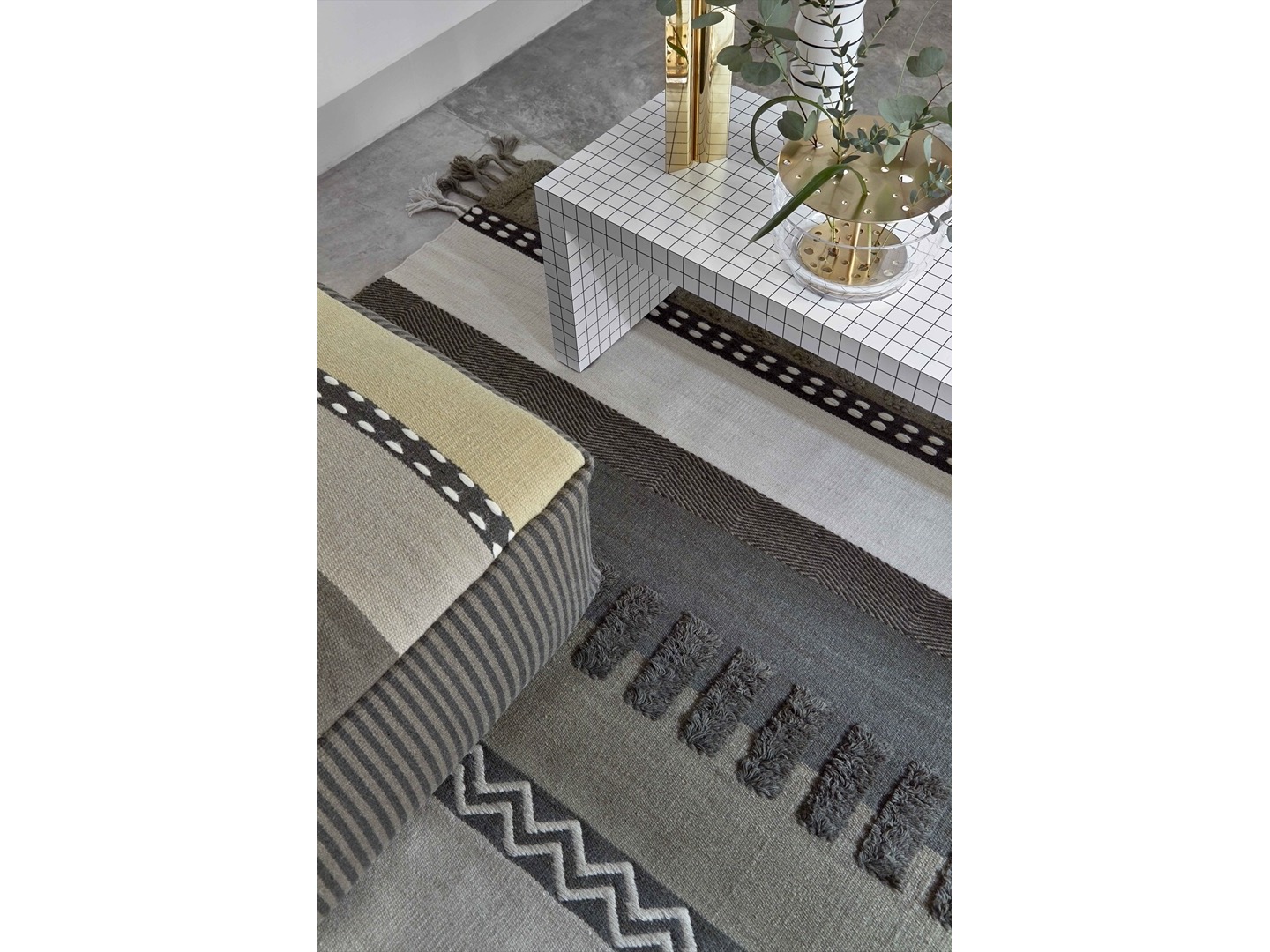 W skład kolekcji wchodzą dwie wersje dywanu Alexandra: neutralna i kolorowa. Połączenie plecionych warkoczy wystających poza zarys dywanu nadaje egzotyki potęgowanej przez splot włókien.