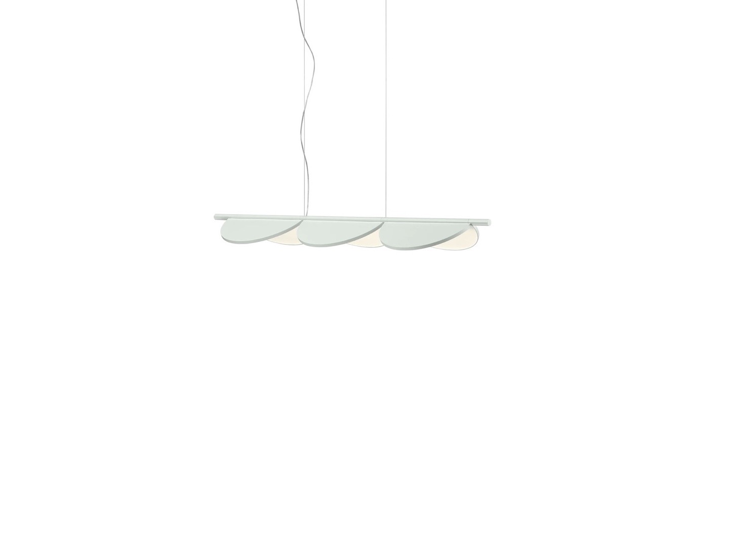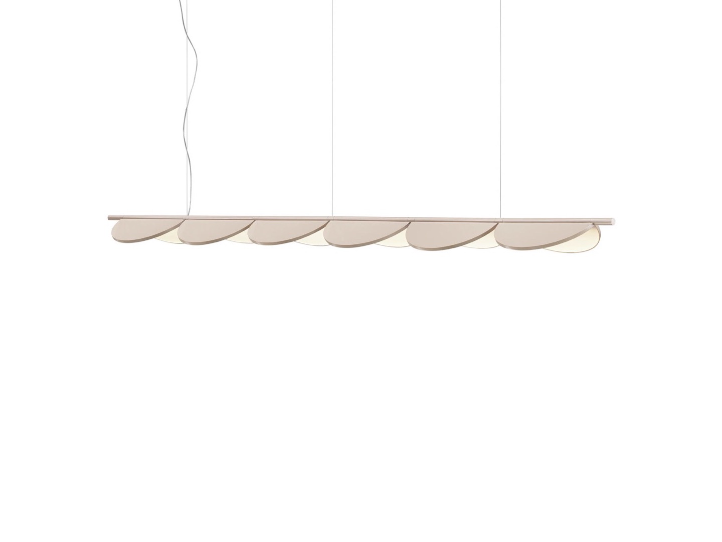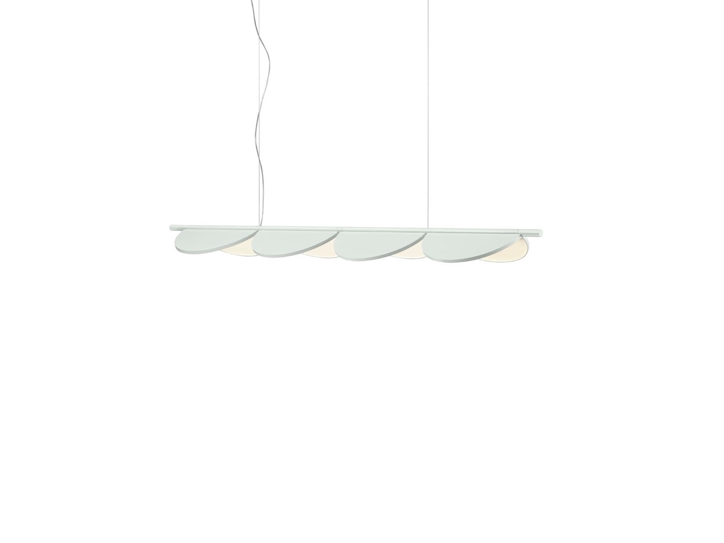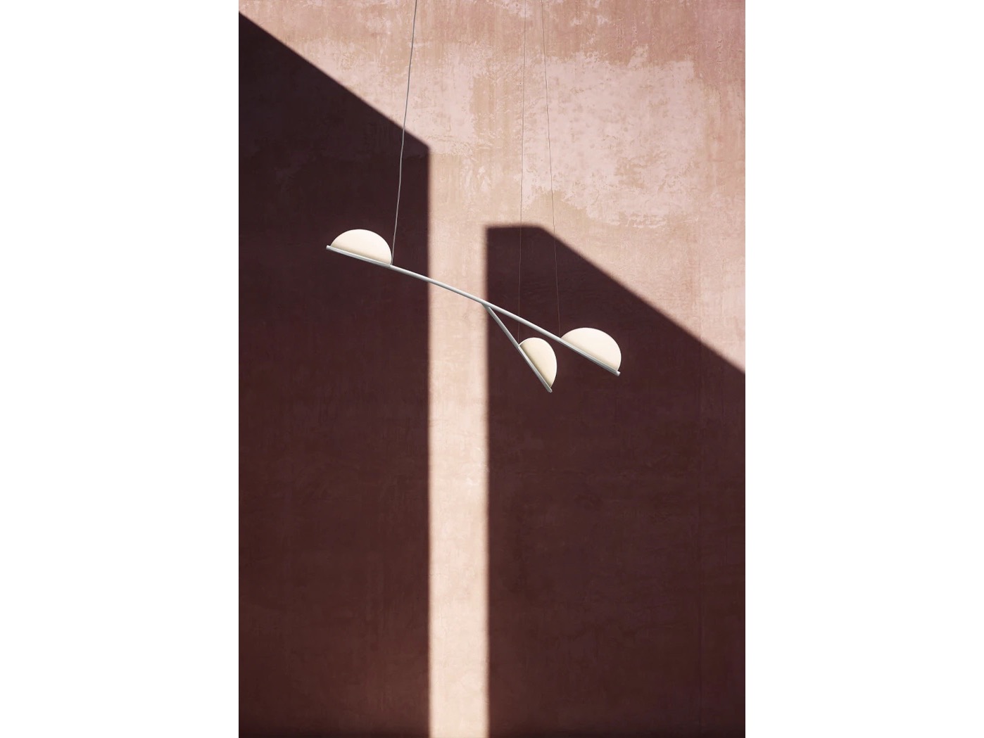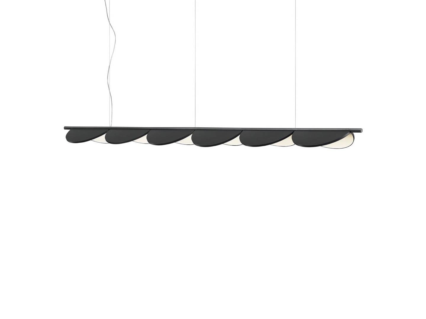 Lampa wisząca o rozproszonej emisji światła wykonana jest z aluminium i końcówek aluminiowych CNC z matowym lub metalizowanym wykończeniem. Wyposażona w zintegrowaną technologię Edge Lighting.