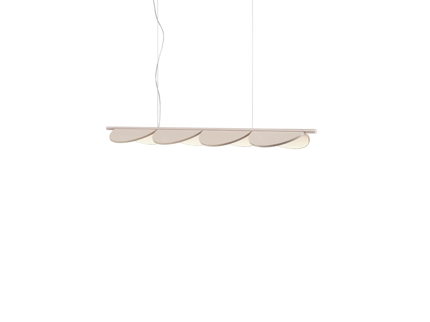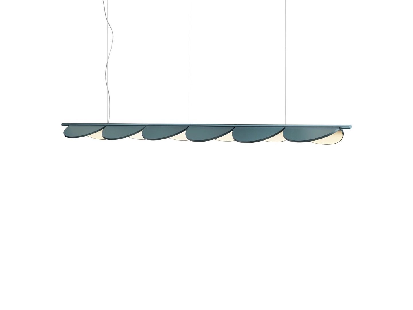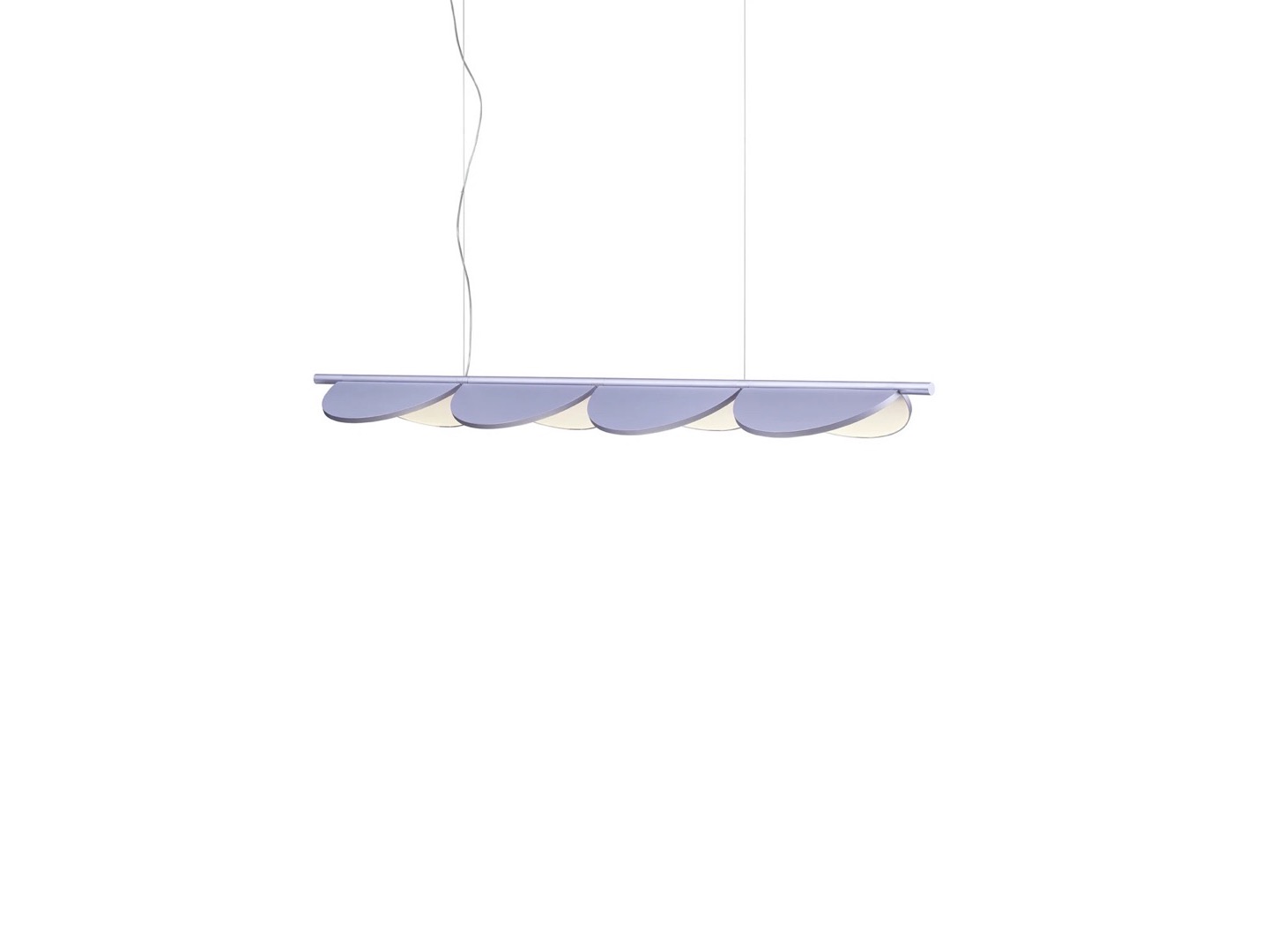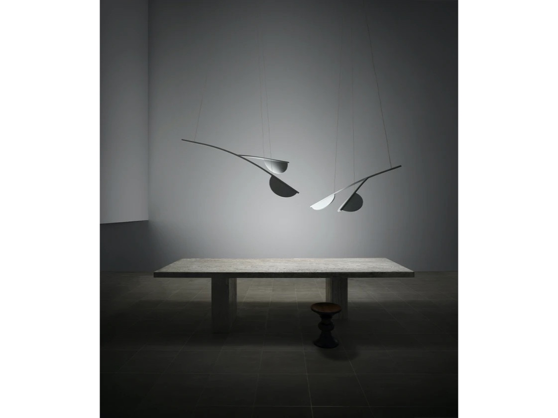 Lampa wisząca o rozproszonej emisji światła wykonana jest z aluminium i końcówek aluminiowych CNC z matowym lub metalizowanym wykończeniem. Wyposażona w zintegrowaną technologię Edge Lighting.