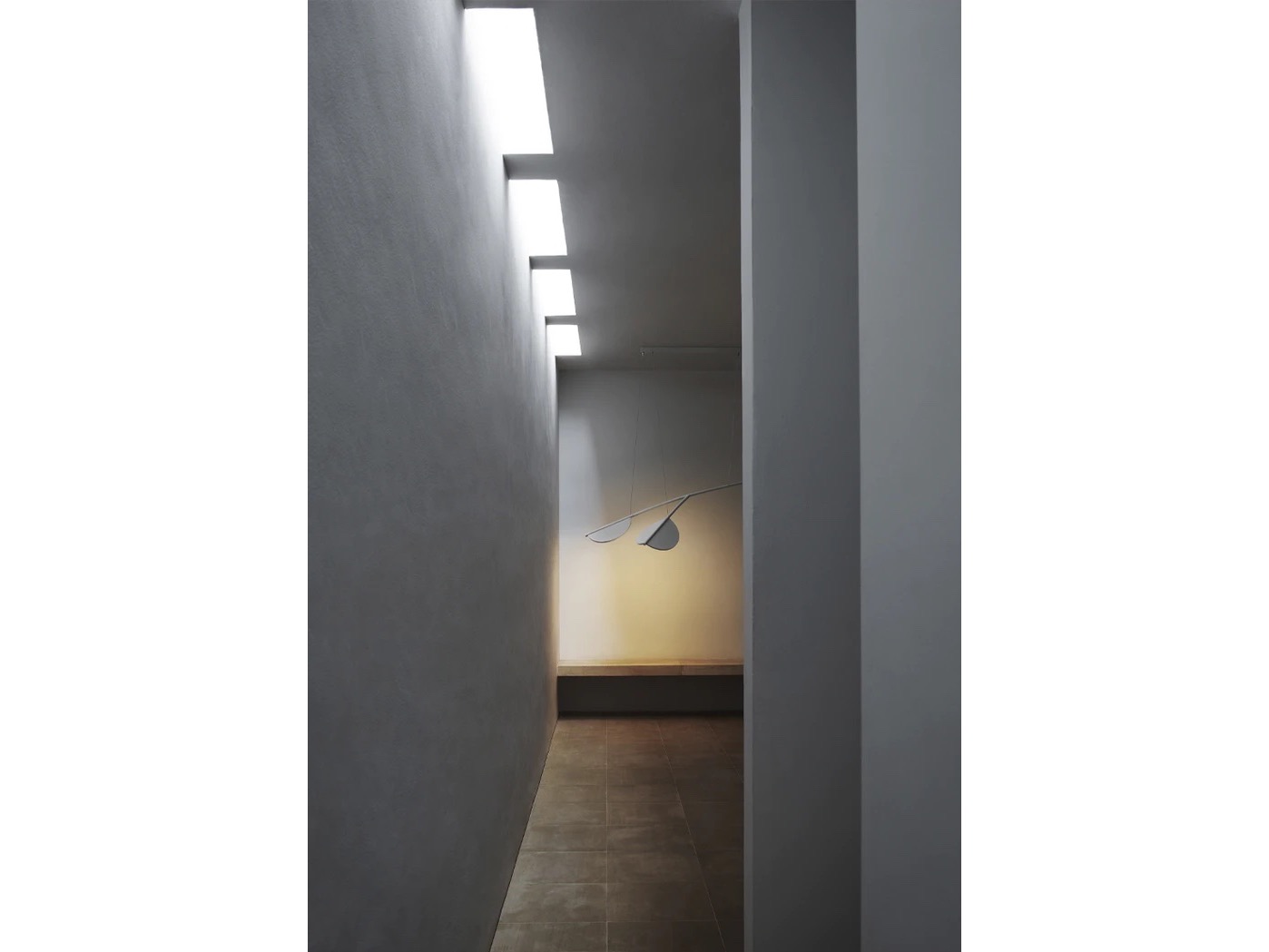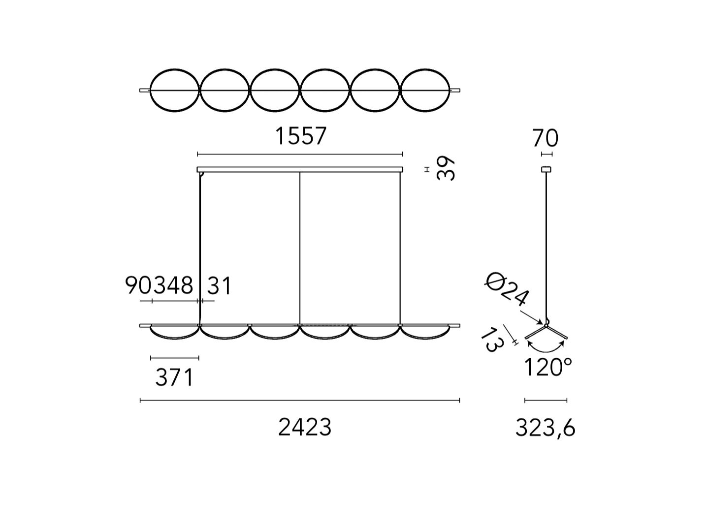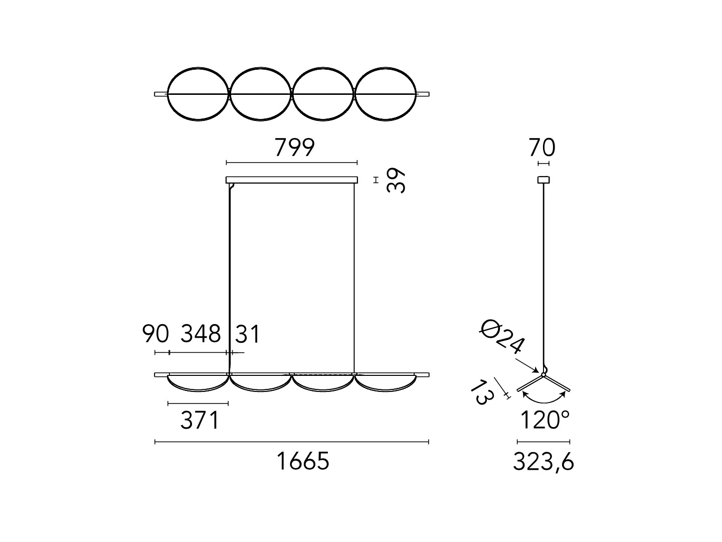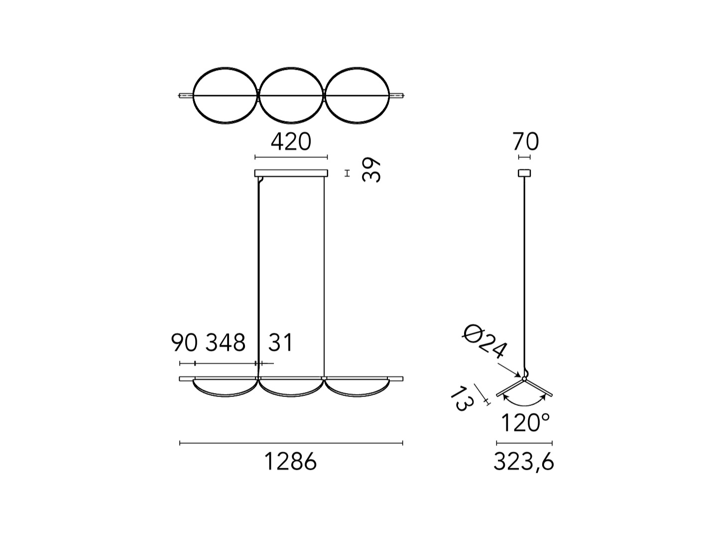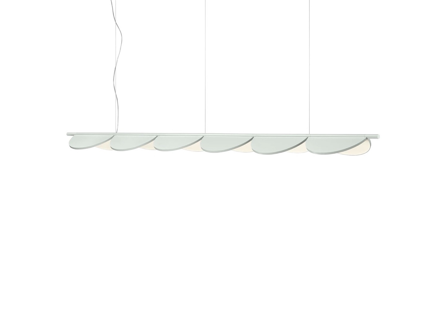 Lampa wisząca o rozproszonej emisji światła wykonana jest z aluminium i końcówek aluminiowych CNC z matowym lub metalizowanym wykończeniem. Wyposażona w zintegrowaną technologię Edge Lighting.