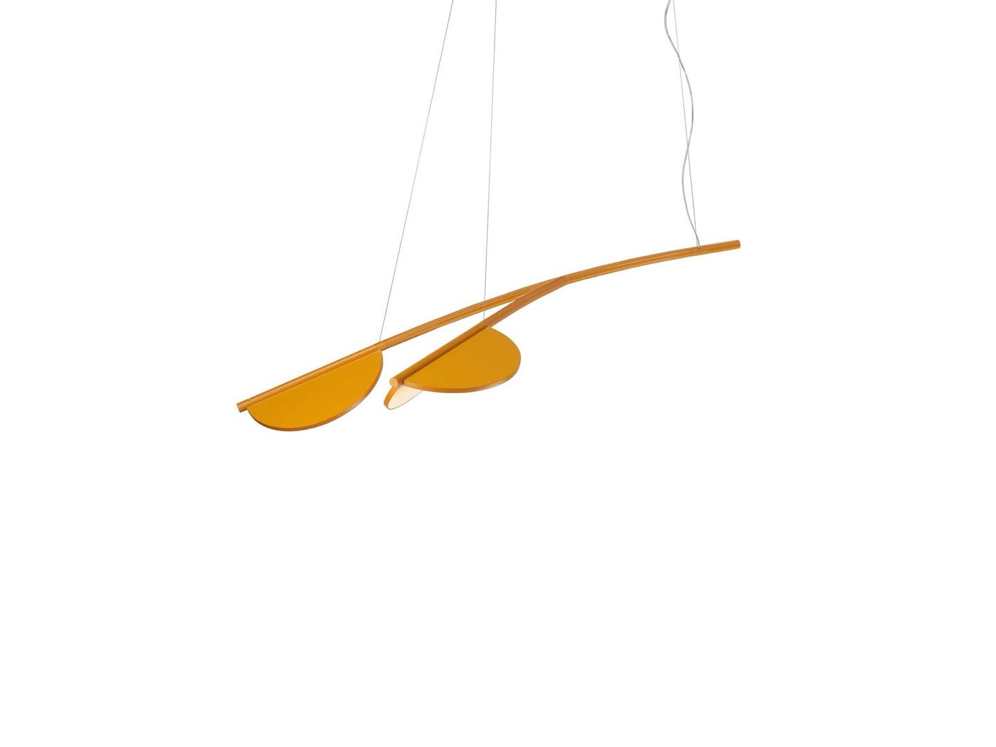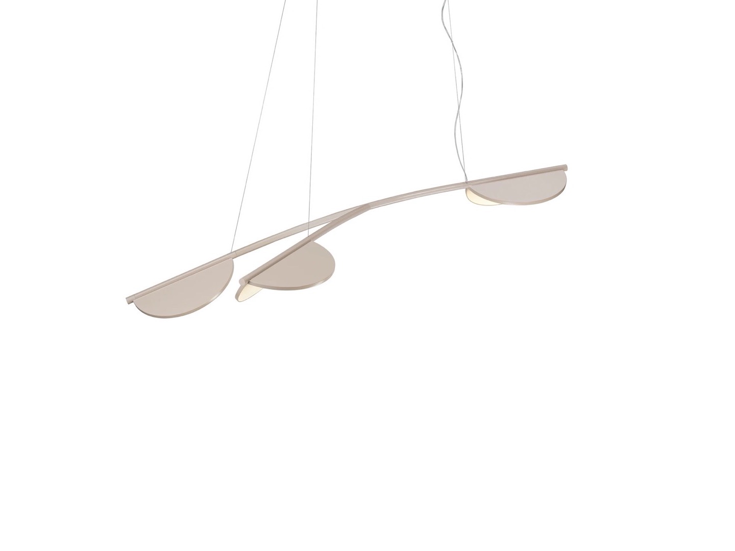 Lampa wisząca o rozproszonej emisji światła wykonana jest z aluminium i końcówek aluminiowych CNC z matowym lub metalizowanym wykończeniem. Wyposażona w zintegrowaną technologię Edge Lighting.