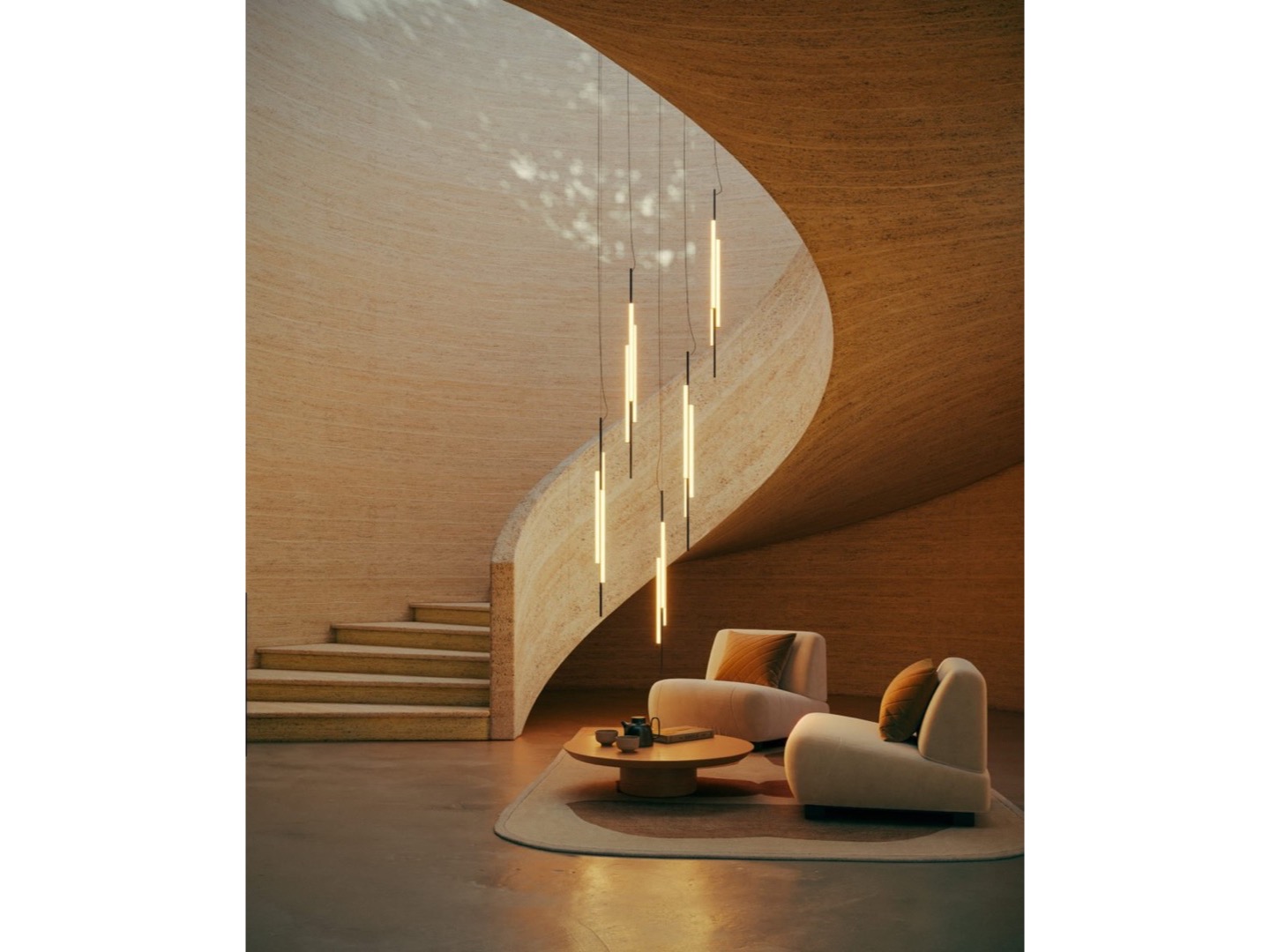Nowa Ambrosia umożliwia tworzenie pionowych kompozycji świetlnych, łącząc w powtarzalności różne rozmiary, aby oświetlić duże przestrzenie. Zamontowany indywidualnie wypełnia przestrzeń światłem i ciepłem. Jego smukła konstrukcja tworzy idealną scenę w każdym pomieszczeniu. Całkowicie nowa perspektywa dla tego elastycznego systemu oświetleniowego, który osiąga maksymalną ekspresję świetlną przy minimalistycznej strukturze.