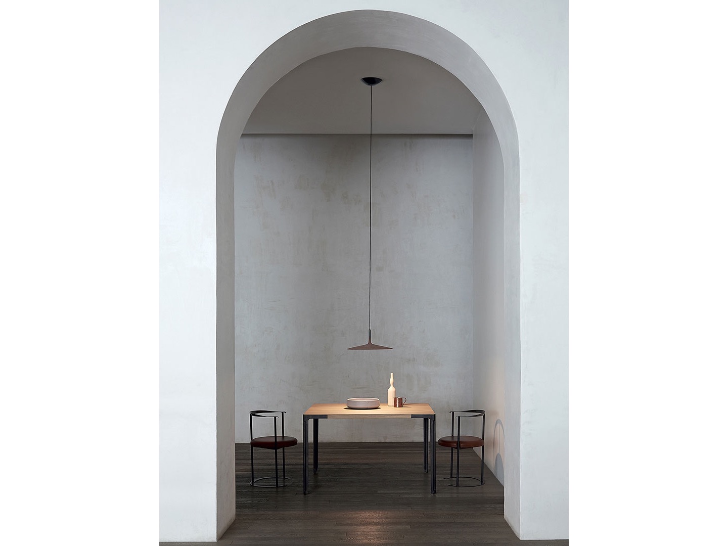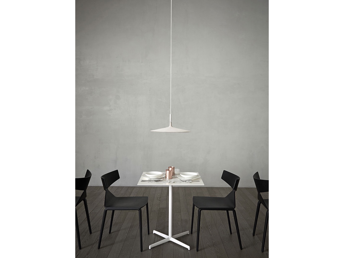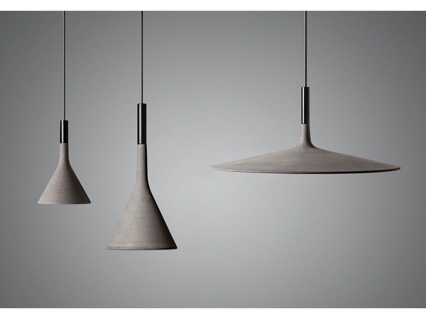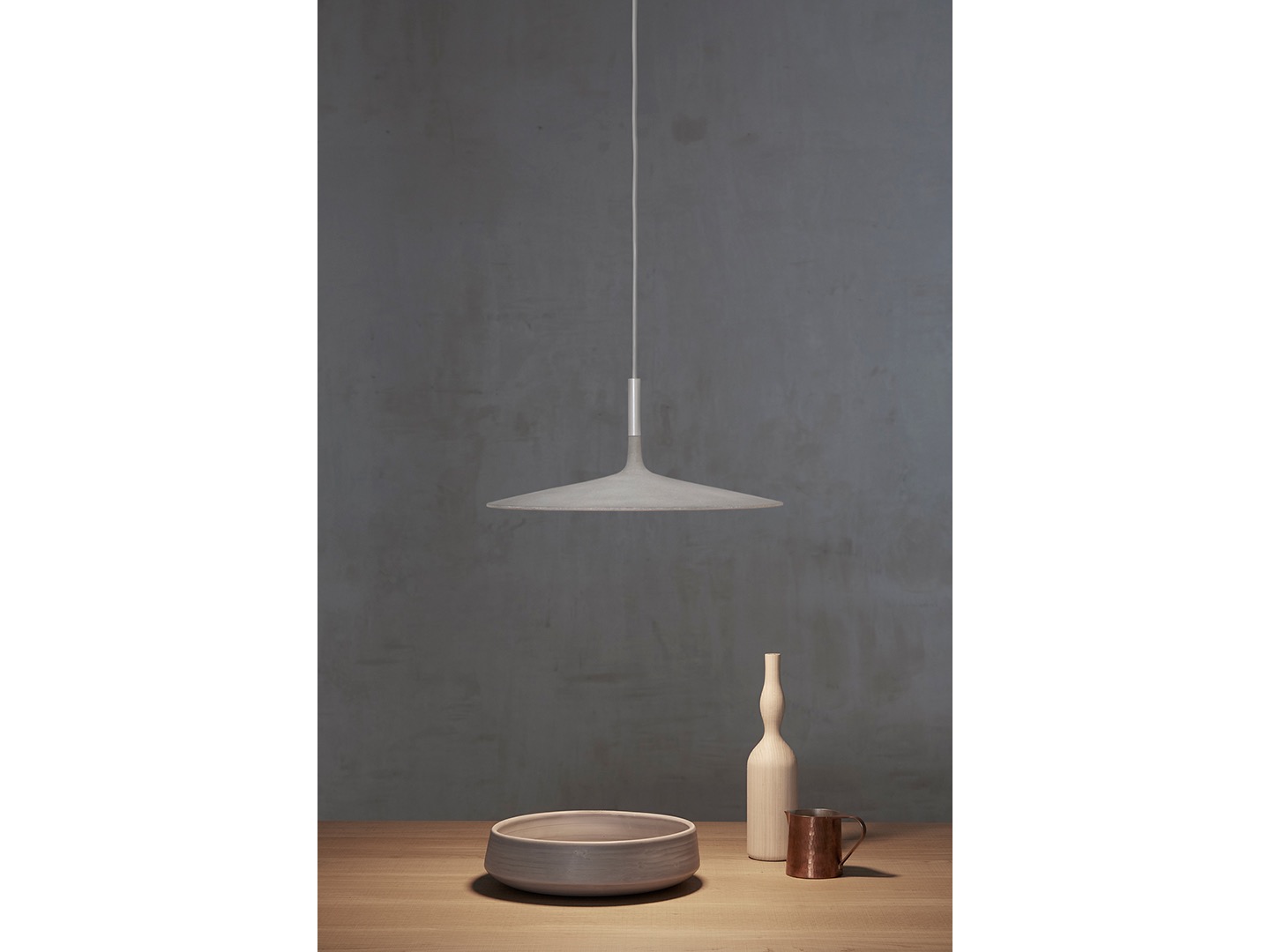 W lampach Aplomb główną rolę odgrywa specjalnie opracowany beton. Duża i smukła konstrukcja lampy wiszącej Aplomb Large rozprasza szeroki strumień światła.