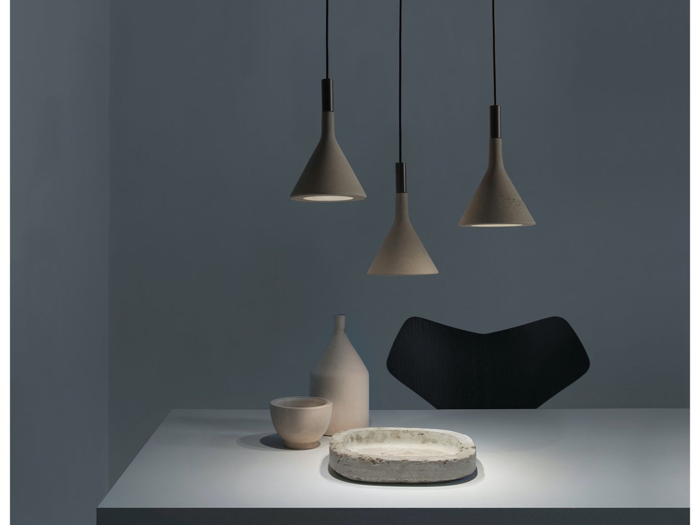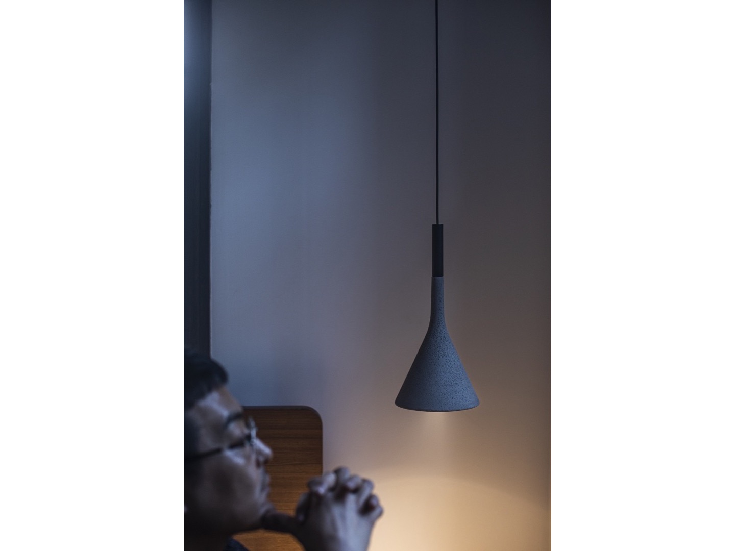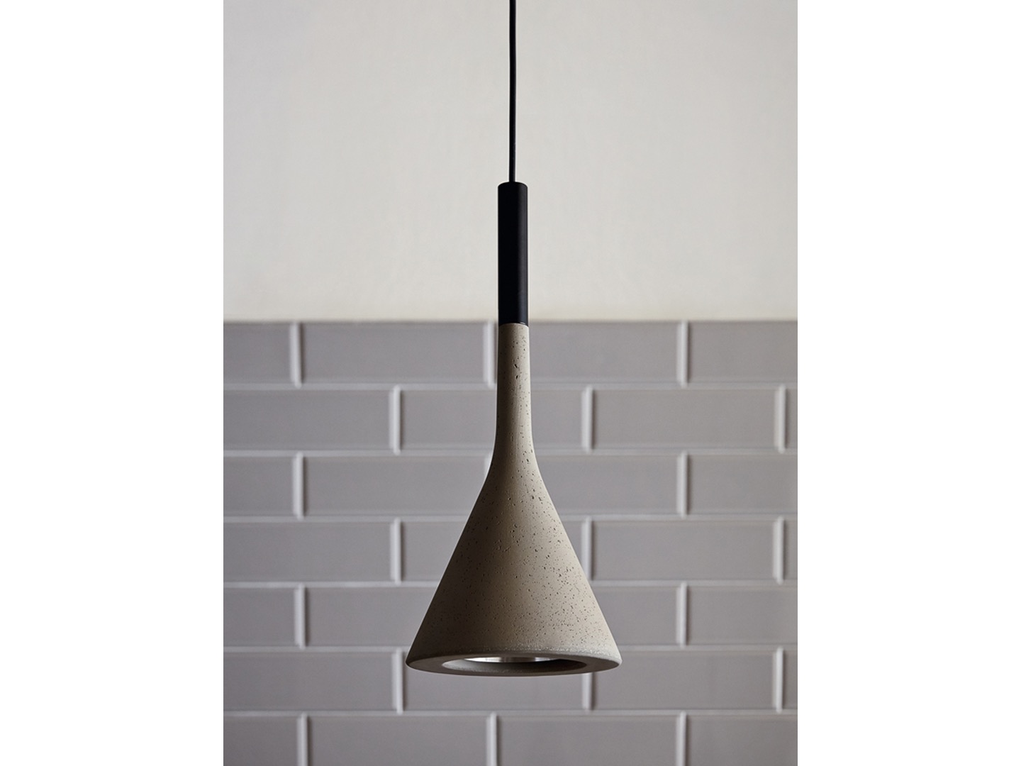 Niewiele jest lamp skromnych, a w każdym razie niedużo tych, które zaskakują materiałem, formą i skromnością również. Aplomb to niewielkich rozmiarów lampa wisząca, która wykonana została z barwionego betonu. Delikatna forma zamknięta w tak ciężkim materiale to rzadka rzecz. Do wyboru trzy kolory klosza, które ostatecznie pozwolą dopasować lampkę do wnętrza; a w tej chwili również dwie wielkości lampki