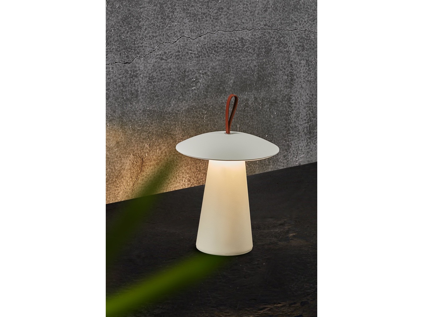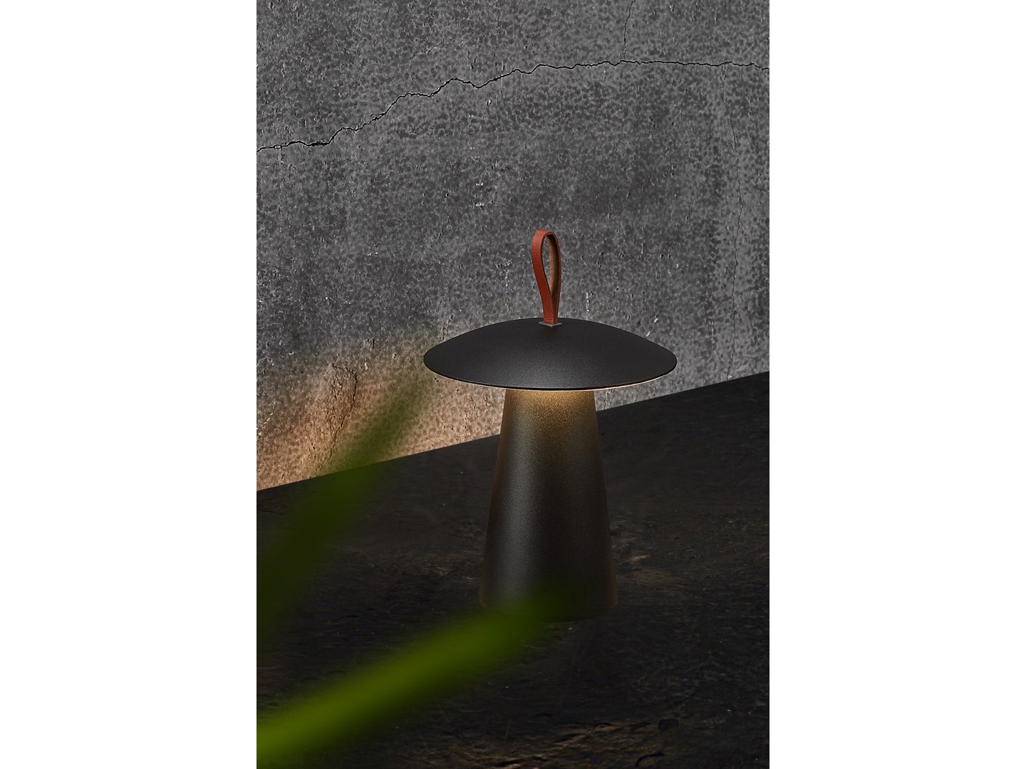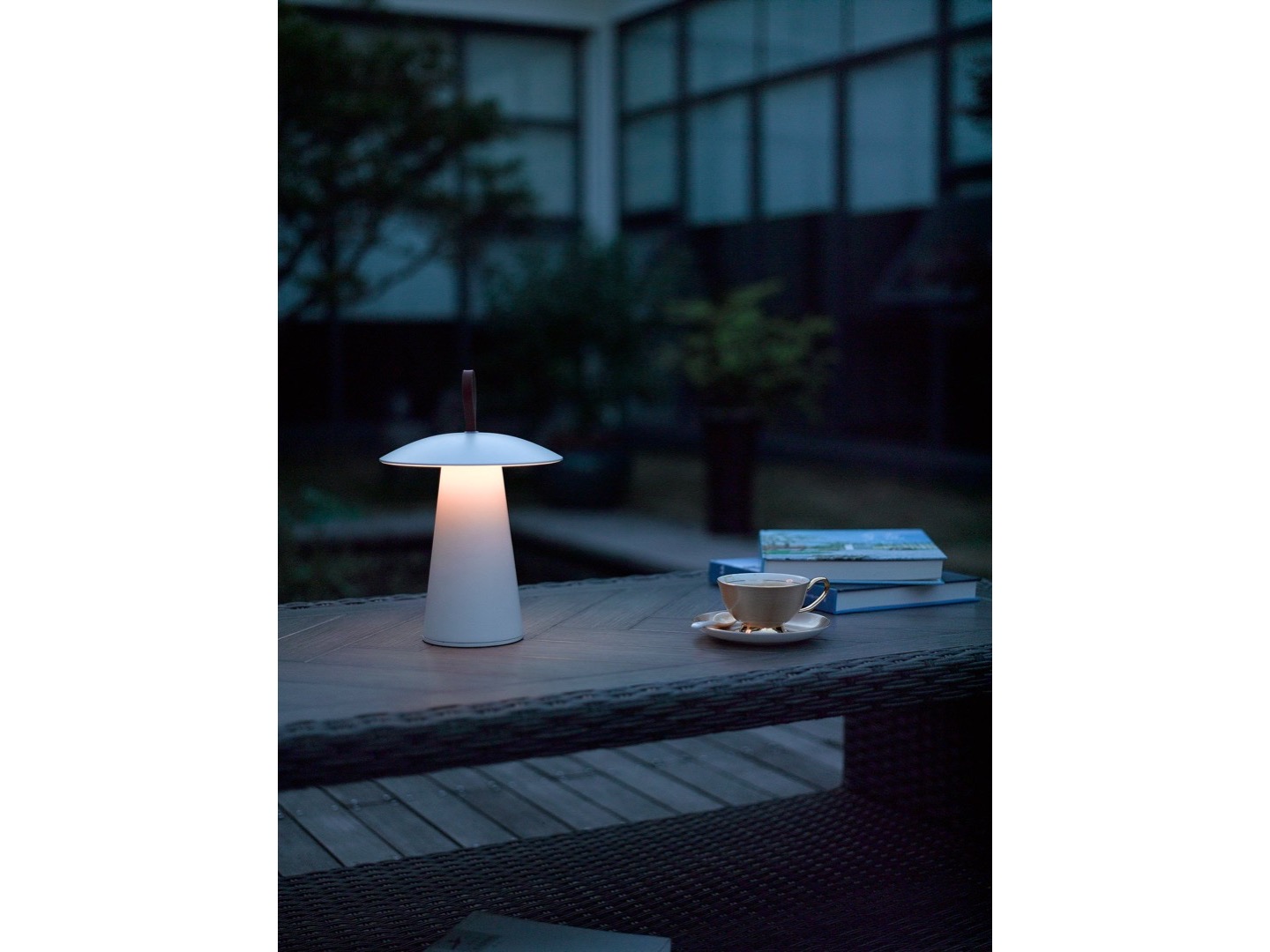 Ta mała, przenośna lampa Ara jest idealna do oświetlania ciepłych letnich nocy na balkonie lub tarasie. Lampa ma stożkowy kształt z detalami z miękkiej skóry. Stwórz idealne oświetlenie dzięki wbudowanej 3-stopniowej funkcji ściemniacza MoodmakerTM i nawet 80 godzinom pracy na baterii.