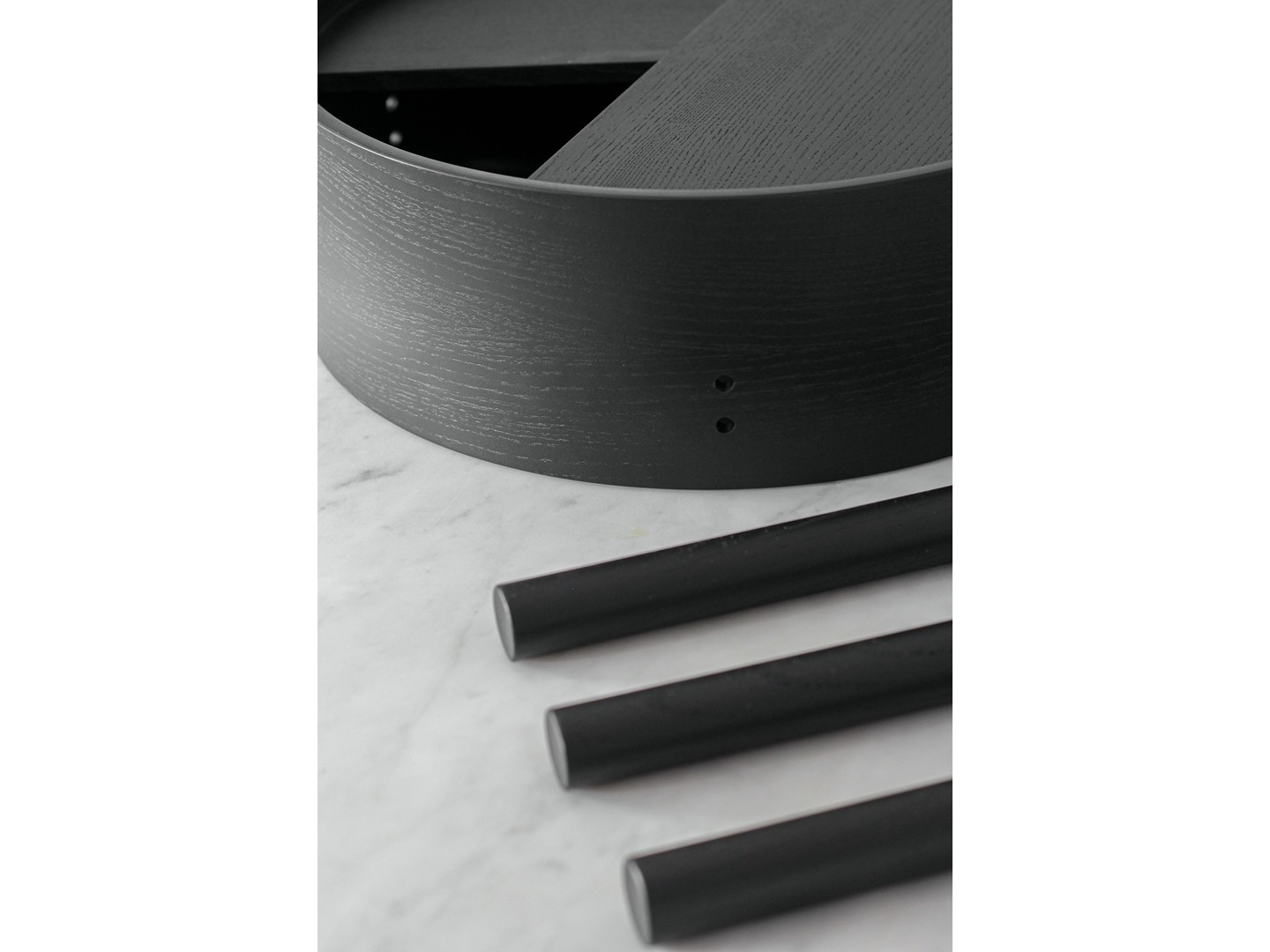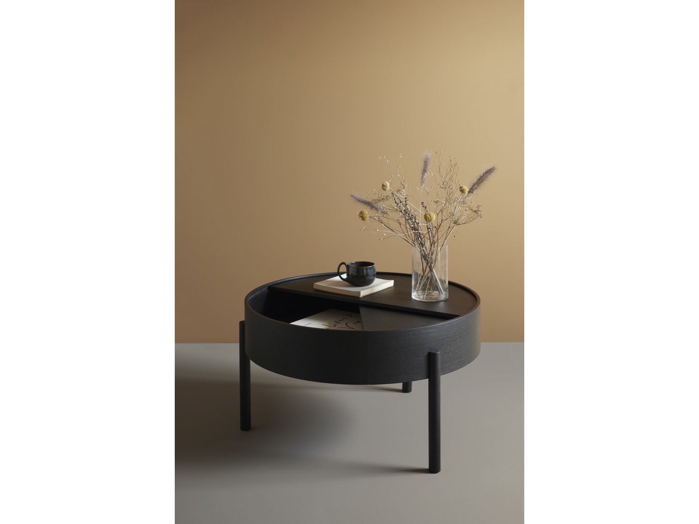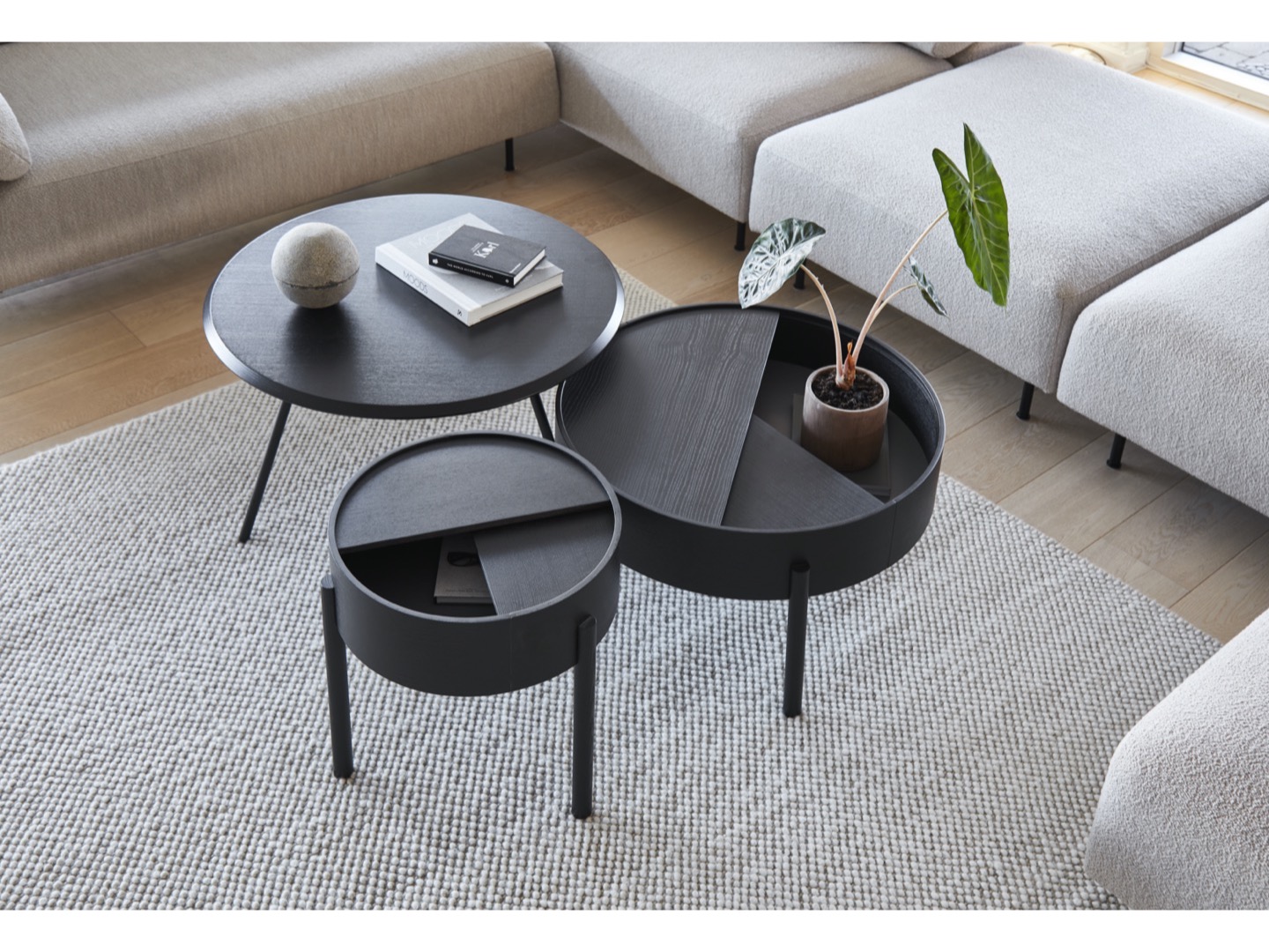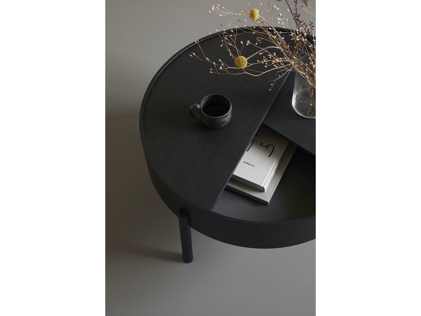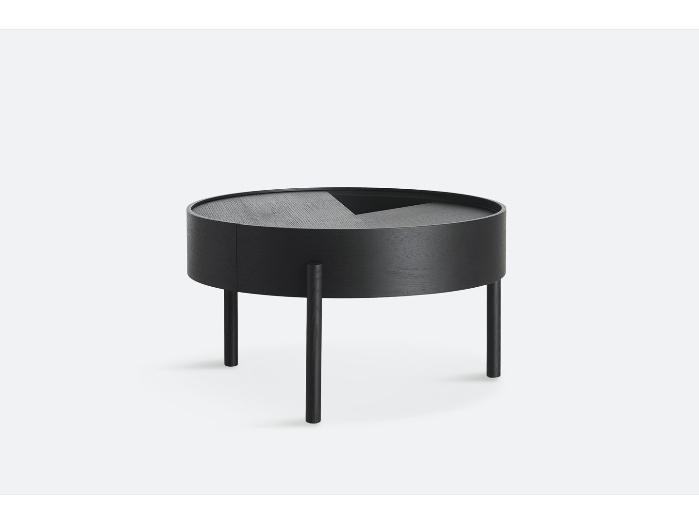 ARC bierze swoją nazwę od matematycznego pojęcia gładkiej krzywej łączącej dwa punkty w kole. Stół ARC zachęca użytkownika do korzystania z prostych funkcjonalności. Blat stolika można otwierać, aby wyeksponować ulubione przedmioty lub zamknąć pokrywę, aby ukryć bałagan. Powierzchnia wewnętrznej przestrzeni do przechowywania pokryta jest gładkim nanolaminatem, który uzupełnia drewno jesionowe, podczas gdy trójnożna konstrukcja dodaje zabawny i lekki akcent w geometrycznym kształcie.