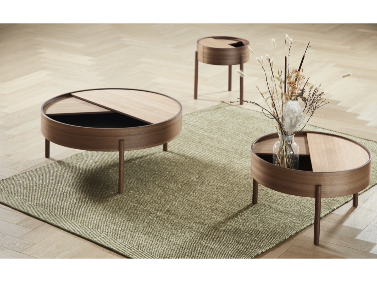 ARC bierze swoją nazwę od matematycznego pojęcia gładkiej krzywej łączącej dwa punkty w kole. Stół ARC zachęca użytkownika do korzystania z prostych funkcjonalności. Blat stolika można otwierać, aby wyeksponować ulubione przedmioty lub zamknąć pokrywę, aby ukryć bałagan. Powierzchnia wewnętrznej przestrzeni do przechowywania pokryta jest gładkim nanolaminatem, który uzupełnia drewno jesionowe, podczas gdy trójnożna konstrukcja dodaje zabawny i lekki akcent w geometrycznym kształcie.