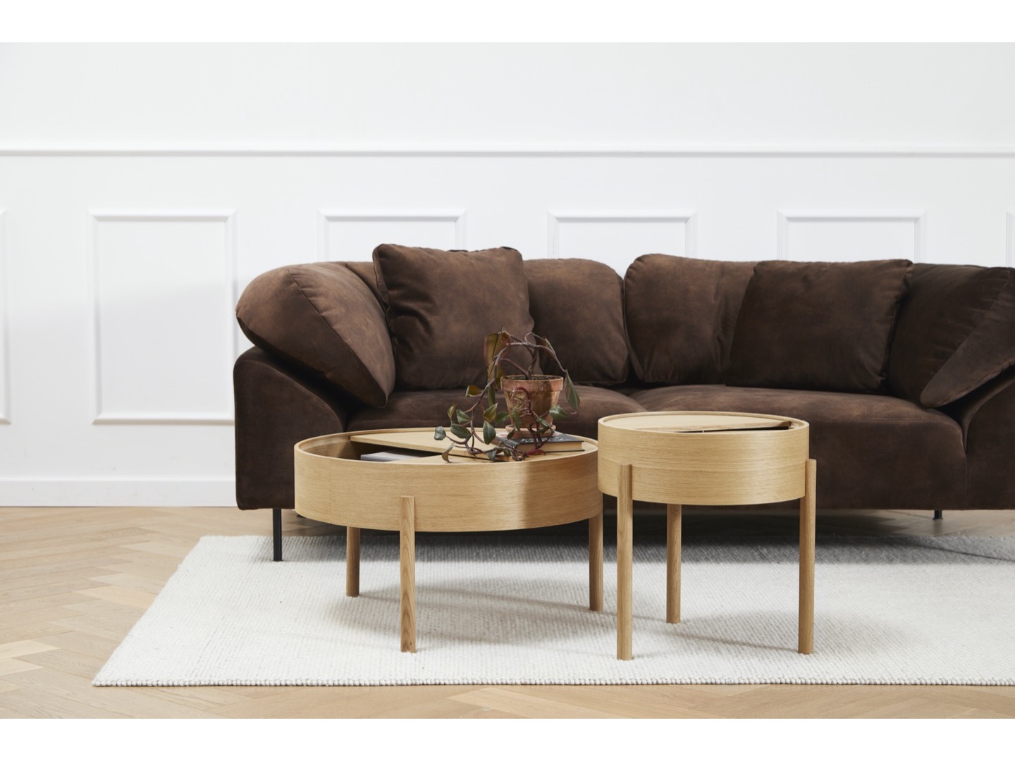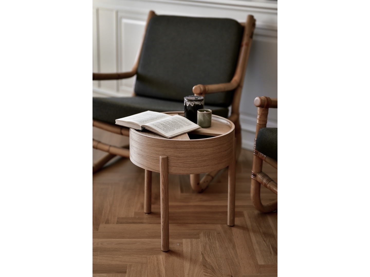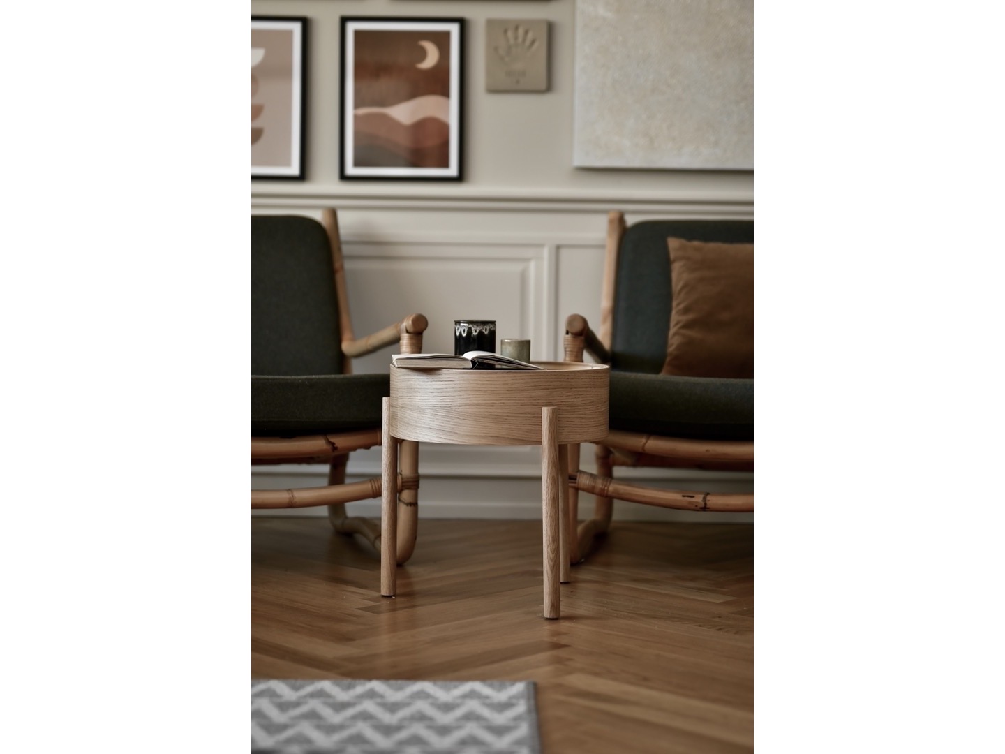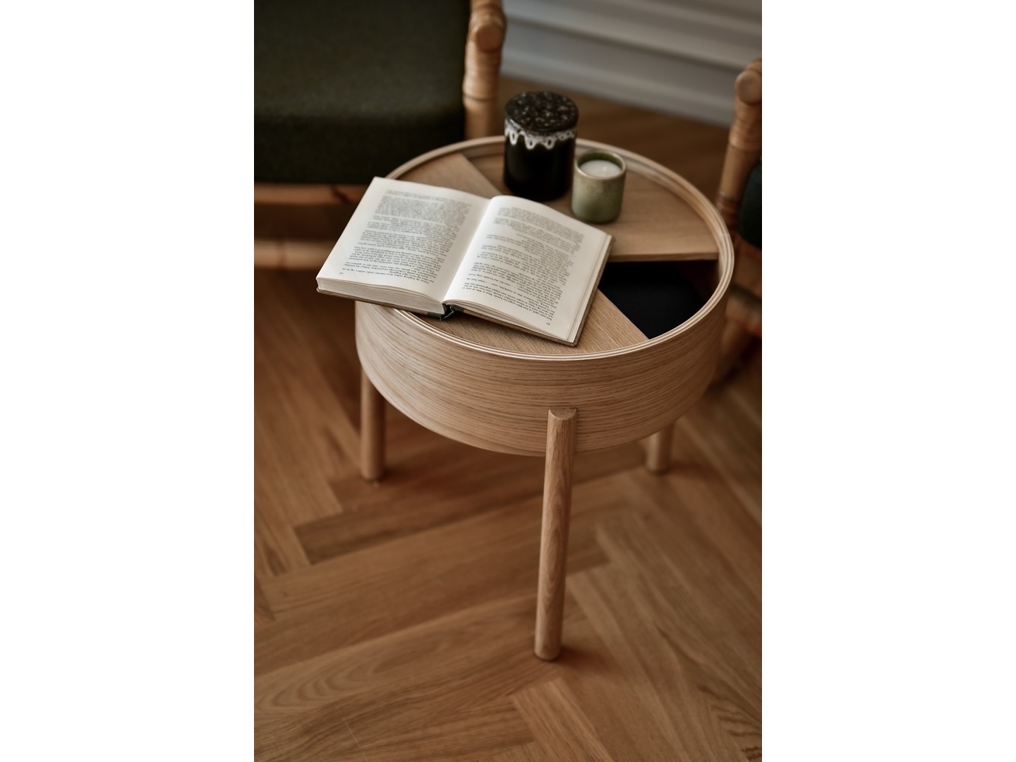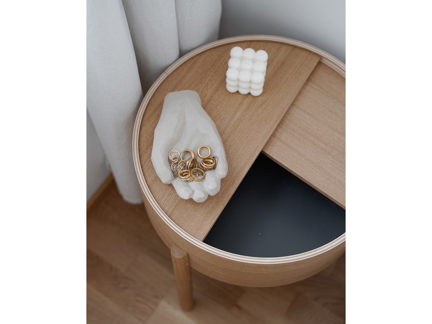 ARC bierze swoją nazwę od matematycznego pojęcia gładkiej krzywej łączącej dwa punkty w kole. Stół ARC zachęca użytkownika do korzystania z prostych funkcjonalności. Blat stolika można otwierać, aby wyeksponować ulubione przedmioty lub zamknąć pokrywę, aby ukryć bałagan. Powierzchnia wewnętrznej przestrzeni do przechowywania pokryta jest gładkim nanolaminatem, który uzupełnia drewno jesionowe, podczas gdy trójnożna konstrukcja dodaje zabawny i lekki akcent w geometrycznym kształcie.