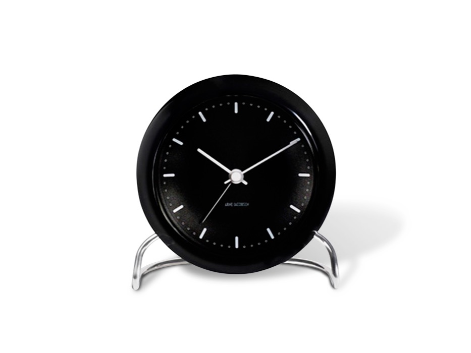 Arne Jacobsen City Hall Table clock - budzik zaprojektowany przez Arne Jacobsena. Śliczny dodatek w skandynawskim stylu, który nie tylko ozdabia, ale także jest niezwykle praktyczny. Zaprojektowany w 1939 roku nawiązuje wzornictwem do krzesełek Ant i No.7. Wyposażony we współczesny mechanizm elektryczny zasilany dwoma bateriami AA.