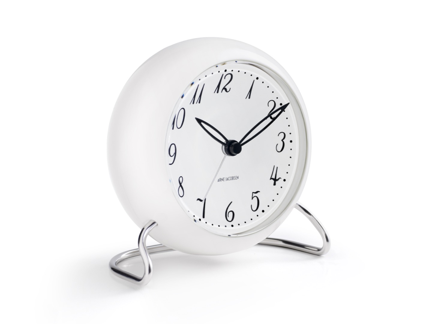 Arne Jacobsen LK Table clock - budzik zaprojektowany przez Arne Jacobsena. Śliczny dodatek w skandynawskim stylu, który nie tylko ozdabia, ale także jest niezwykle praktyczny. Zaprojektowany w 1939 roku nawiązuje wzornictwem do krzesełek Ant i No.7. Wyposażony we współczesny mechanizm elektryczny zasilany dwoma bateriami AA.
