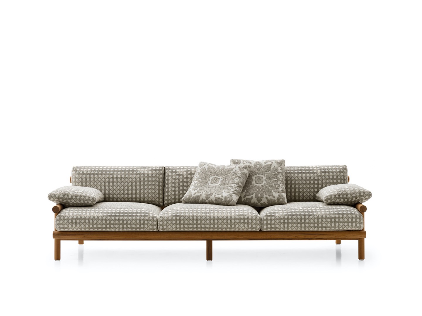 Sofy dwu i trzyosobowe oraz fotel mają podłokietniki na różnych wysokościach. Podłokietnik fotela jest wyższy, aby zapewnić bardziej ergonomiczne siedzisko. Tapicerka z tej kolekcji wyróżnia się indywidualnymi poduszkami, wszystkie pokryte wodoodpornymi tkaninami. Minimalizm Ayany dopełnia krzesło, stół jadalny i niski stolik.