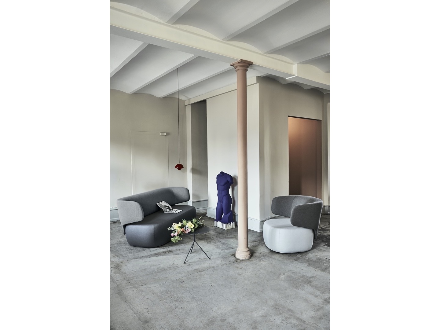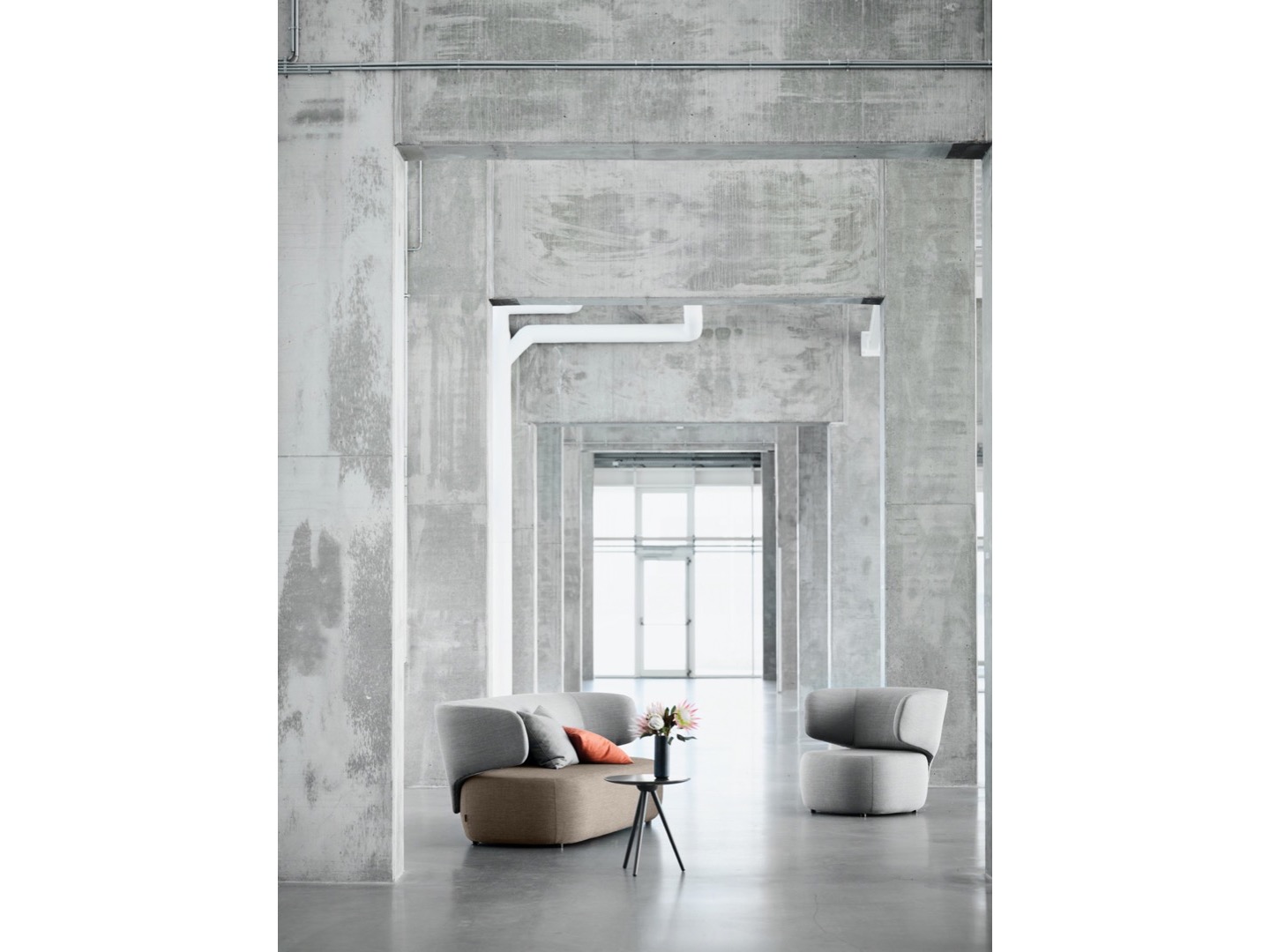 Linie siedziska i oparcia to połączenie kilki geometrycznych kształtów. Charakterystyczne oparcie działa jako zintegrowany i dyskretny podłokietnik. Widoczna separacja między oparciem a siedziskiem umożliwia mieszanie tkanin oraz kolorów- wg projektu klienta.