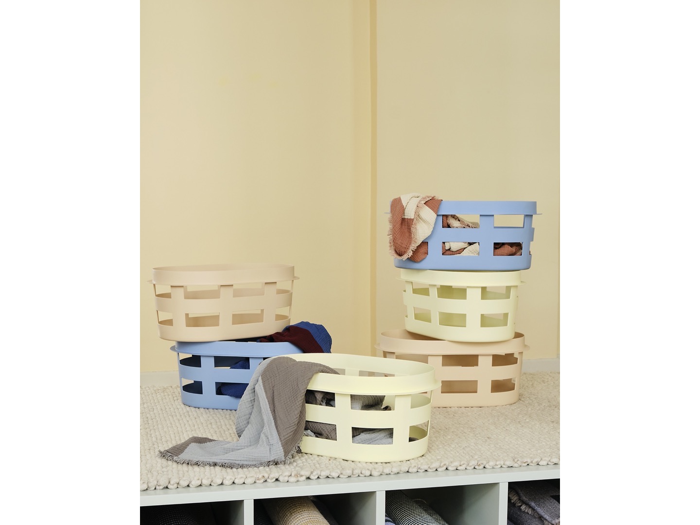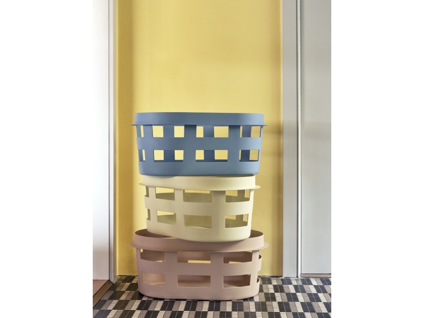 Zaprojektowane przez BIG-GAME dla HAY, graficzne linie i subtelne kolory Basket tworzą wszechstronny i atrakcyjny wizualnie kosz do przechowywania. Wykonany z wytrzymałej mieszanki PP z recyklingu, dostępny jest w kilku rozmiarach, może być używany w każdym pomieszczeniu w domu.