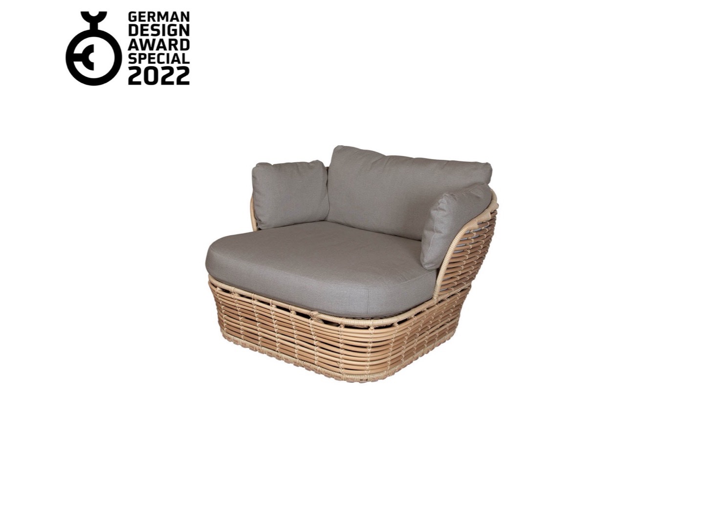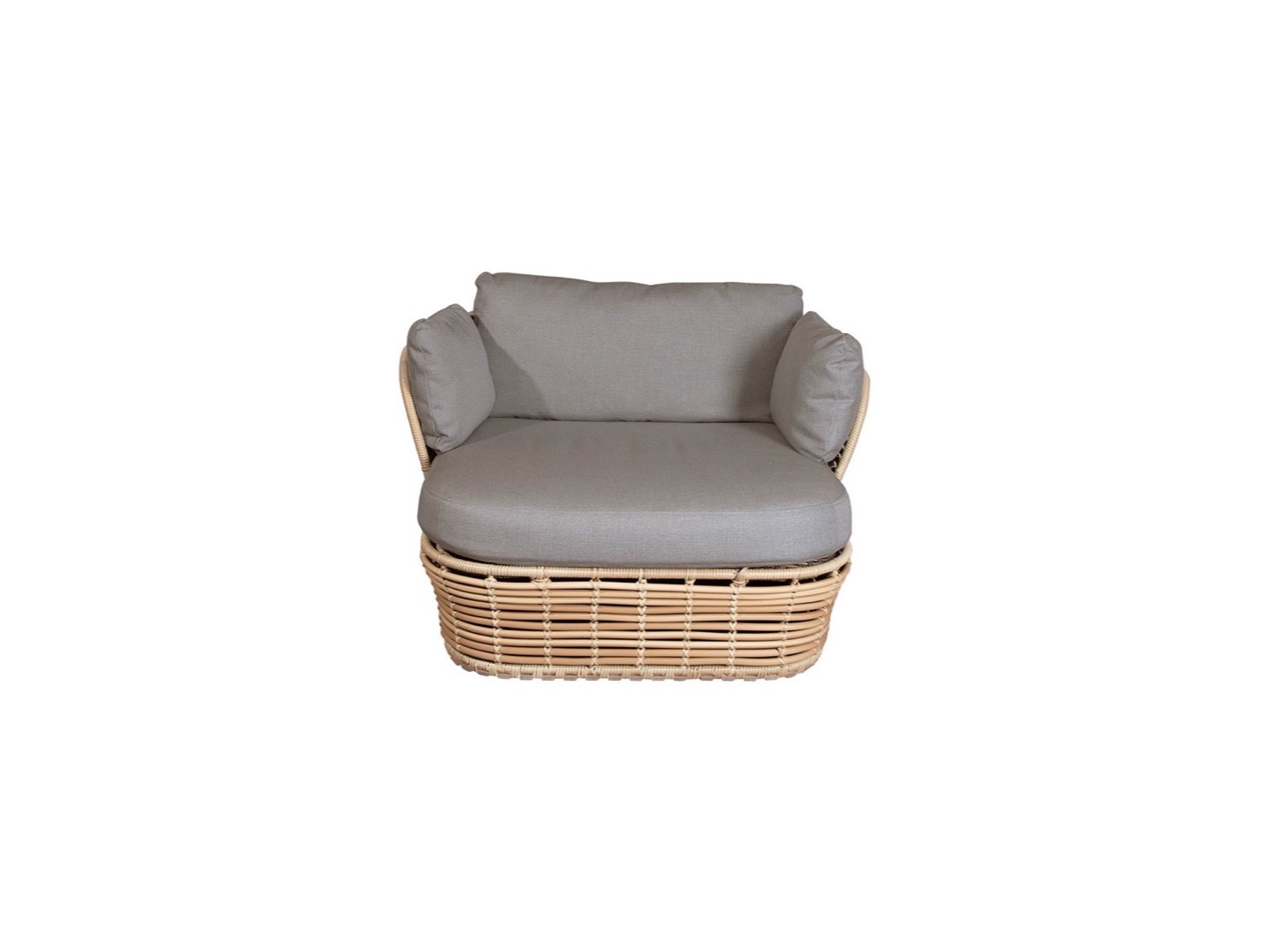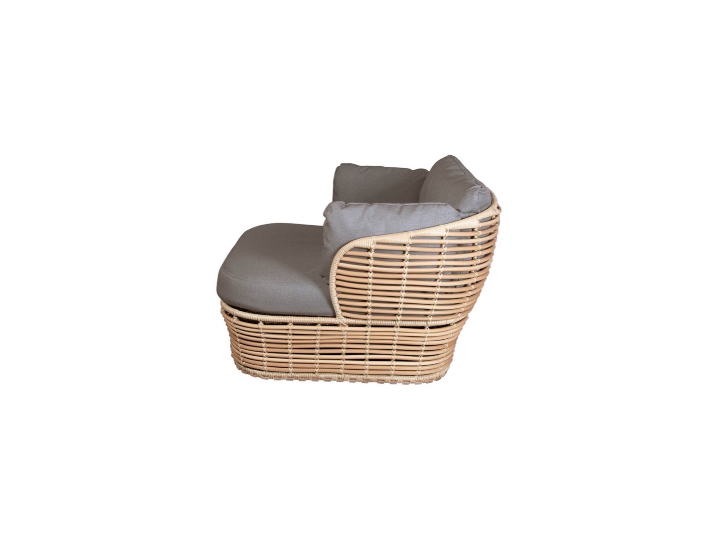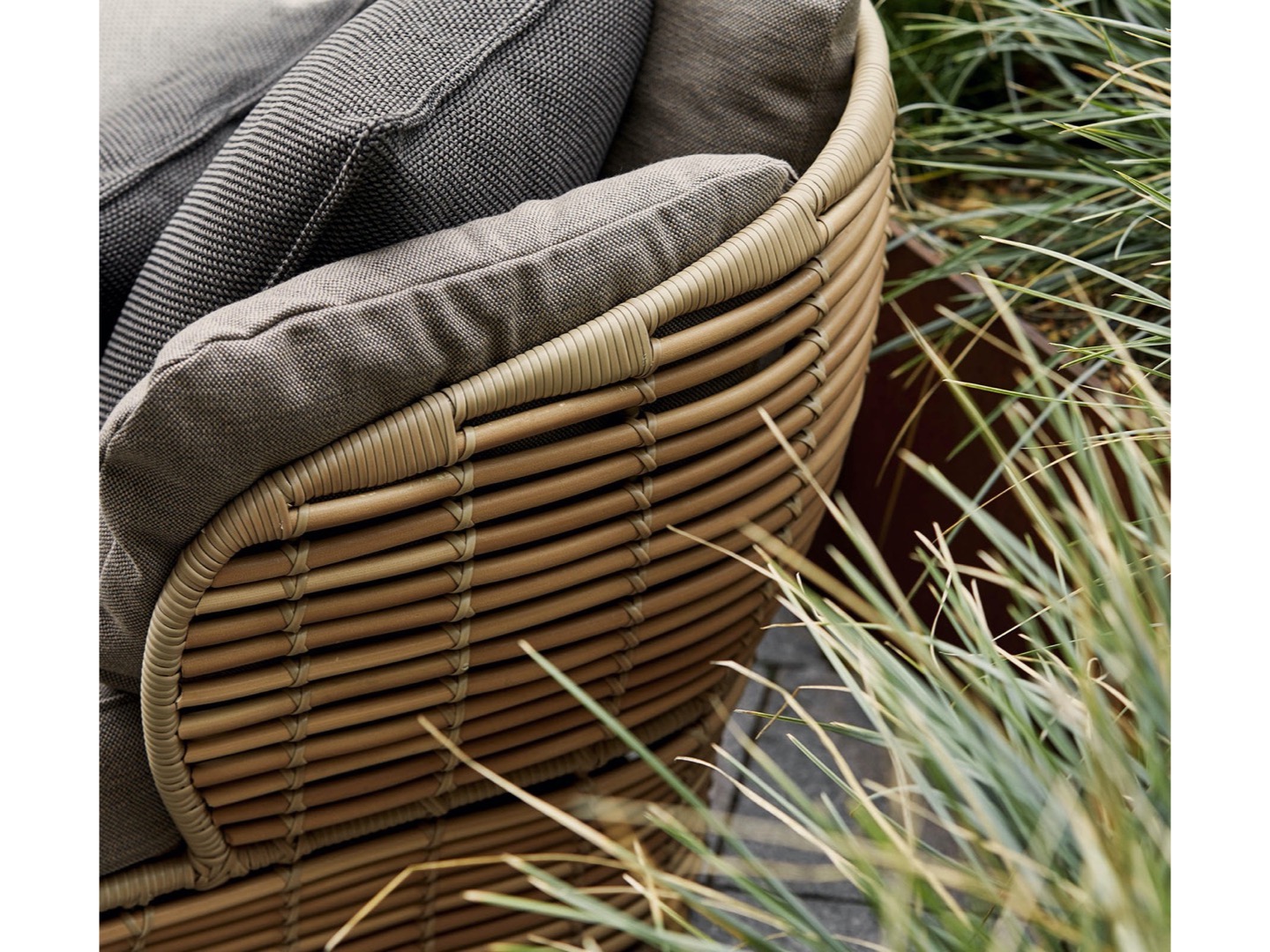 Niezwykle wygodny fotel wypoczynkowy Basket został zaprojektowany przez Søren Rose Studio. Konstrukcja kosza czerpie inspirację z klasycznych mebli z wikliny, ale dzięki wytrzymałym materiałom Cane-line można go bezpiecznie używać w ogrodzie. Dzięki malowanej proszkowo stalowej ramie i odpornej na warunki pogodowe tkaninie Cane-line Weave® fotel Basket ma zachęcający, naturalny wygląd. Poduszki wyposażone są w system Cane-line QuickDry & Airflow, który zapewnia doskonały komfort przy jednoczesnym zapewnieniu szybkiego schnięcia fotela po ulewie. Dzięki obszernej, głębokiej poduszce fotel Basket jest idealny do przytulnego wypoczynku.