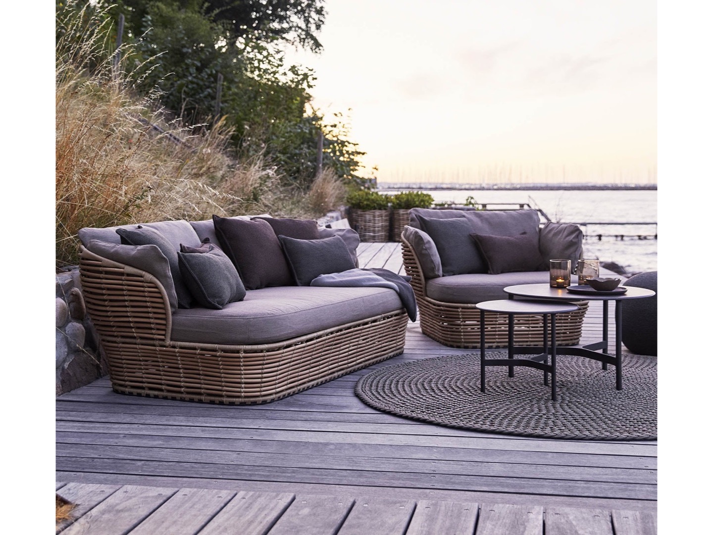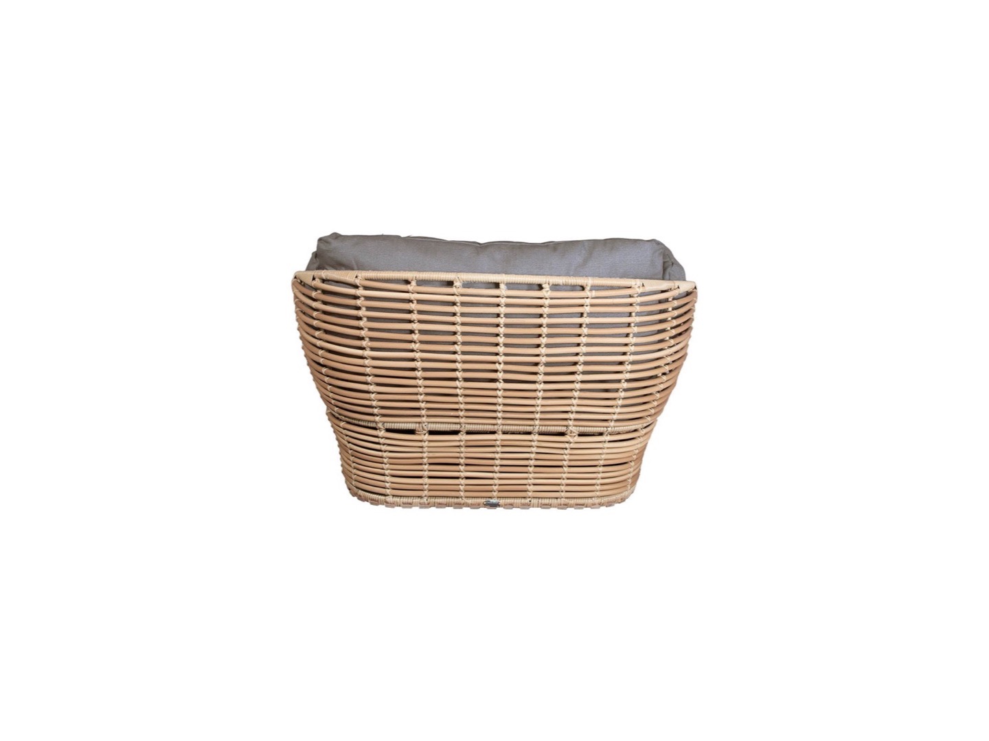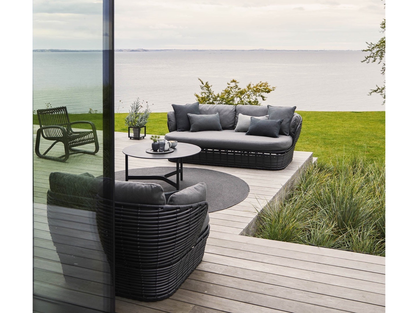 Niezwykle wygodny fotel wypoczynkowy Basket został zaprojektowany przez Søren Rose Studio. Konstrukcja kosza czerpie inspirację z klasycznych mebli z wikliny, ale dzięki wytrzymałym materiałom Cane-line można go bezpiecznie używać w ogrodzie. Dzięki malowanej proszkowo stalowej ramie i odpornej na warunki pogodowe tkaninie Cane-line Weave® fotel Basket ma zachęcający, naturalny wygląd. Poduszki wyposażone są w system Cane-line QuickDry & Airflow, który zapewnia doskonały komfort przy jednoczesnym zapewnieniu szybkiego schnięcia fotela po ulewie. Dzięki obszernej, głębokiej poduszce fotel Basket jest idealny do przytulnego wypoczynku.