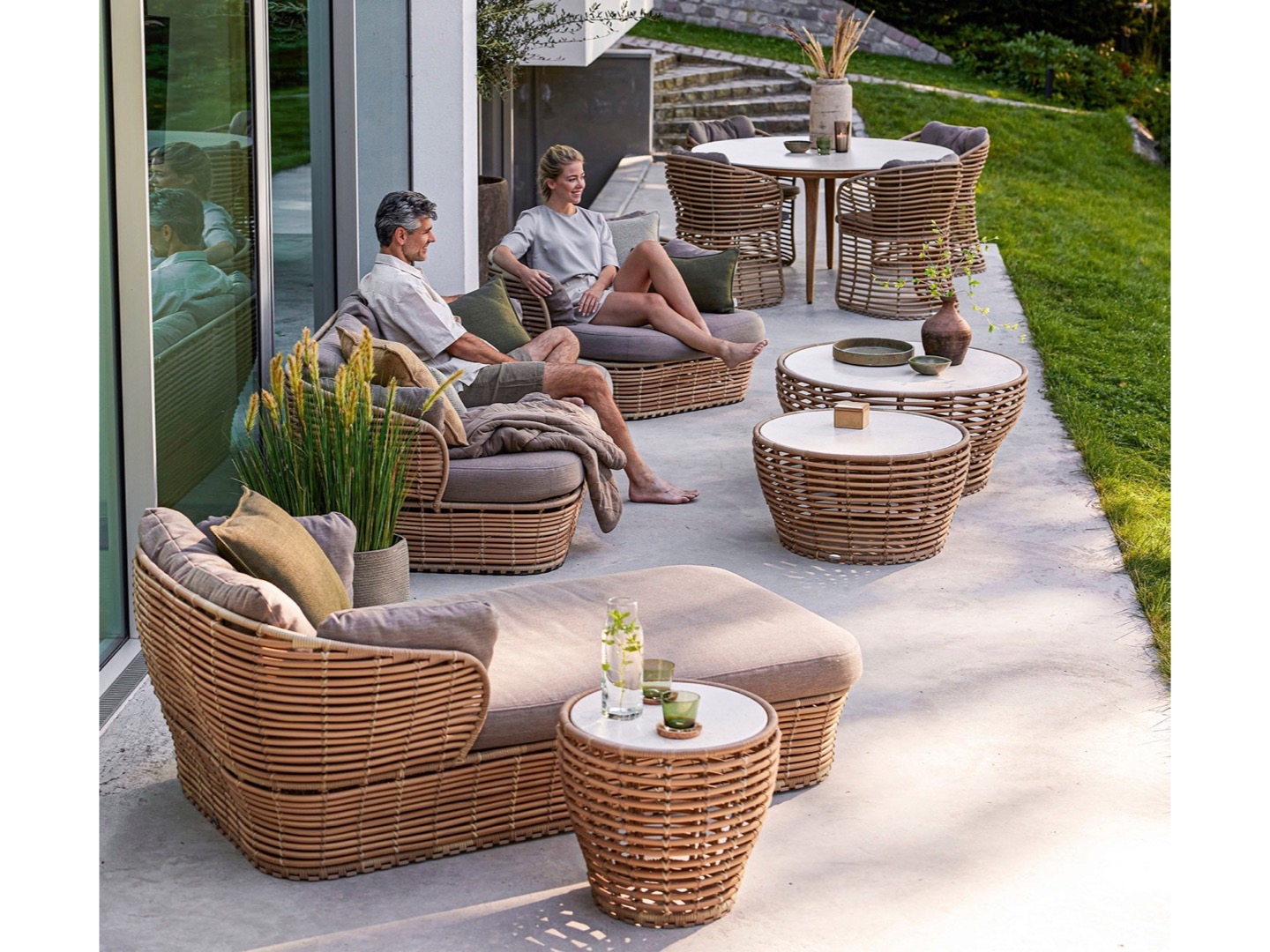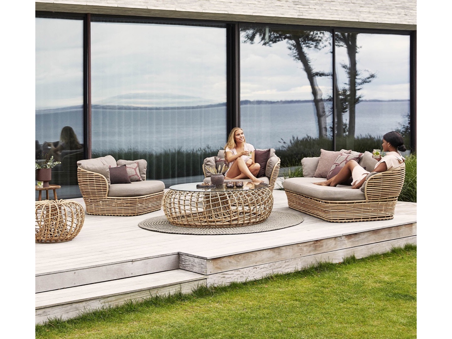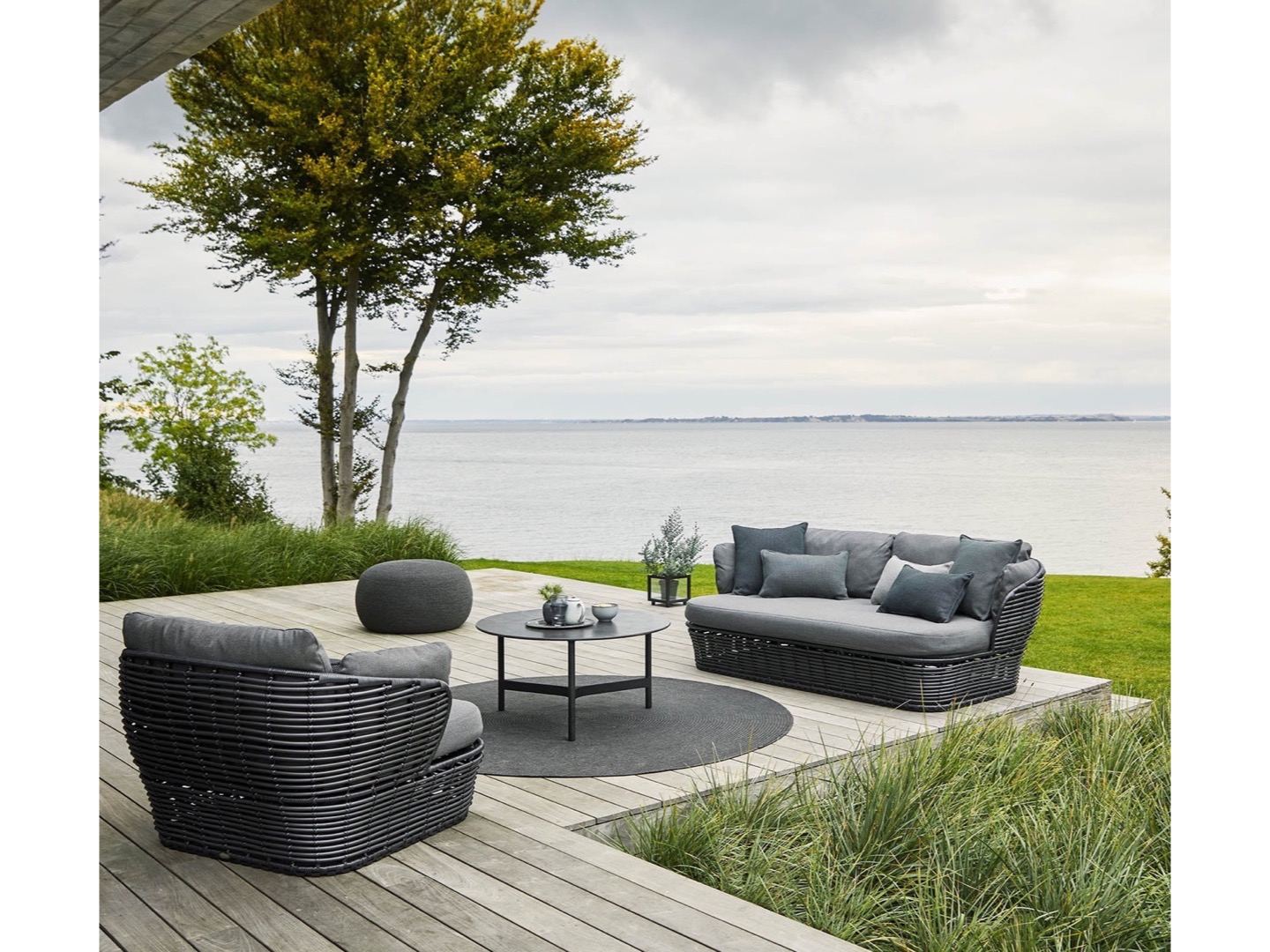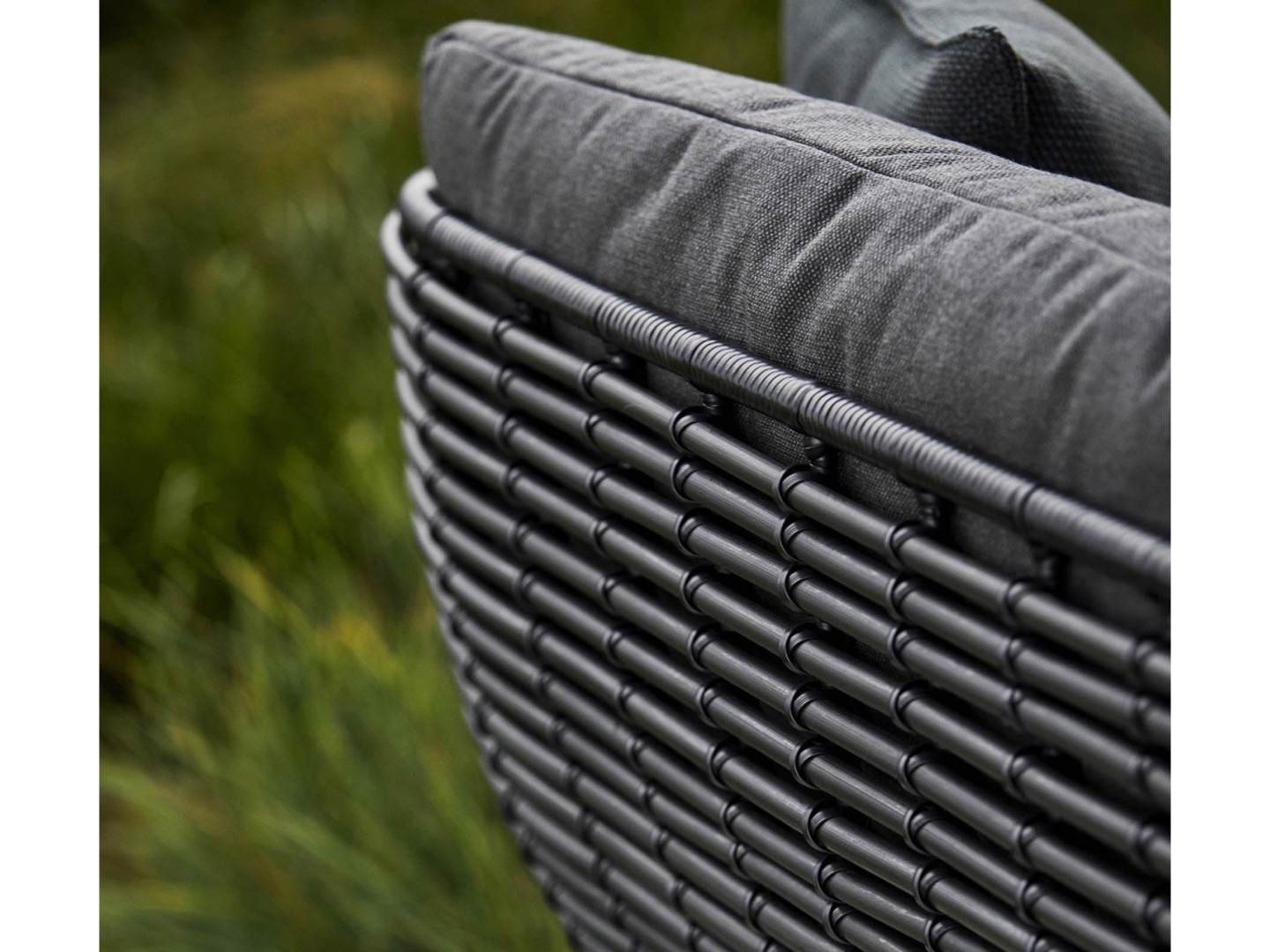 Niezwykle wygodny fotel wypoczynkowy Basket został zaprojektowany przez Søren Rose Studio. Konstrukcja kosza czerpie inspirację z klasycznych mebli z wikliny, ale dzięki wytrzymałym materiałom Cane-line można go bezpiecznie używać w ogrodzie. Dzięki malowanej proszkowo stalowej ramie i odpornej na warunki pogodowe tkaninie Cane-line Weave® fotel Basket ma zachęcający, naturalny wygląd. Poduszki wyposażone są w system Cane-line QuickDry & Airflow, który zapewnia doskonały komfort przy jednoczesnym zapewnieniu szybkiego schnięcia fotela po ulewie. Dzięki obszernej, głębokiej poduszce fotel Basket jest idealny do przytulnego wypoczynku.