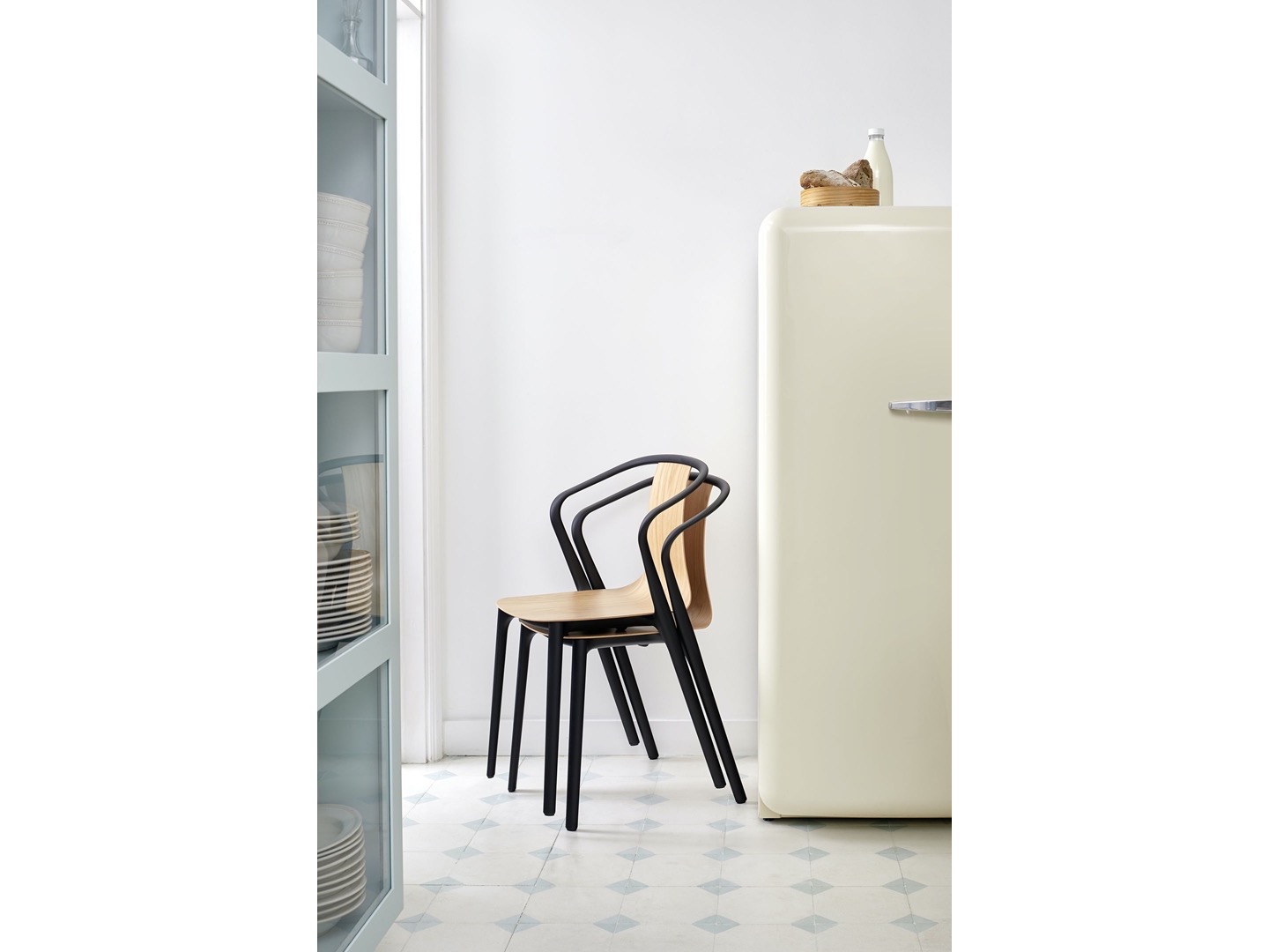 Krzesło Belleville to połączenie klasycznej linii i współczesnych materiałów. Dzięki nowoczesnej technologii obróbki plastiku krzesło przybiera kształty, które były niemożliwe, lub bardzo trudne do uzyskania przez gięcie drewna. Zastąpienie drewna plastikiem sprawiło, że krzesło jest lekkie nie tylko wizualnie. Siedzisko i oparcie mogą być wykończone naturalnymi materiałami. Z jednej strony drewno, tkanina i skóra - miłe w dotyku, klasyczne i tradycyjne powierzchnie, których instynktownie oczekujemy w meblach. Z drugiej nowoczesny materiał użyty do konstrukcji bazy. Właśnie tak wygląda nowatorskie i nowoczesne wzornictwo przemysłowe.
