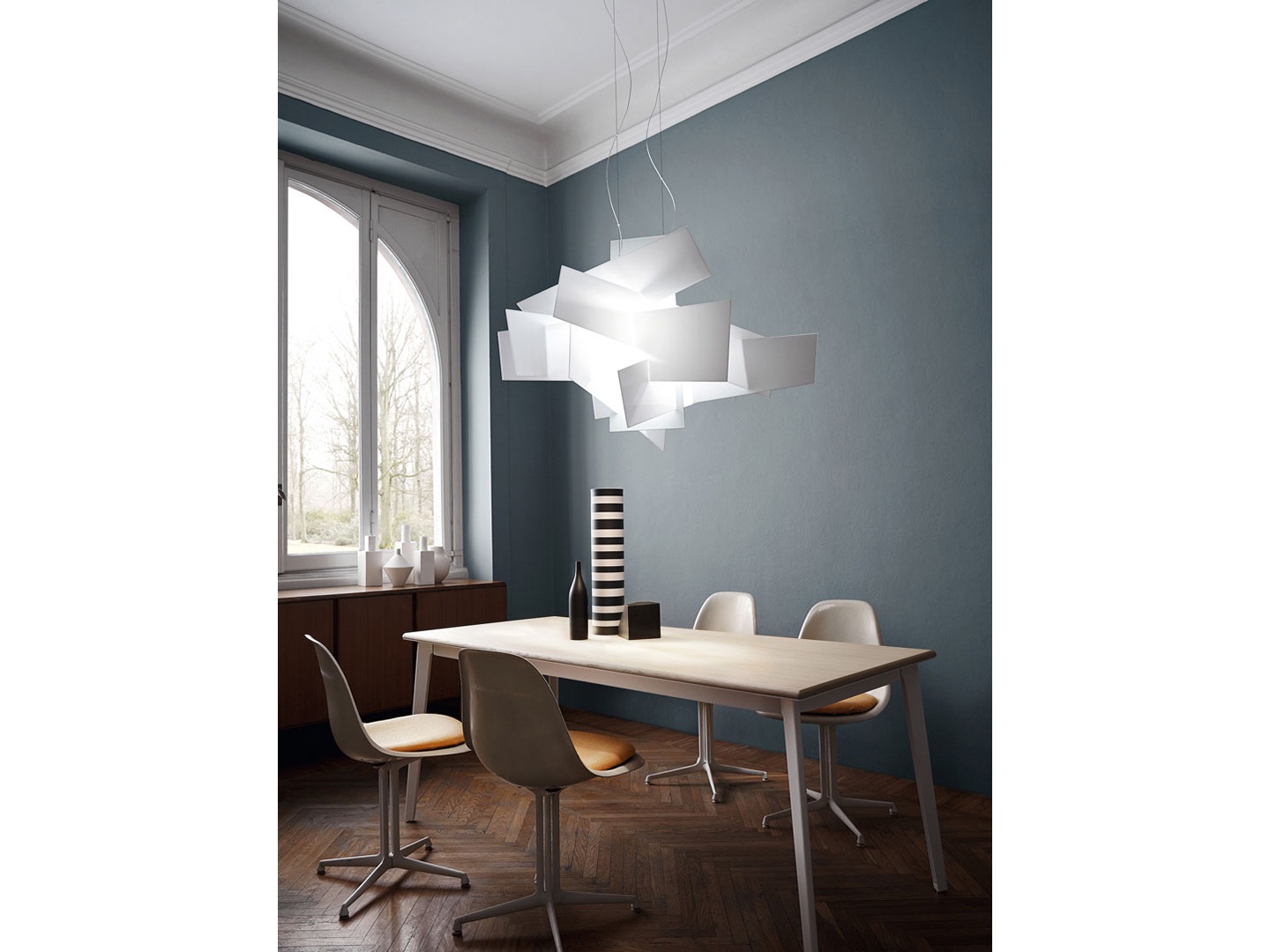 Big Bang to okiełznany chaos. To różnorodność kształtów i form w jednej lampie. Na kolekcję składa się lampa wisząca w dwóch wielkościach, kinkiet ścienny oraz lampa sufitowa, plafon. Wszystkie lampy w klasycznym kolorze bieli oraz szalonej czerwieni. Jeśli zależy Ci na "wybuchowym" ożywieniu pomieszczenia to świetnie trafiłeś. Odważ się i odkryj Big Bang!