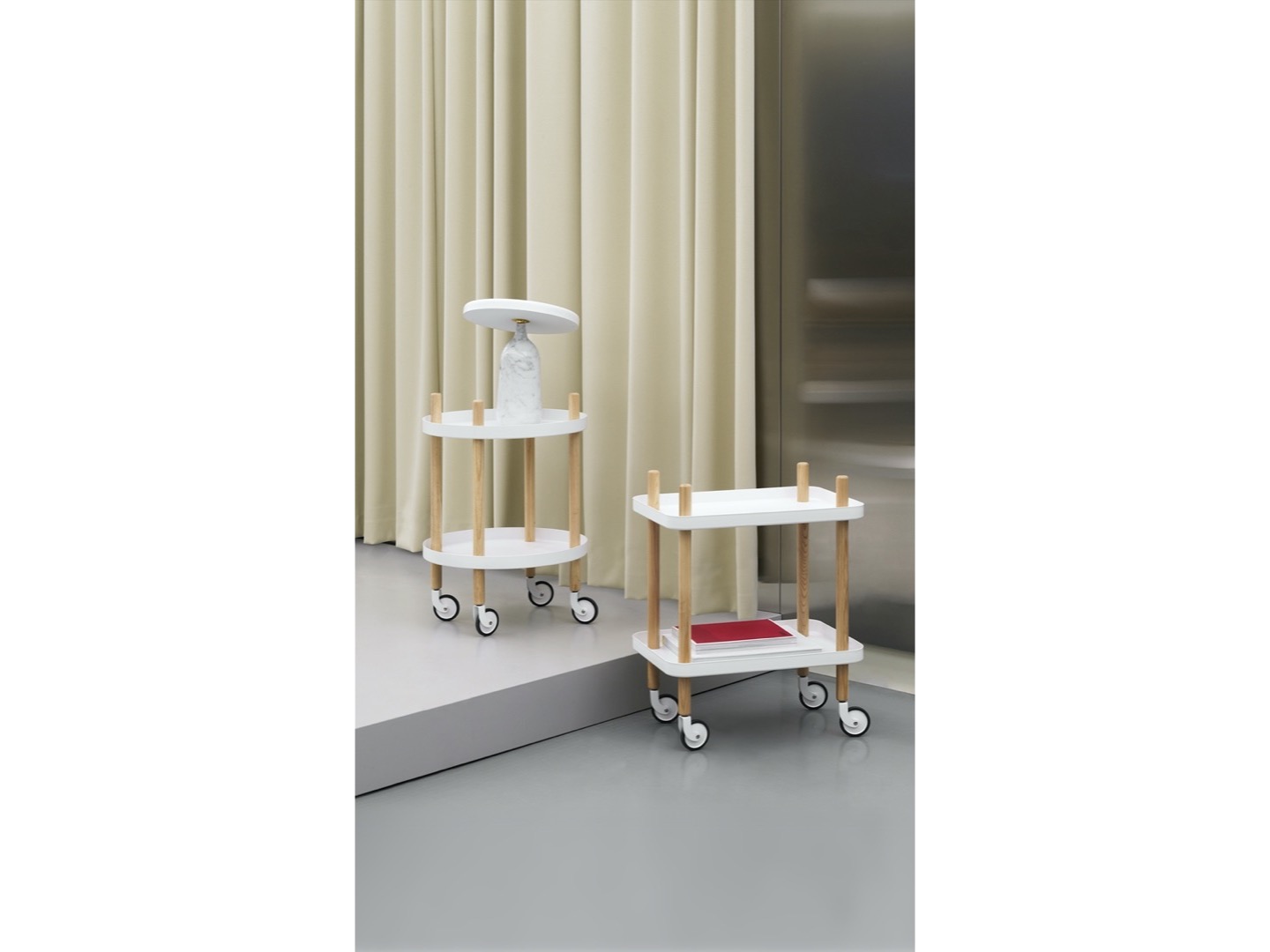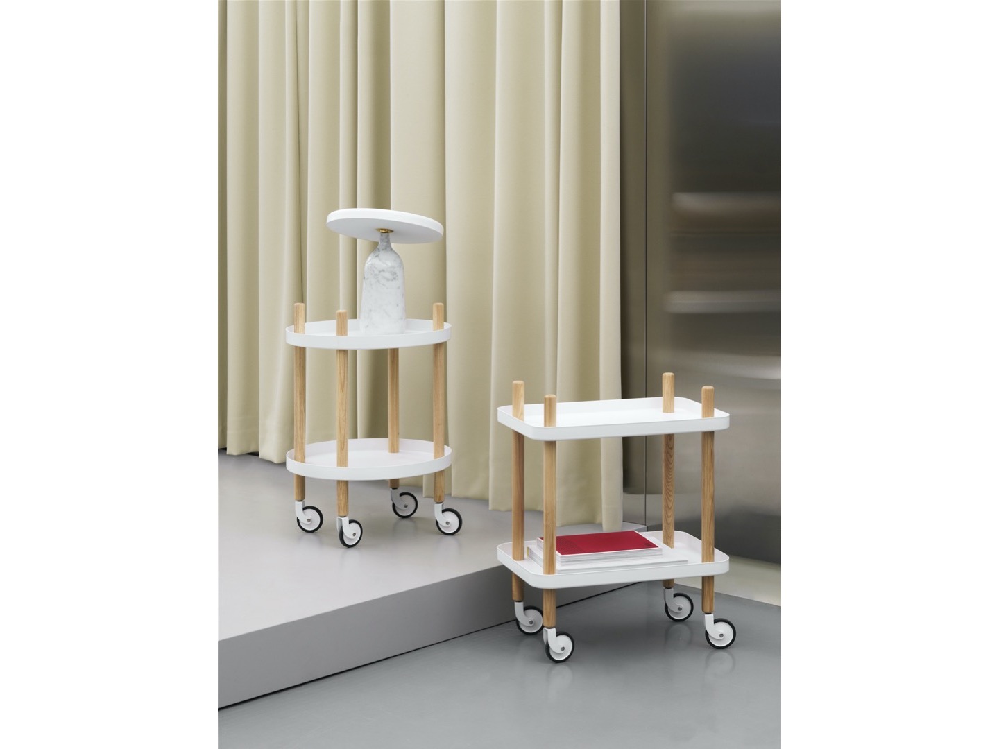 Block to stolik na kółkach, który może równocześnie być barkiem. Połączenie drewna i malowanego proszkowo metalu stanowi kwintesencję północnoeuropejskiego wzornictwa. Wybierz kolor dla siebie i spraw by twoje wnętrze było funkcjonalne i piękne.Teraz nowość- wersja okrągła!