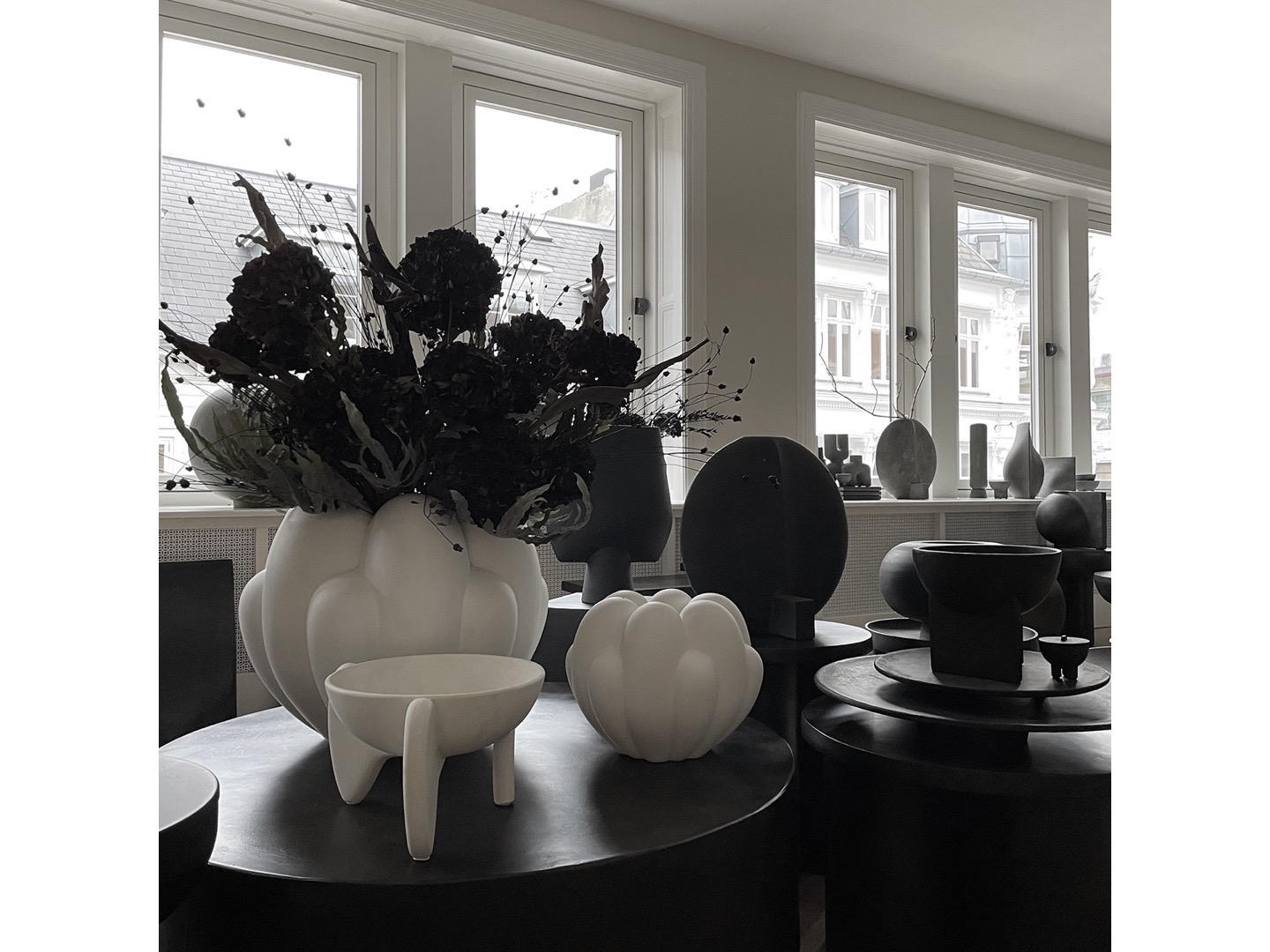 Zainspirowany kwiatowymi kształtami, Bloom podkreśla miękkie i organiczne kształty w kolekcji rzeźbiarskich ceramicznych wazonów i mis.