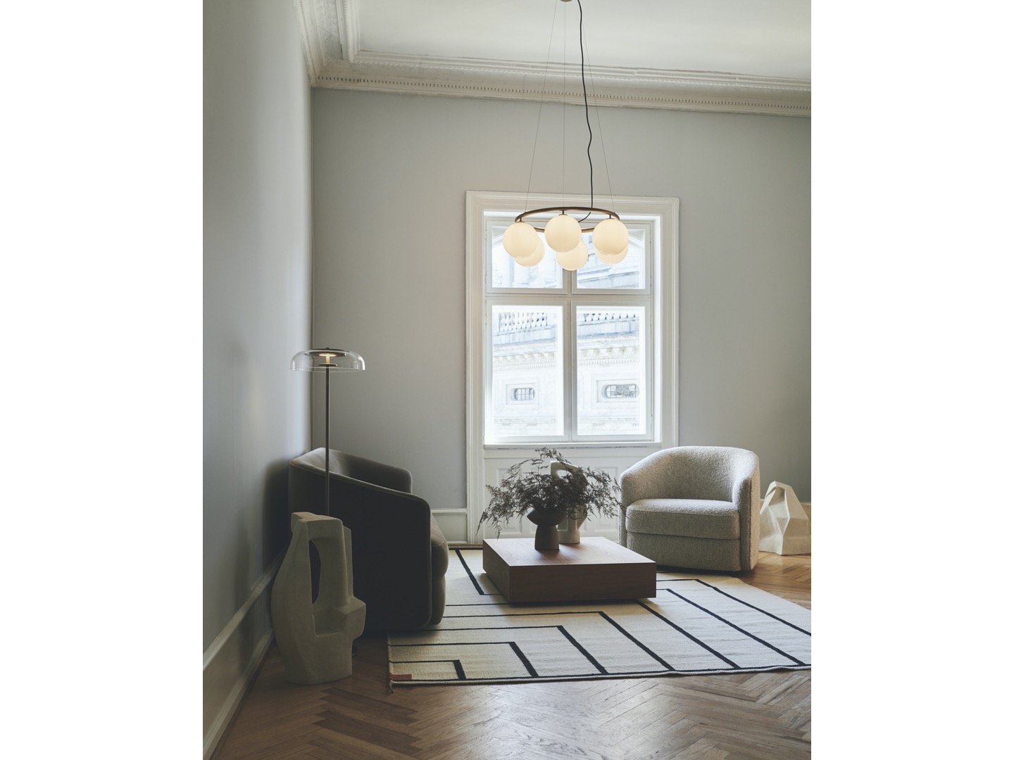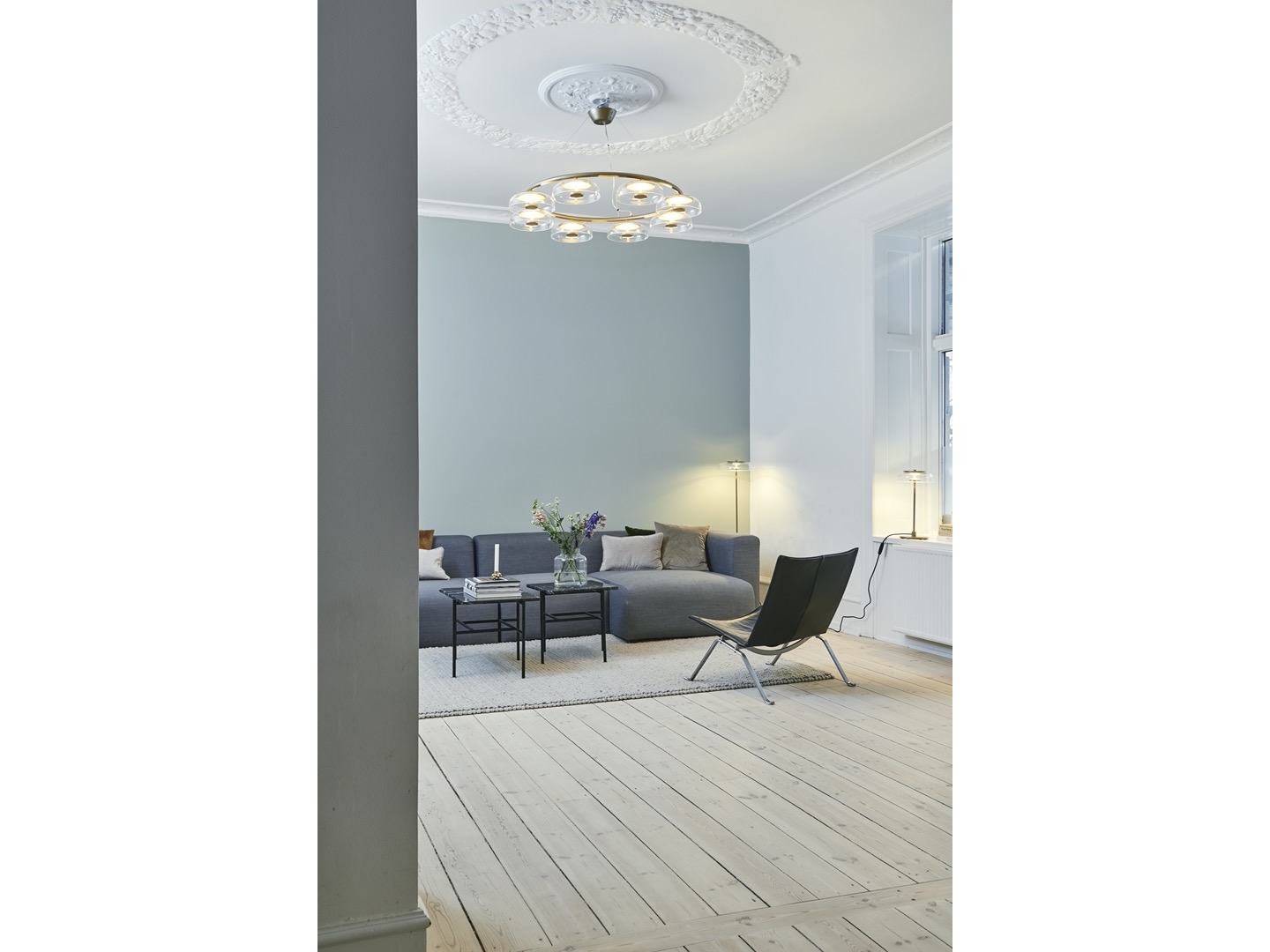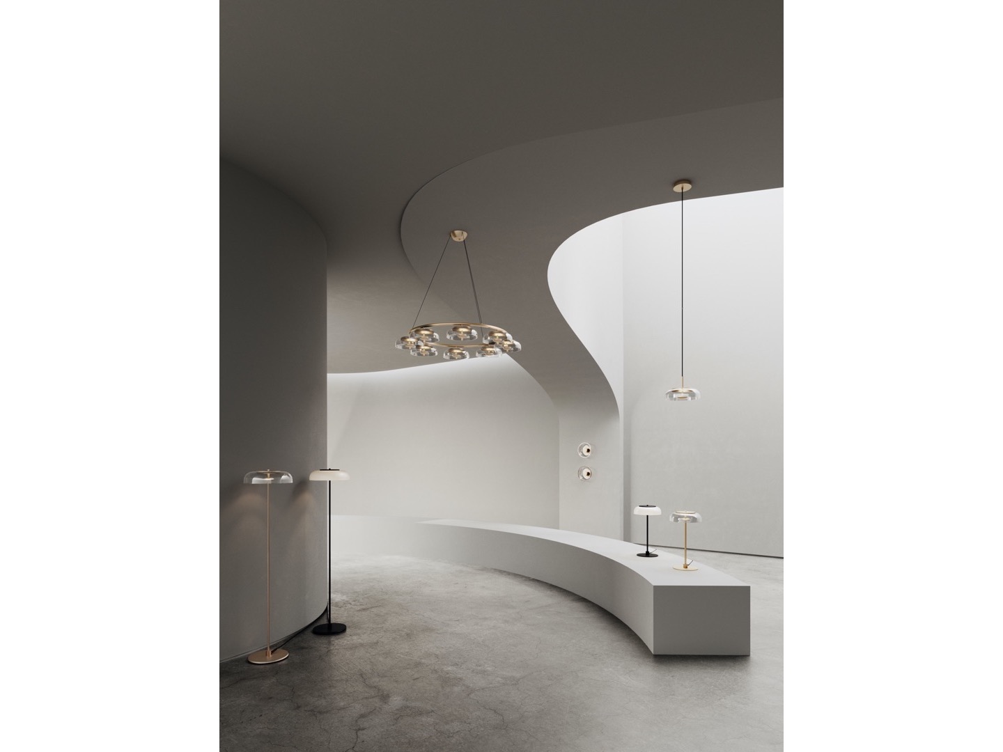 Kolekcja Blossi wykonana jest w najnowszej technologii LED. Dzięki specjalnie opracowanemu dyskowi LED umieszczonemu w lampie, światło odbija się w dmuchanym szklanym kloszu i złotym metalu, który rozprowadza miękkie światło pośrednie.