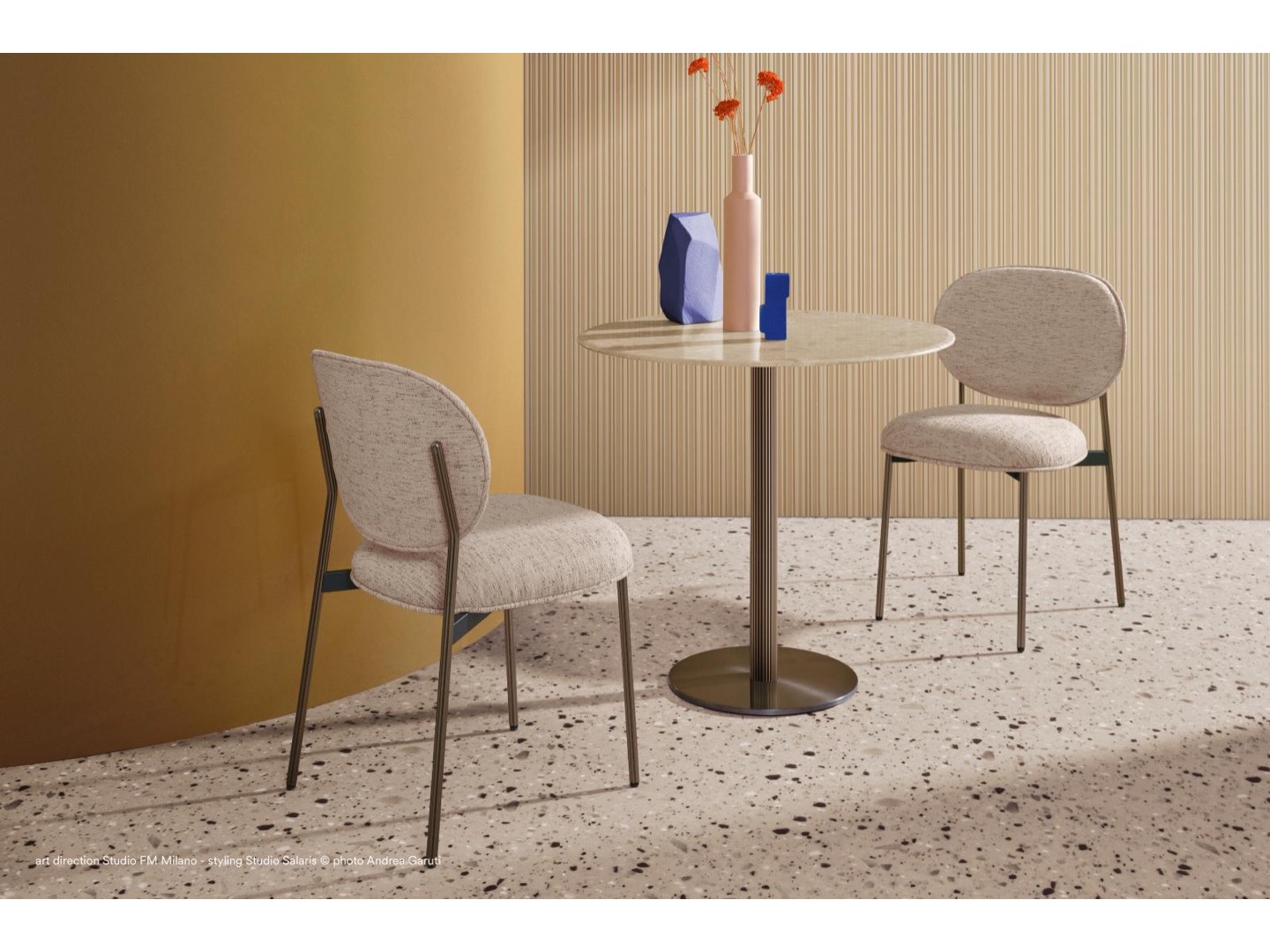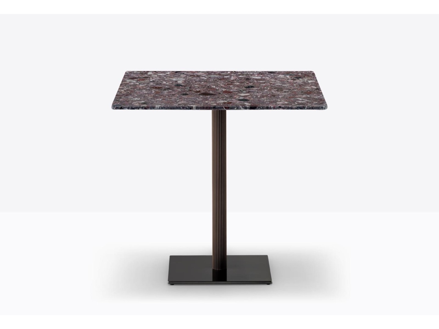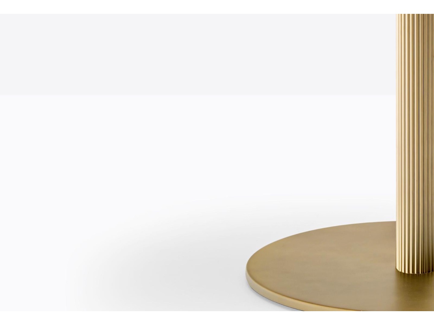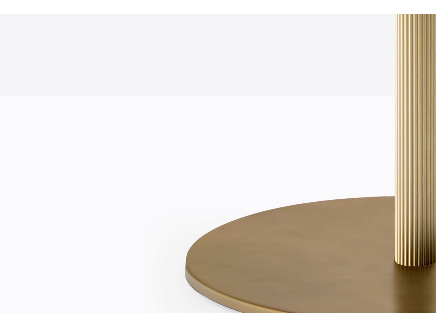 Stół Blume nawiązuje do delikatnych linii, której charakterystyczna siła wyłania się z kolumny z wytłaczanego aluminium. Stół ma kwadratową lub okrągłą centralną podstawę z żeliwa lub stali. Kolumna wykonana jest z ekstrudowanego aluminium. Dostępne w połączeniu z blatami o różnych rozmiarach i wykończeniach.