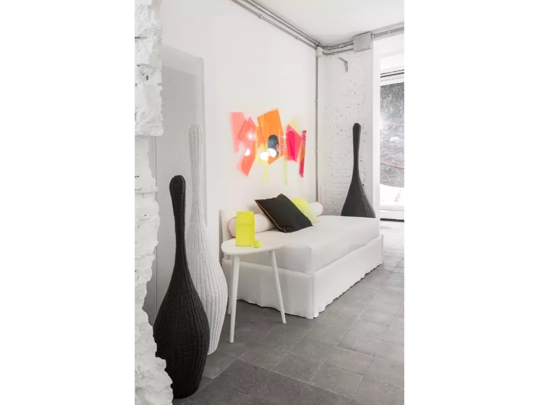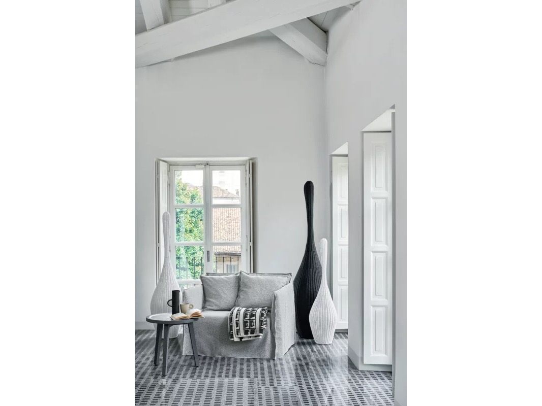Bolla to rodzina lamp wykonanych w całości z naturalnego melanżu wikliny w kolorze białym, szarym, czarnym, oceanicznym lub gołębim szarym. Kształt lampy przypomina butelkę. Produkty wyróżnia piękno naturalnego splotu włókien połączone z oryginalnym wzornictwem, które nadaje im charakteru i wyjątkowości. Dostępny w różnych rozmiarach, od S do XL, mebel, który można stosować pojedynczo lub w kombinacjach dla jeszcze bardziej sugestywnego efektu.