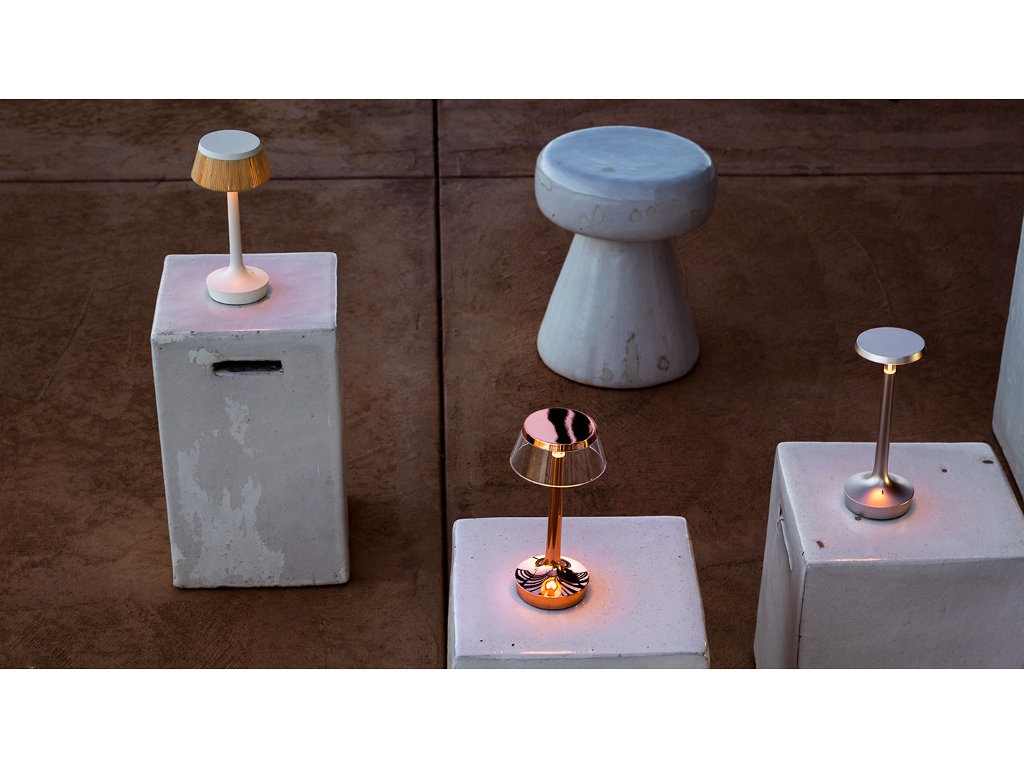 Osiem kolorów lampy, pięć abażurów do wyboru. Lampa wyposażona w niewymienne źródło światła LED o mocy 2,5W i jasności (250lm) oraz wysokim (90) współczynniku CRI. Przy pracy na akumulatorze świeci do 6 godzin. Optyczny czujnik umieszczony w podstawie działa jako włącznik i czteropoziomowy ściemniacz. Akumulator ładowany jest przez złącze Micro-USB. W komplecie kabel USB-C/Micro-USB o długości 120cm i zasilacz USB-C wyposażony we wtyczkę z wymiennymi końcówkami (EU/GB/US).