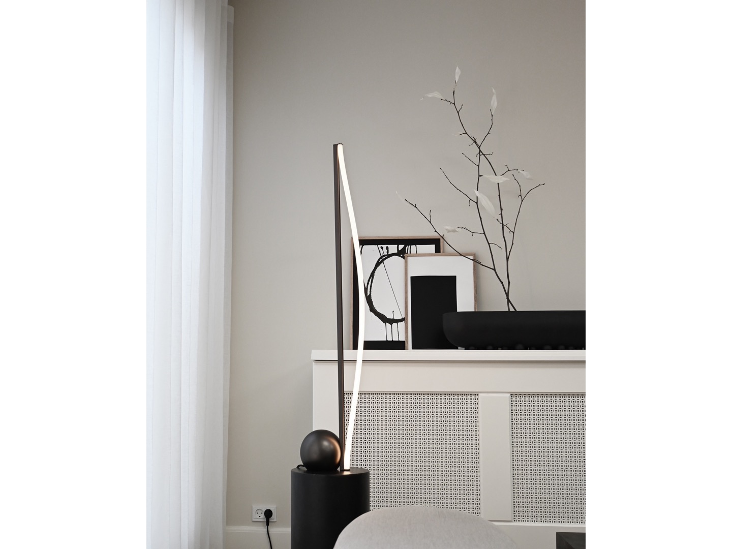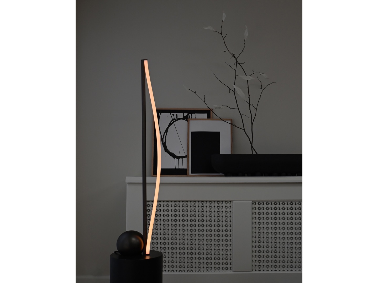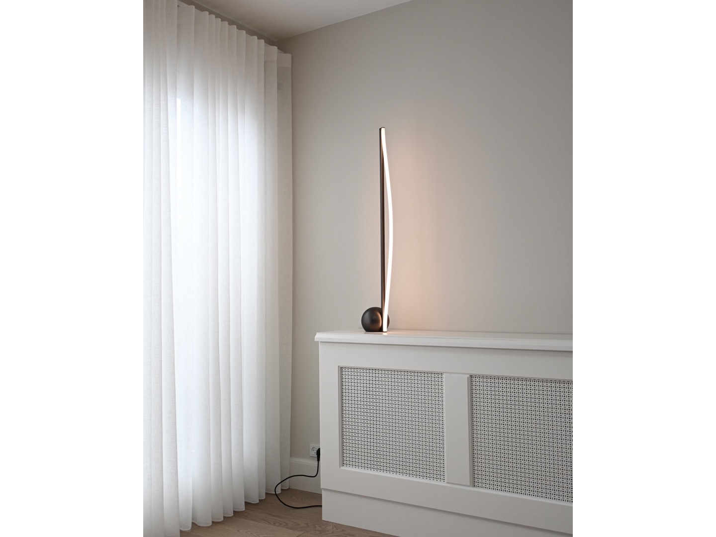 Lampa Bow jest inspirowana kształtem łuku. Wszystkie lampy z kolekcji są wyposażone we wbudowane źródło światła LED o temperaturze 2400 kelwinów, które tworzy ciepłą i przytulną atmosferę. Wszystkie metalowe części są pokryte brązem.