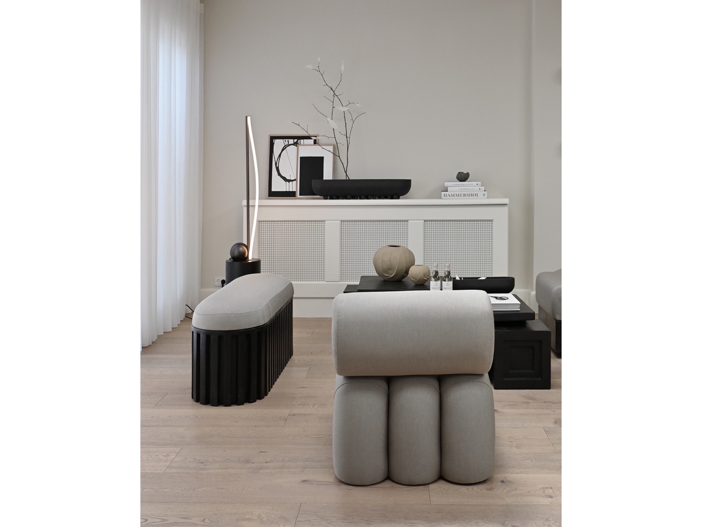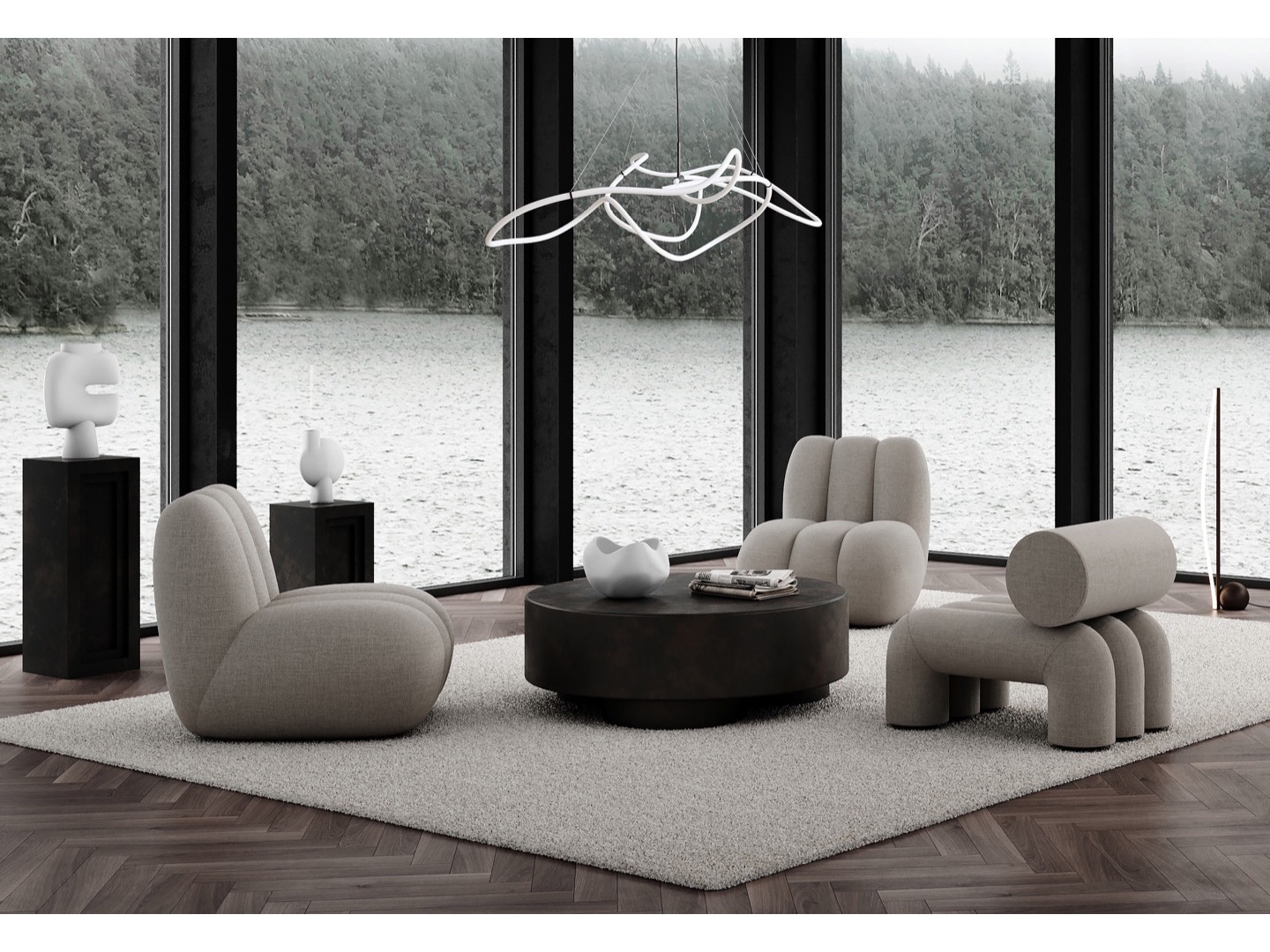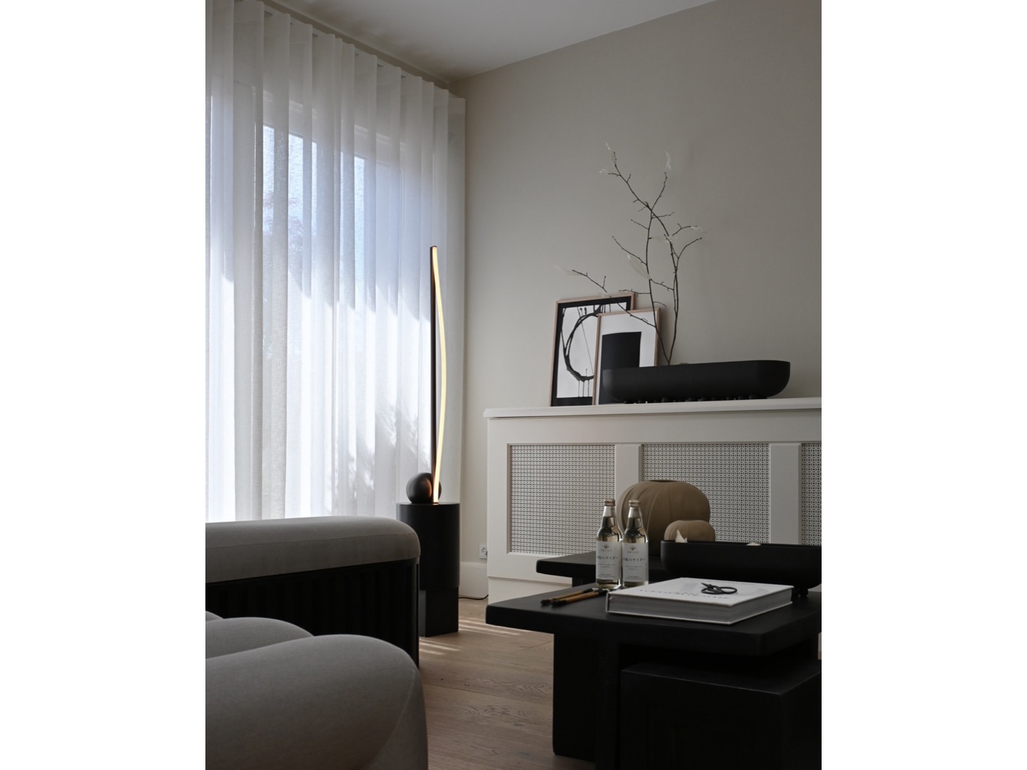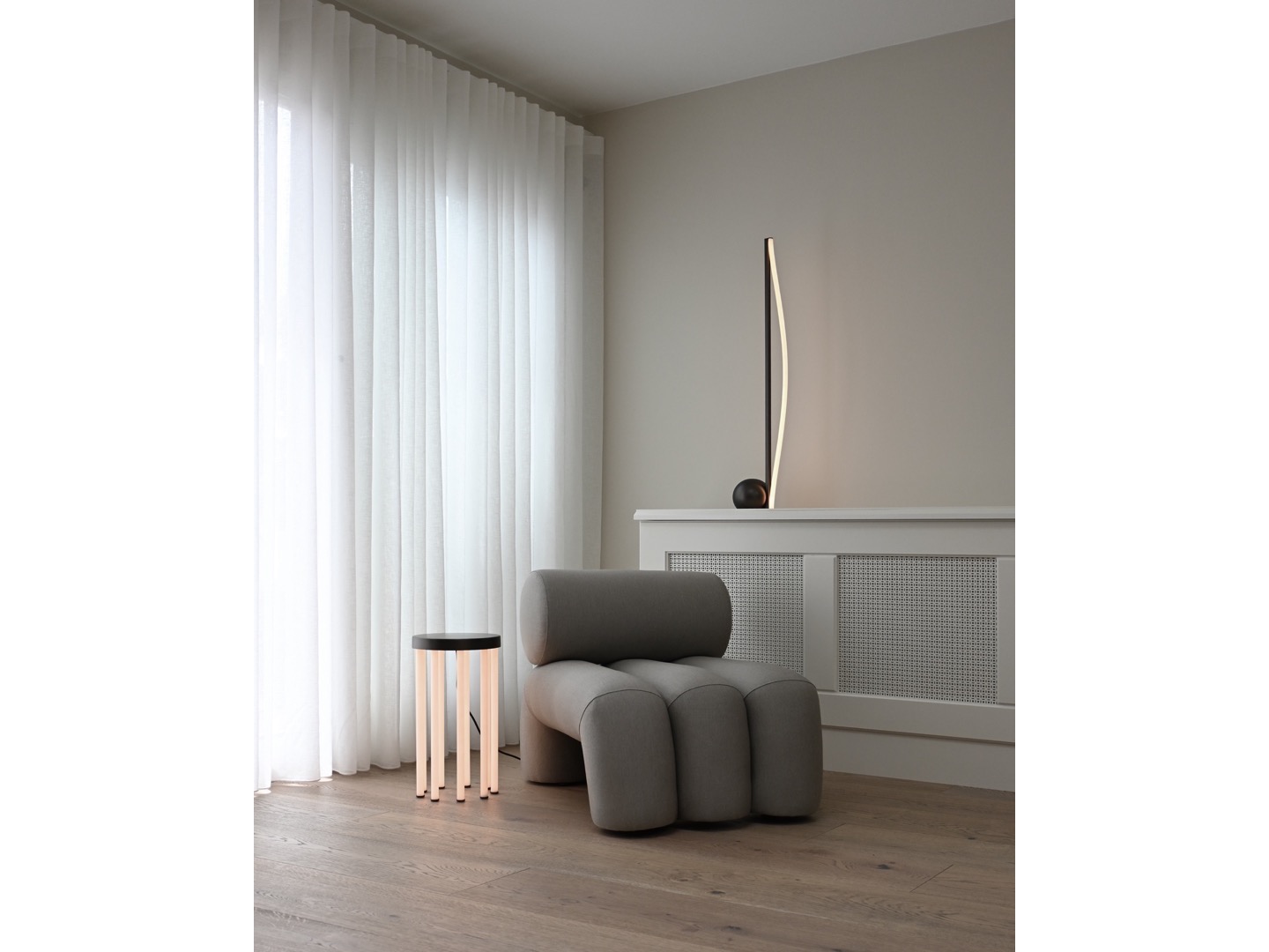 Lampa Bow jest inspirowana kształtem łuku. Wszystkie lampy z kolekcji są wyposażone we wbudowane źródło światła LED o temperaturze 2400 kelwinów, które tworzy ciepłą i przytulną atmosferę. Wszystkie metalowe części są pokryte brązem.