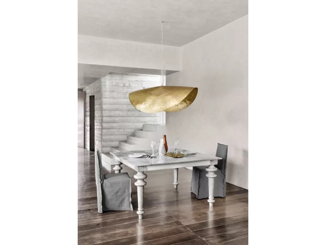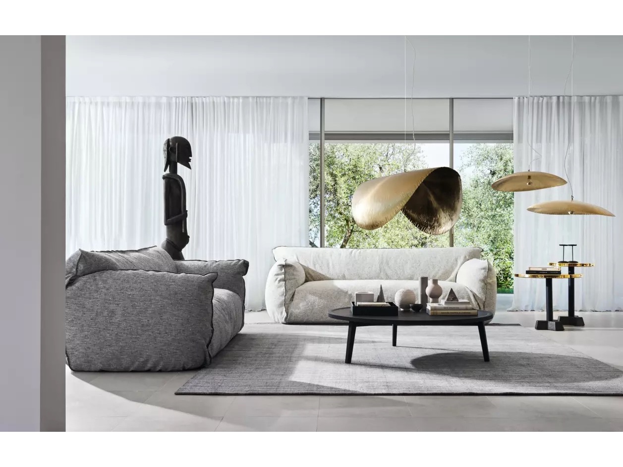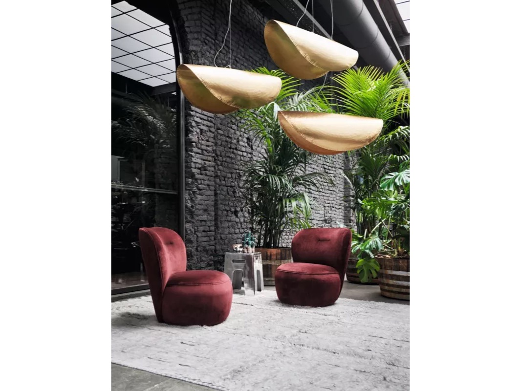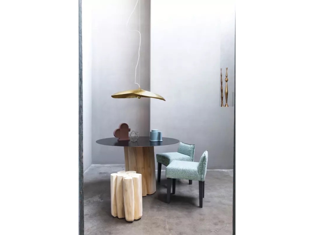 Dzięki silnemu efektowi dekoracyjnemu, kolekcja lamp BRASS wykorzystuje plastyczność mosiądzu i jego zdolność do ozdabiania wnętrz ciepłymi i złotymi refleksami światła. Lampy mają delikatny kształt: lekki mosiężny krążek z lekką krzywizną w mniejszej wersji lub mocno zaakcentowany w większej, która unosi się w powietrzu odbijając światło. Można je stosować pojedynczo lub łączyć ze sobą, aby uzyskać jeszcze bardziej filmowy efekt.