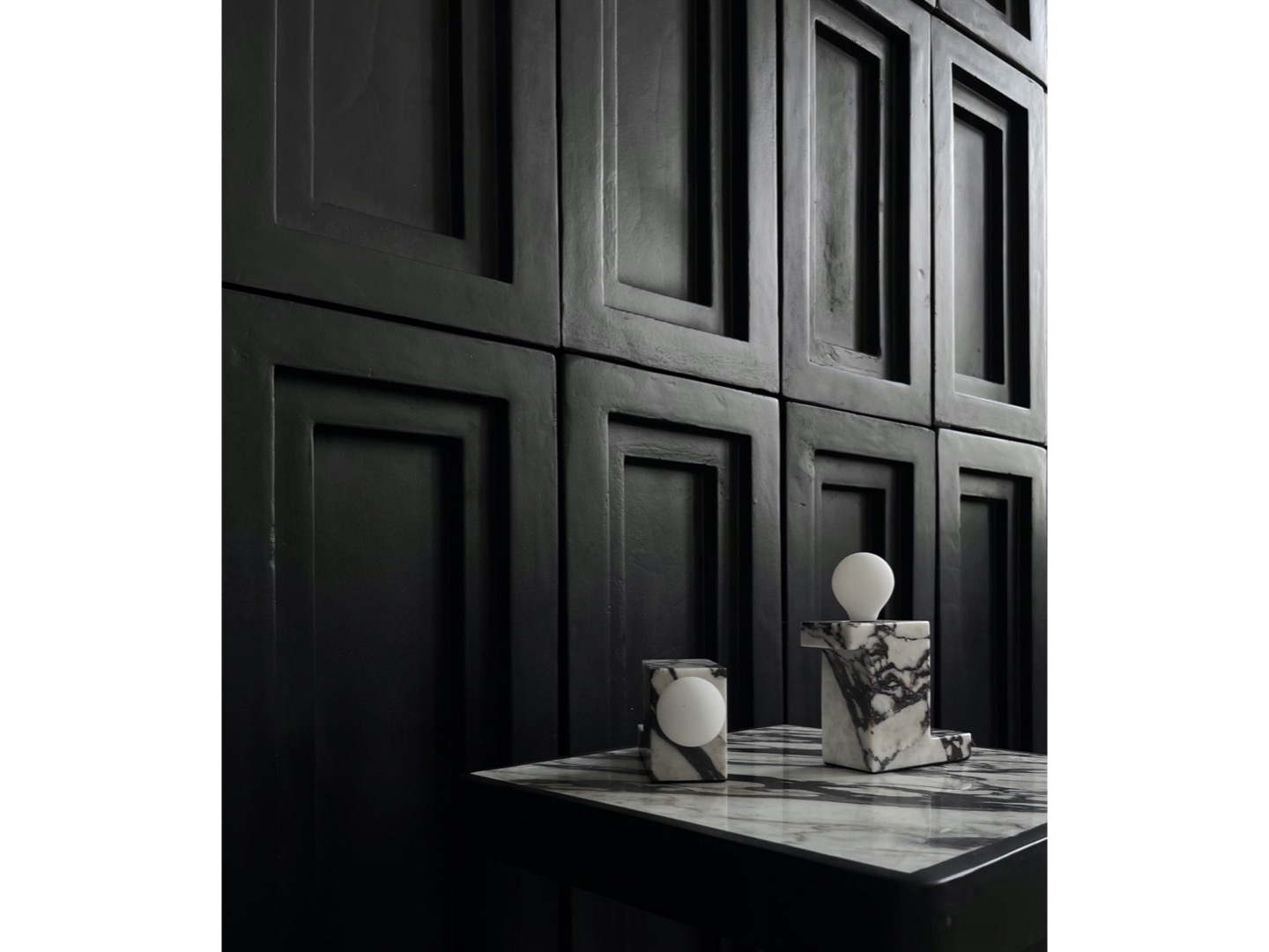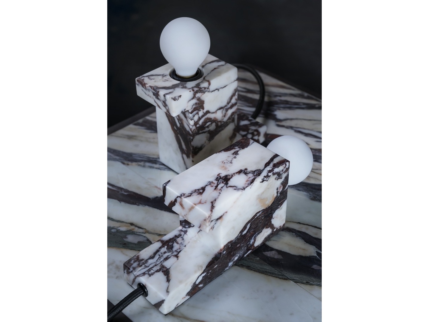 Lampa wykonana jest z marmuru Calacatta.