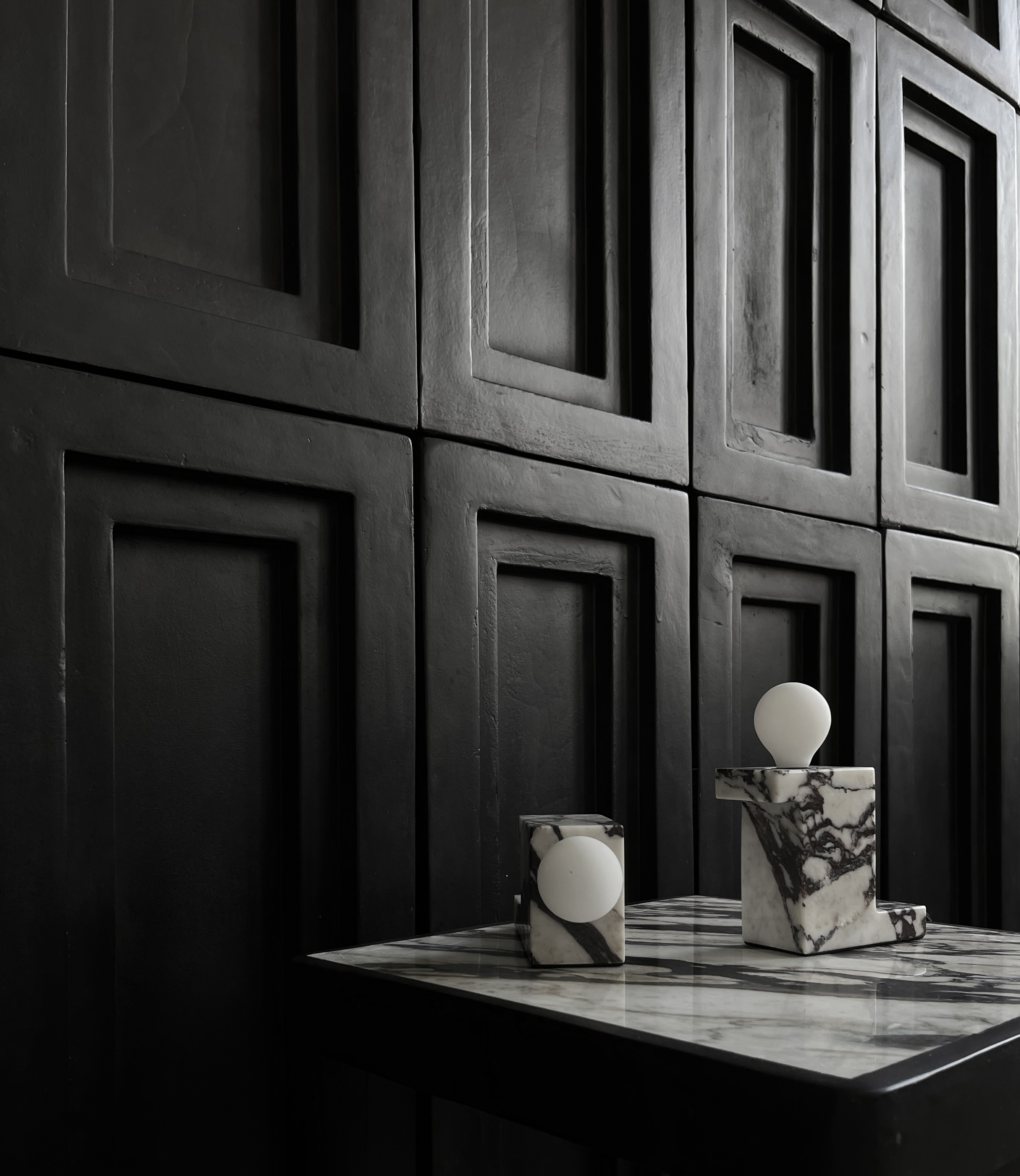 Lampa wykonana jest z marmuru Calacatta.