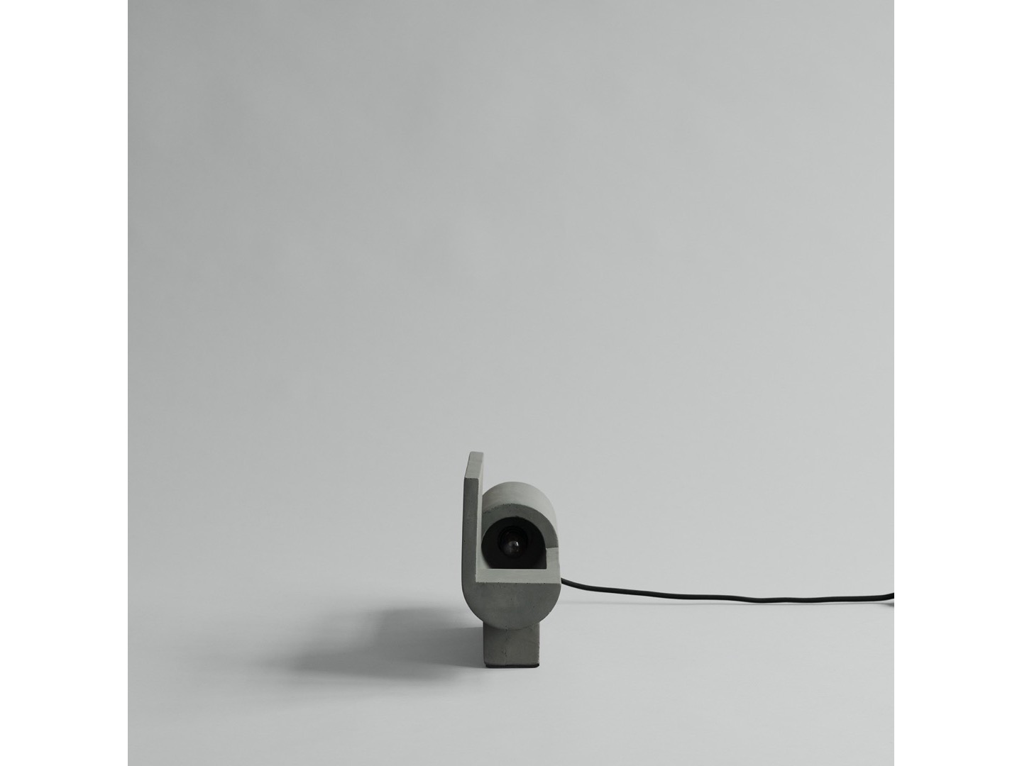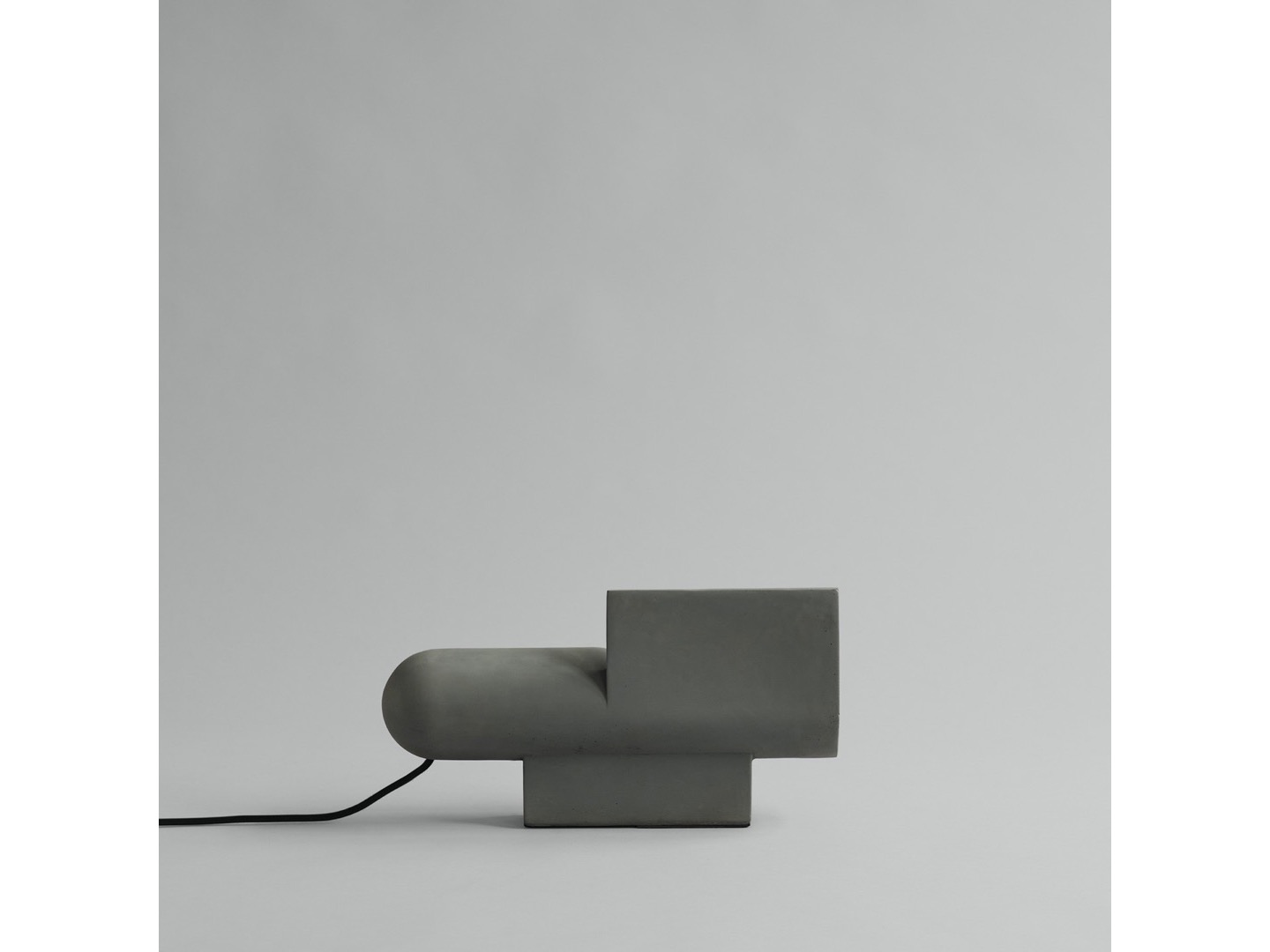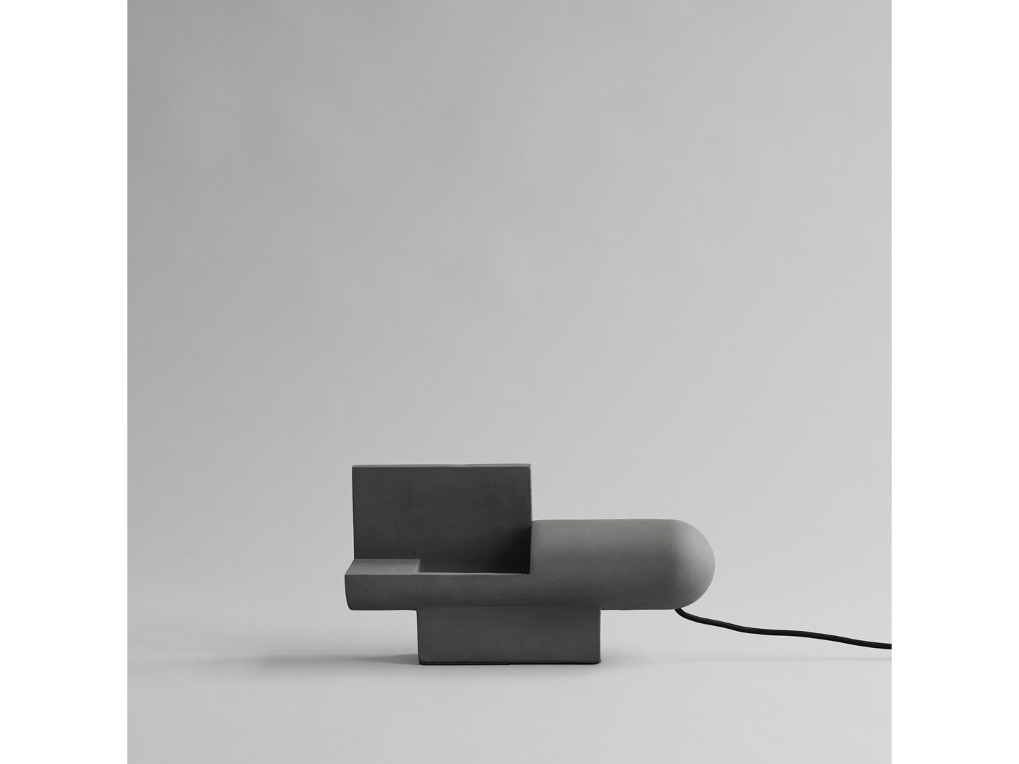 Brutalist to rzeźbiarska lampa stołowa wykonana z odlewanego lekkiego betonu z ukrytym źródłem światła.