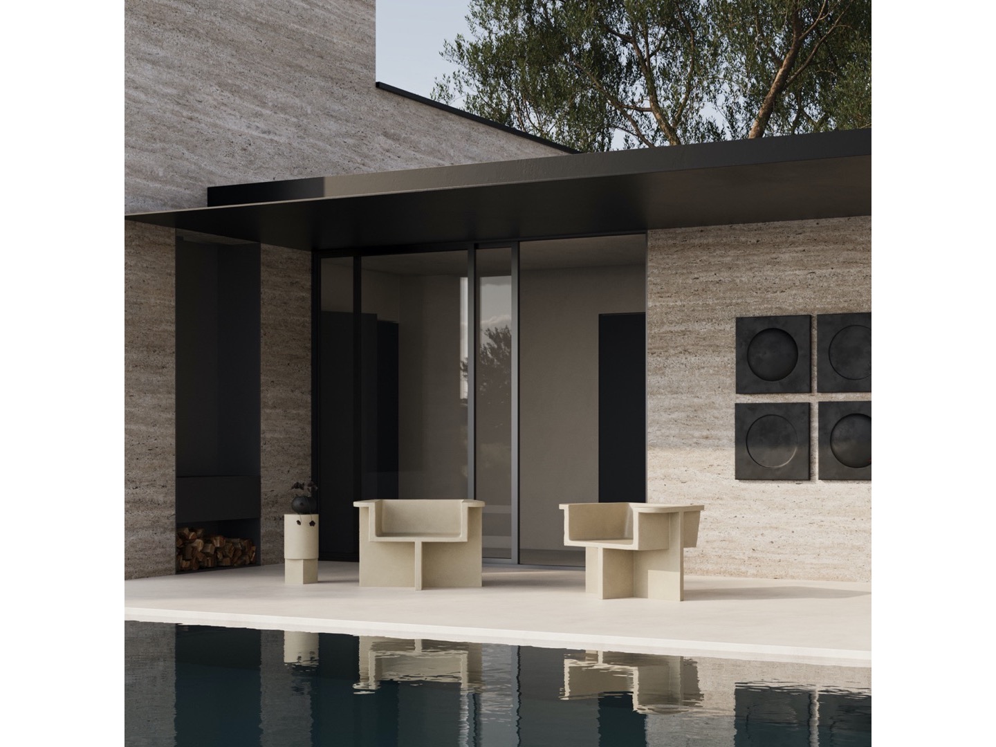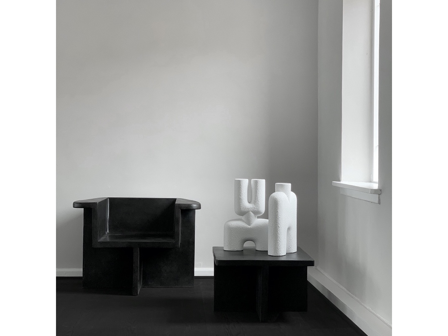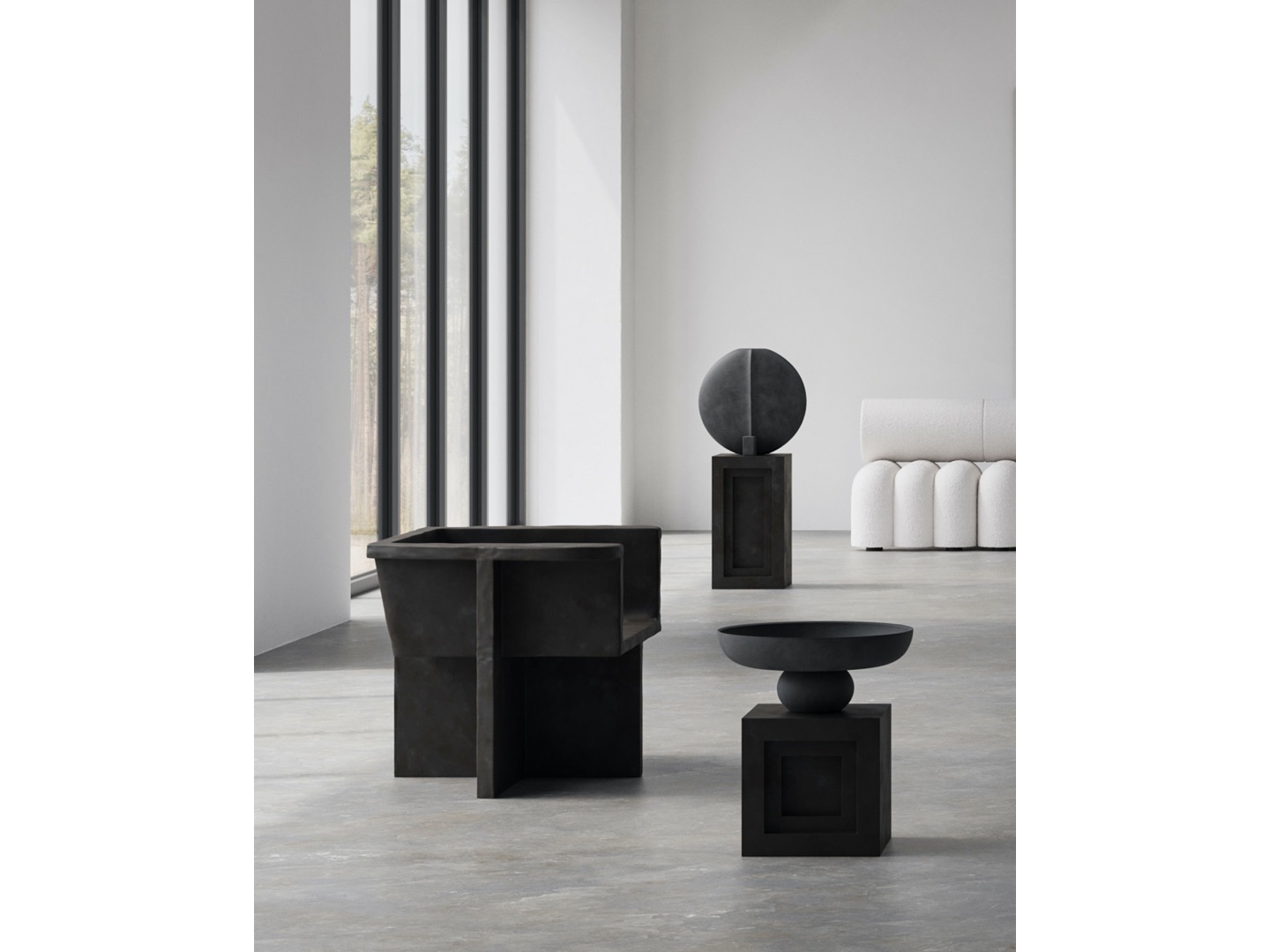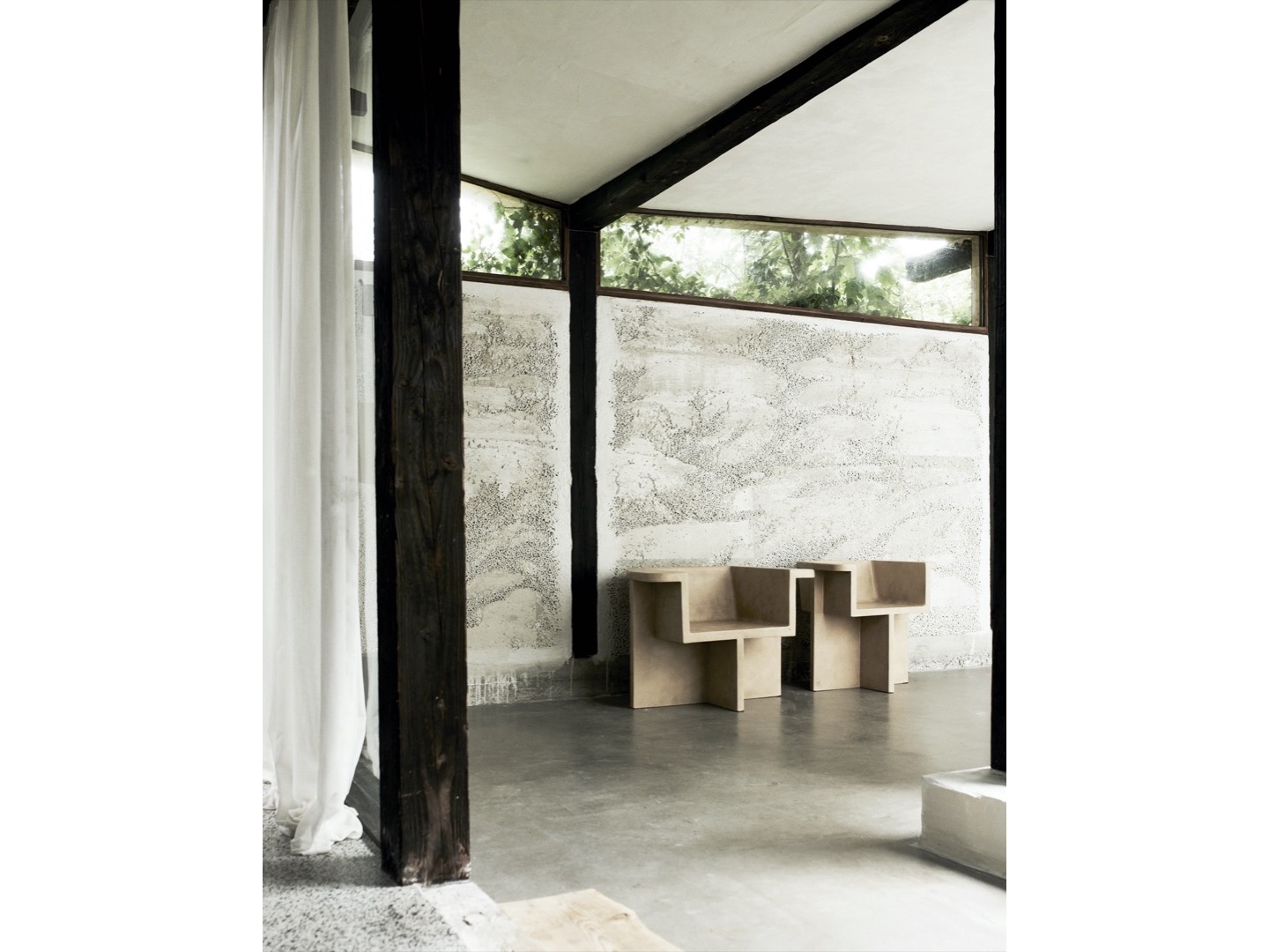 Zainspirowana ruchem architektury brutalistycznej z połowy XX wieku, kolekcja Brutus składa się z krzesła do jadalni, fotela wypoczynkowego, stołka i stolika kawowego odlanych z lekkiego betonu włóknistego, tworzącego unikalną powierzchnię zwiększającą mobilność. Każdy element jest ręcznie malowany, aby stworzyć, niepowtarzalną teksturę. Kolekcja podkreśla subtelną równowagę między ostrymi liniami architektonicznymi a nieco bardziej miękką krzywizną oparcia i podłokietnika.