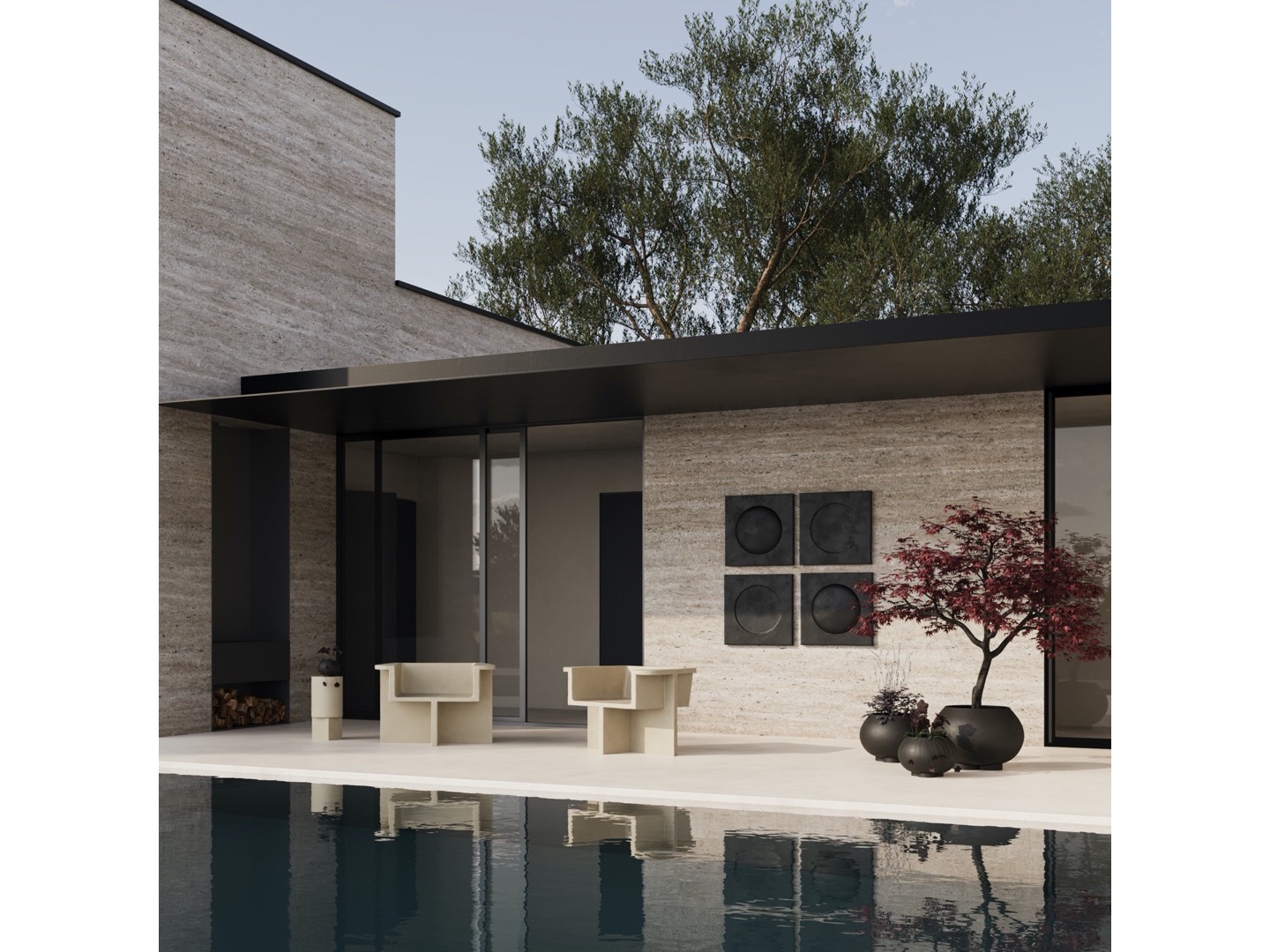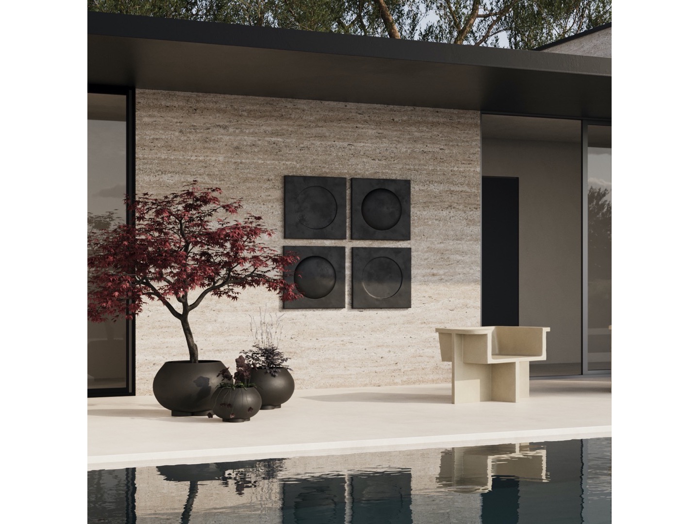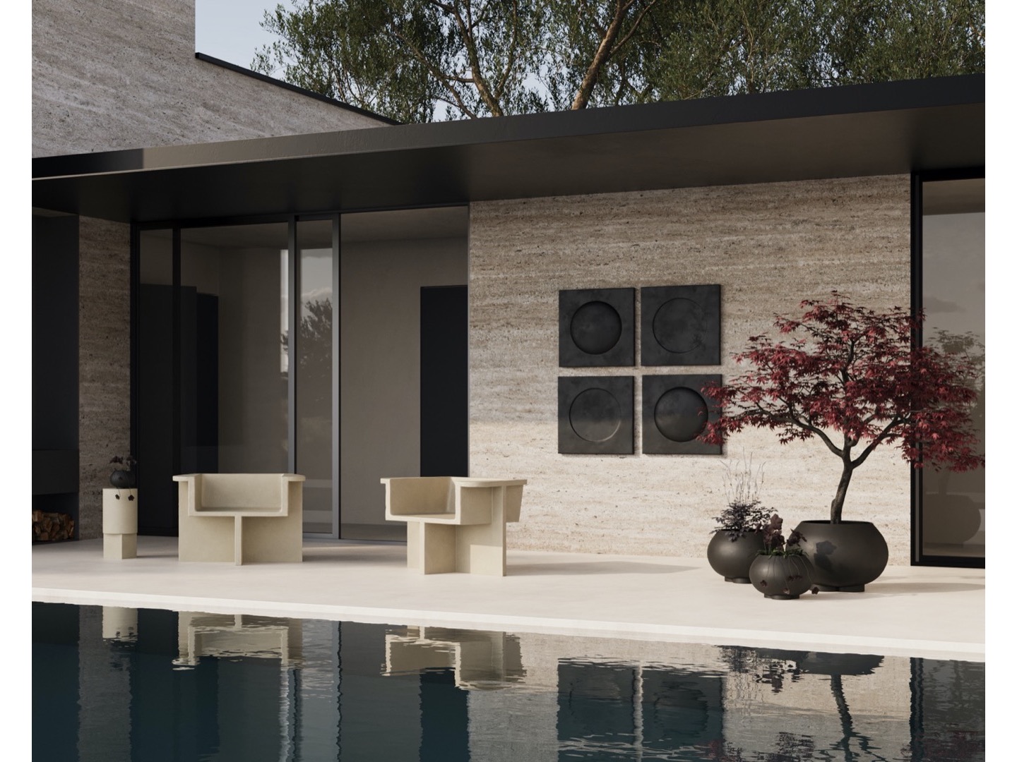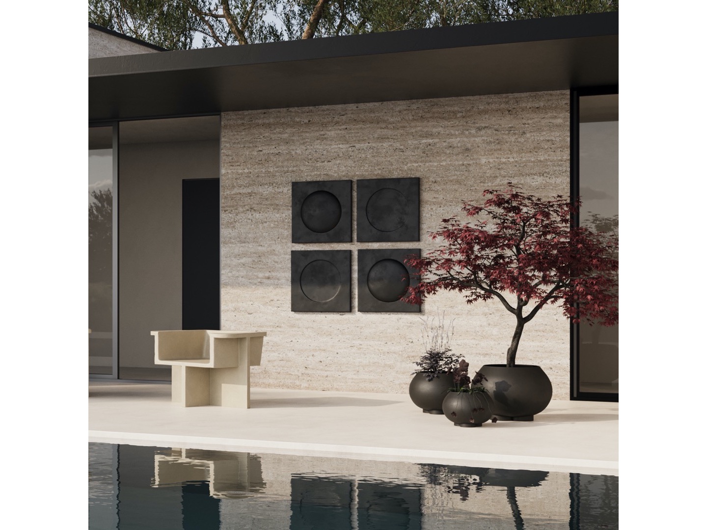 Zainspirowana ruchem architektury brutalistycznej z połowy XX wieku, kolekcja Brutus składa się z krzesła do jadalni, fotela wypoczynkowego, stołka i stolika kawowego odlanych z lekkiego betonu włóknistego, tworzącego unikalną powierzchnię zwiększającą mobilność. Każdy element jest ręcznie malowany, aby stworzyć, niepowtarzalną teksturę. Kolekcja podkreśla subtelną równowagę między ostrymi liniami architektonicznymi a nieco bardziej miękką krzywizną oparcia i podłokietnika.