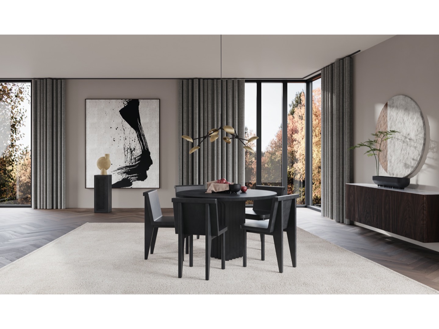 Zainspirowana ruchem architektury brutalistycznej z połowy XX wieku, kolekcja Brutus składa się z krzesła do jadalni, fotela wypoczynkowego, stołka i stolika kawowego odlanych z lekkiego betonu włóknistego, tworzącego unikalną powierzchnię zwiększającą mobilność. Każdy element jest ręcznie malowany, aby stworzyć, niepowtarzalną teksturę. Kolekcja podkreśla subtelną równowagę między ostrymi liniami architektonicznymi a nieco bardziej miękką krzywizną oparcia i podłokietnika.