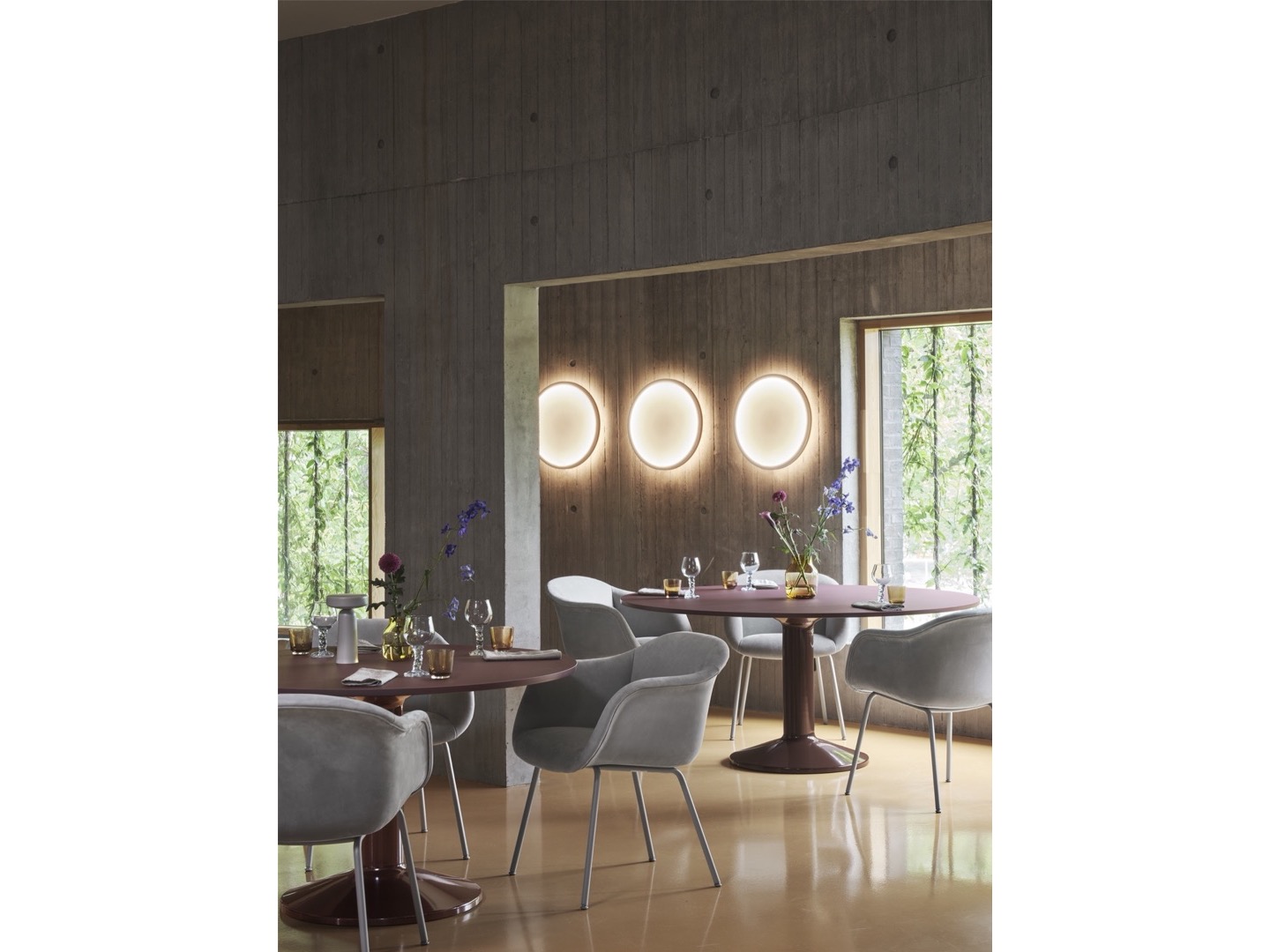 Lampa ścienna Calm oferuje zupełnie nowe spojrzenie na oświetlenie, z rzadkim połączeniem nastrojowego oświetlenia i cech rzeźbiarskich. Choć jest z natury funkcjonalny, jest także dziełem sztuki samym w sobie. Tekstylna powierzchnia delikatnie rozprasza światło, tworząc gradient od krawędzi do centralnego źródła światła. Możliwość regulacji temperatury oświetlenia pozwala użytkownikowi stworzyć spokojne, nastrojowe światło według własnych upodobań i potrzeb. Matowa gumka otacza kinkiet Calm, nadając wyrazisty charakter miękkości organicznego projektu.