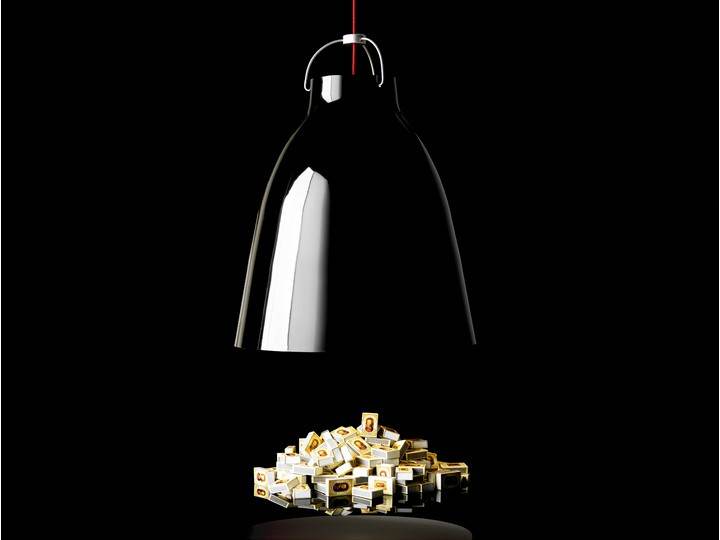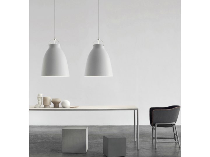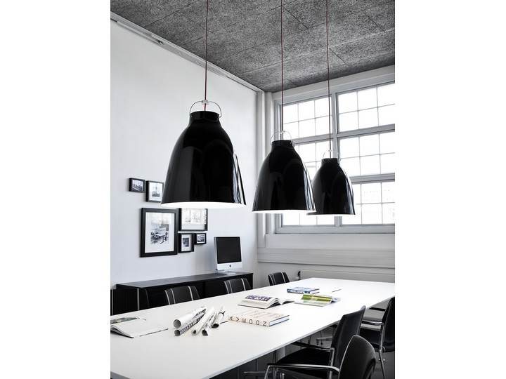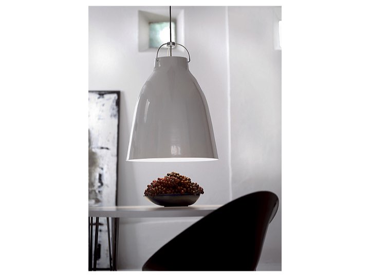 Lampy Caravaggio to seria charakterystycznych, oryginalnych lamp wiszących odznaczających się lekką, miękką niemal kobiecą linią. Lampy wykonane są z lekkiej i cienkiej stali malowanej z zewnątrz błyszczącym lakierem w kolorze czarnym lub białym. Dzięki swej konstrukcji Caravaggio daje skoncentrowane światło wydobywające się również delikatnie górą klosza. Cechą charakterystyczną jest również czerwony lub szary kabel, na którym wisi lampa.