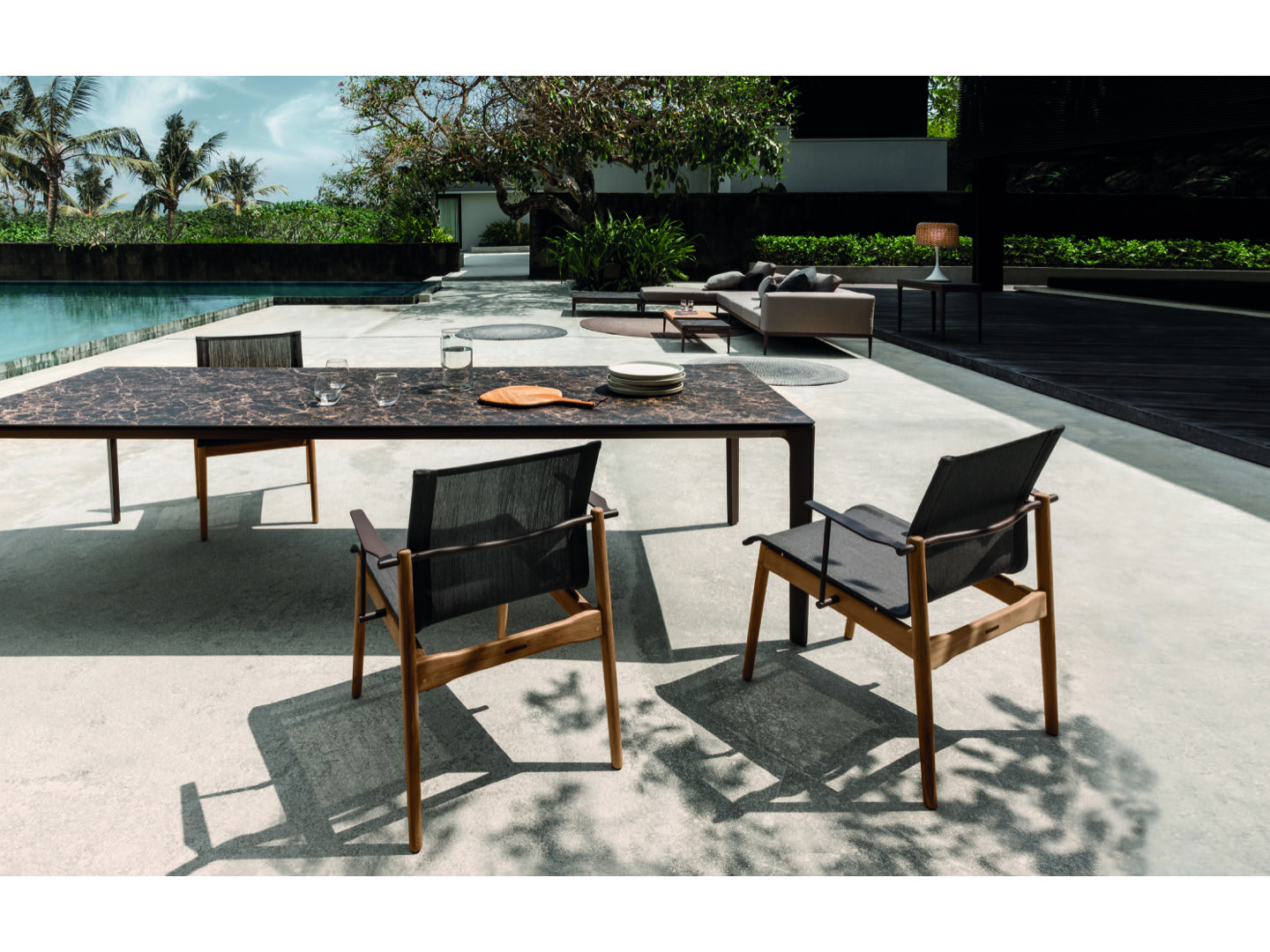 Kultowe stoły Carver sprawdzą się w każdym otoczeniu. Ich blat wykonany jest z drewna tekowego lub ceramiki, dzięki czemu idealnie sprawdzą się w twoim ogrodzie.