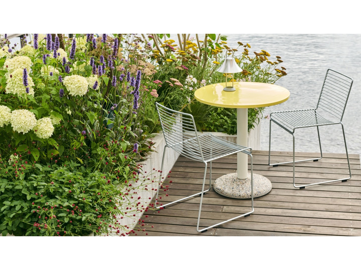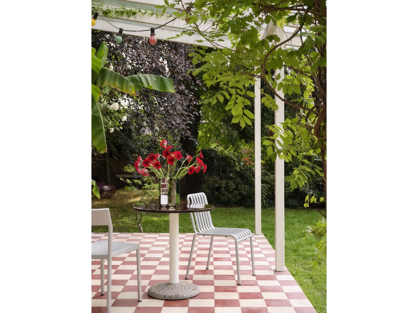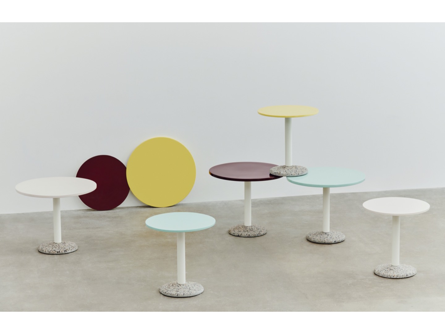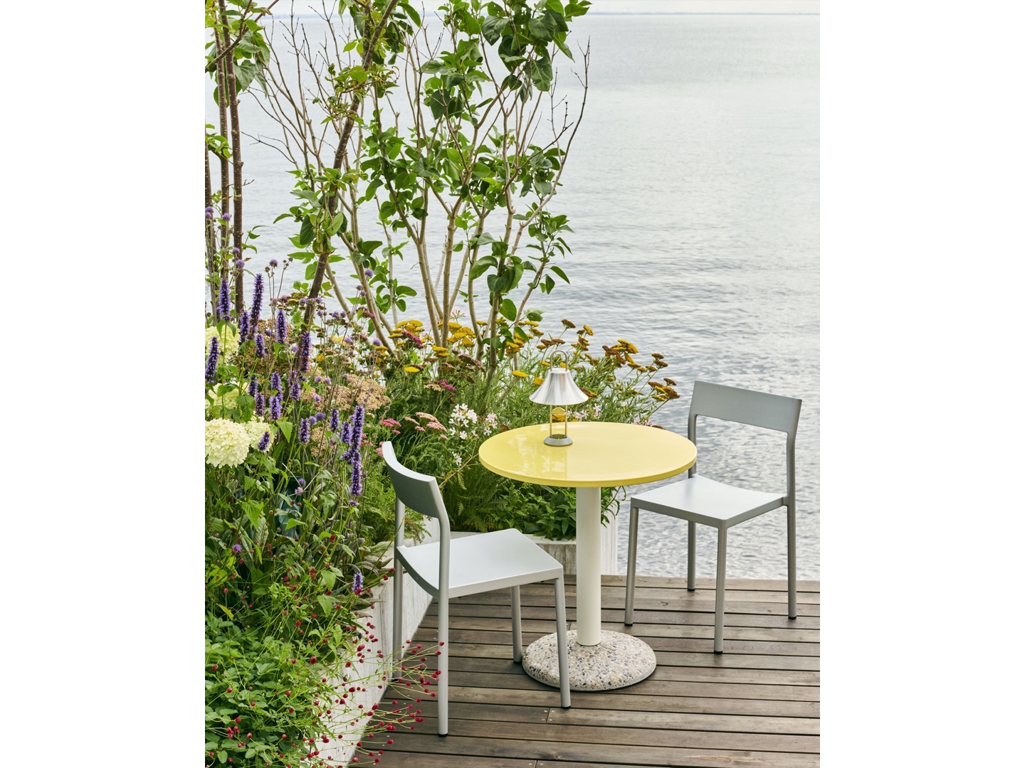 Zaprojektowany przez Mullera Van Severena, Ceramic Table to stół zewnętrzny, który charakteryzuje się minimalistyczną ekspresją połączoną z odważnym użyciem koloru. Klasyczny archetyp stołu, składający się z okrągłego blatu z porcelany umieszczonego na kolumnie ze stalowych rurek i betonowej podstawy, łączy silne wyczucie proporcji i solidna obecność koloru w materiale. Prostota, trwałość i wszechstronność stołu nadają mu uniwersalny wygląd, dzięki czemu można go łatwo łączyć z szeroką gamą krzeseł HAY w różnych przestrzeniach zewnętrznych.