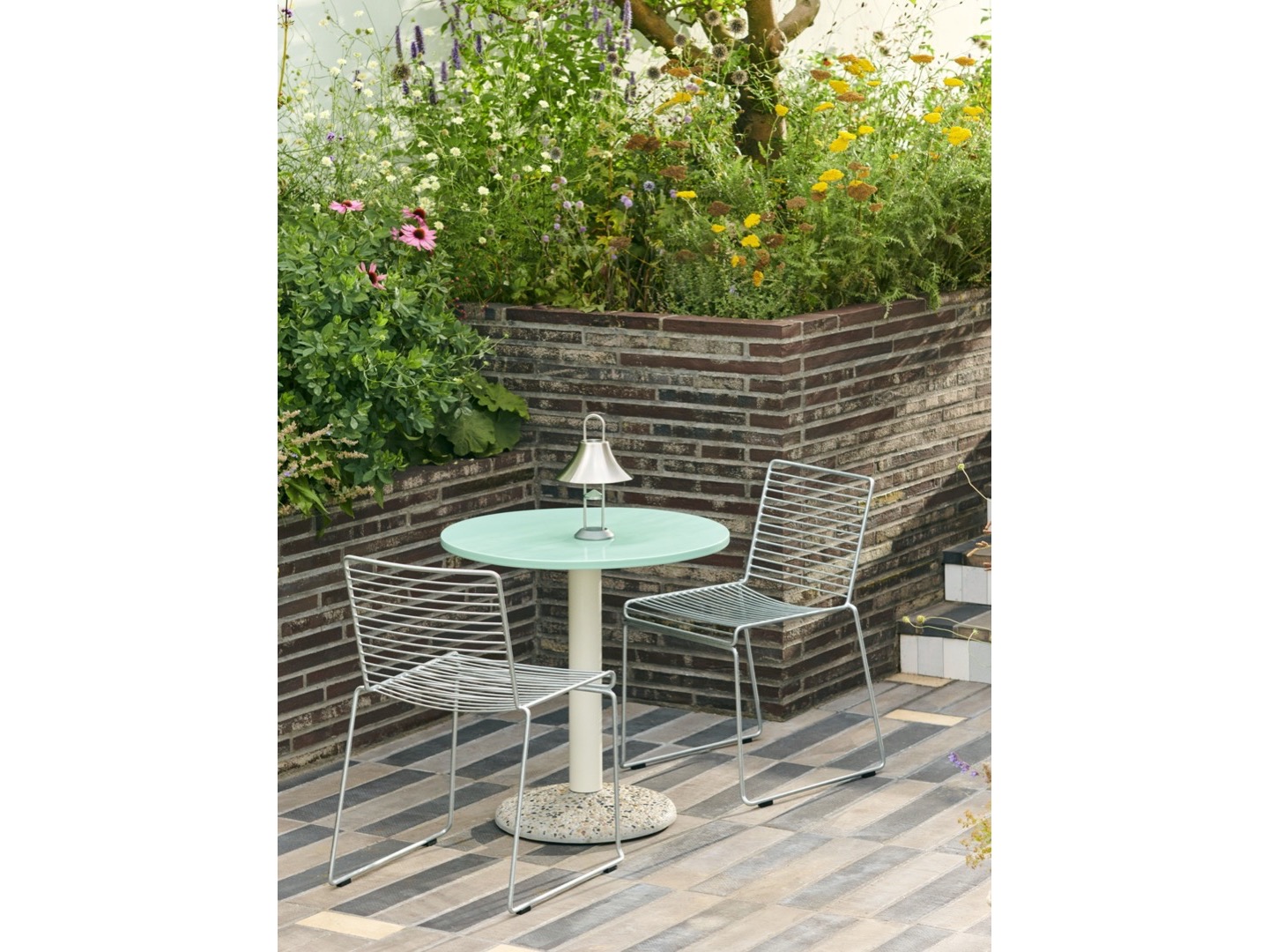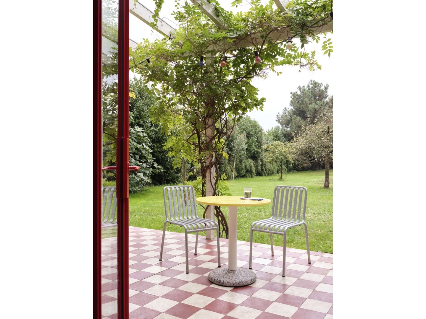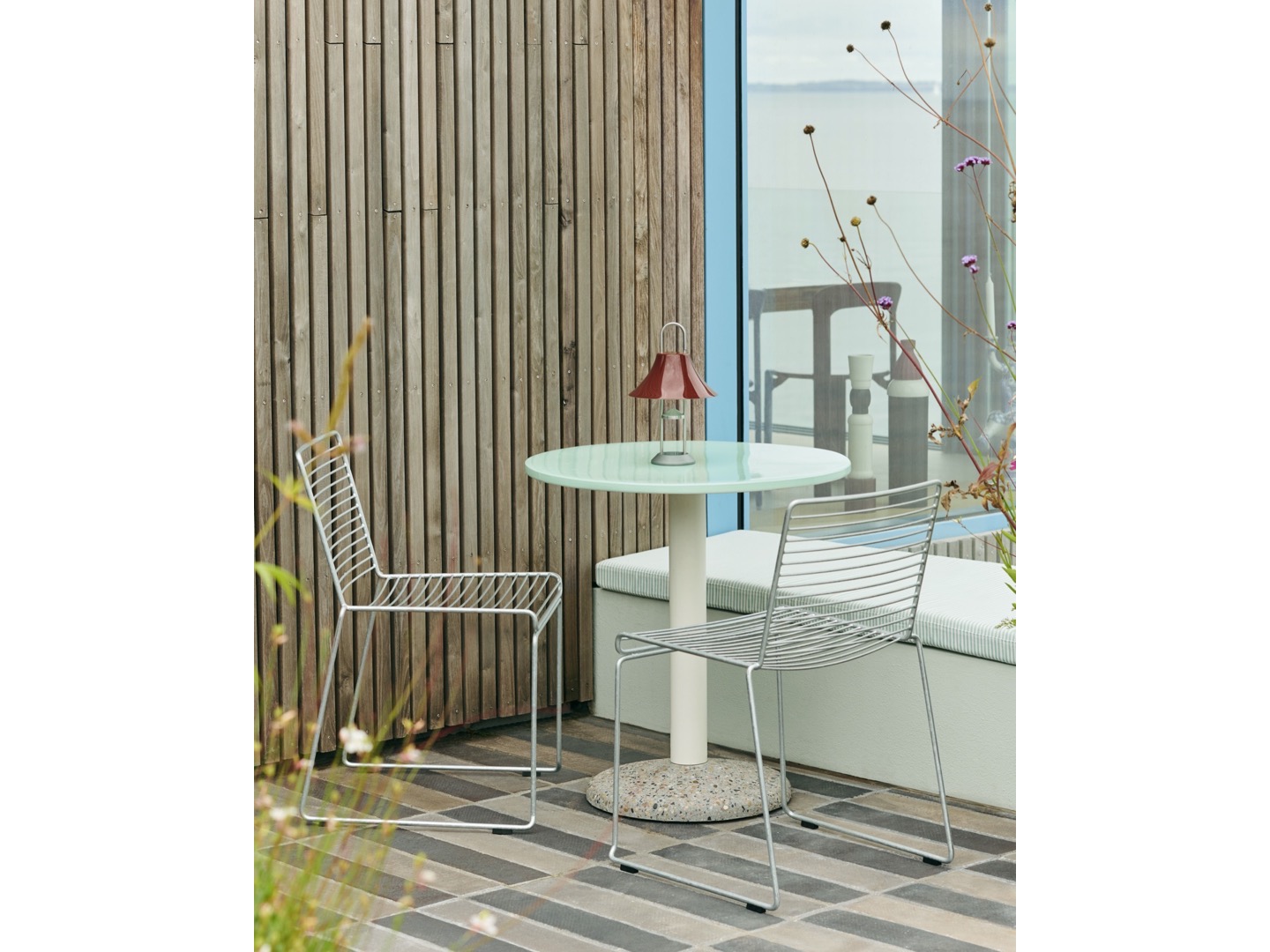 Zaprojektowany przez Mullera Van Severena, Ceramic Table to stół zewnętrzny, który charakteryzuje się minimalistyczną ekspresją połączoną z odważnym użyciem koloru. Klasyczny archetyp stołu, składający się z okrągłego blatu z porcelany umieszczonego na kolumnie ze stalowych rurek i betonowej podstawy, łączy silne wyczucie proporcji i solidna obecność koloru w materiale. Prostota, trwałość i wszechstronność stołu nadają mu uniwersalny wygląd, dzięki czemu można go łatwo łączyć z szeroką gamą krzeseł HAY w różnych przestrzeniach zewnętrznych.