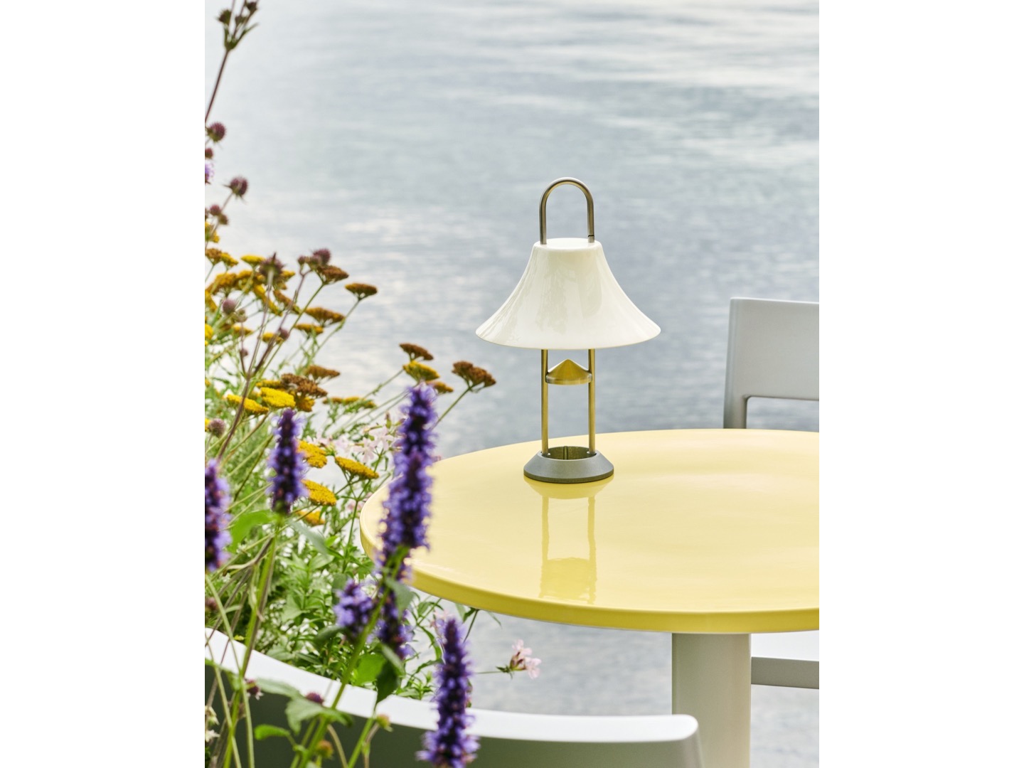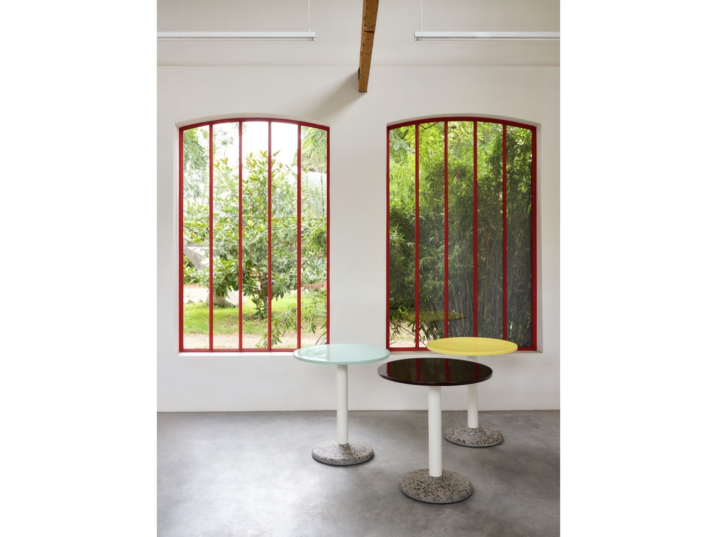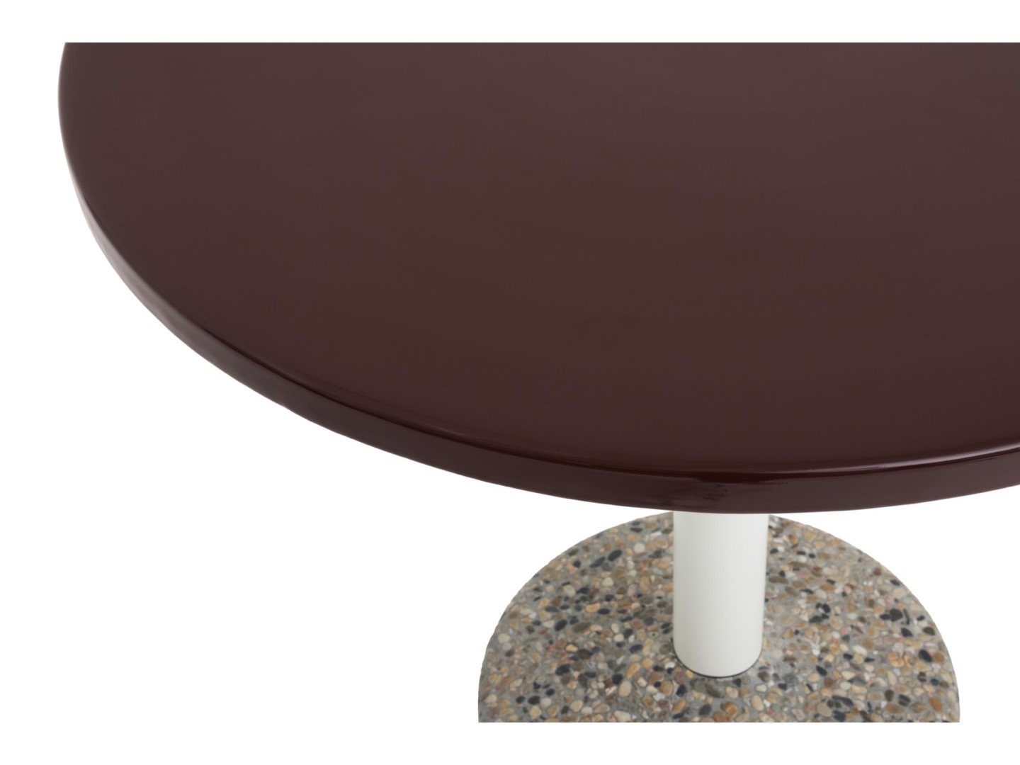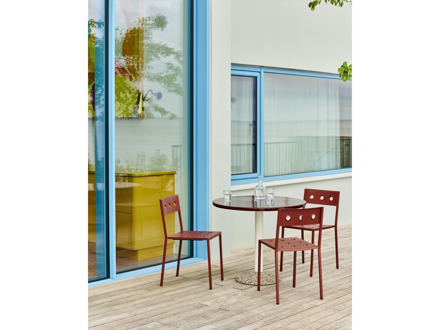 Zaprojektowany przez Mullera Van Severena, Ceramic Table to stół zewnętrzny, który charakteryzuje się minimalistyczną ekspresją połączoną z odważnym użyciem koloru. Klasyczny archetyp stołu, składający się z okrągłego blatu z porcelany umieszczonego na kolumnie ze stalowych rurek i betonowej podstawy, łączy silne wyczucie proporcji i solidna obecność koloru w materiale. Prostota, trwałość i wszechstronność stołu nadają mu uniwersalny wygląd, dzięki czemu można go łatwo łączyć z szeroką gamą krzeseł HAY w różnych przestrzeniach zewnętrznych.