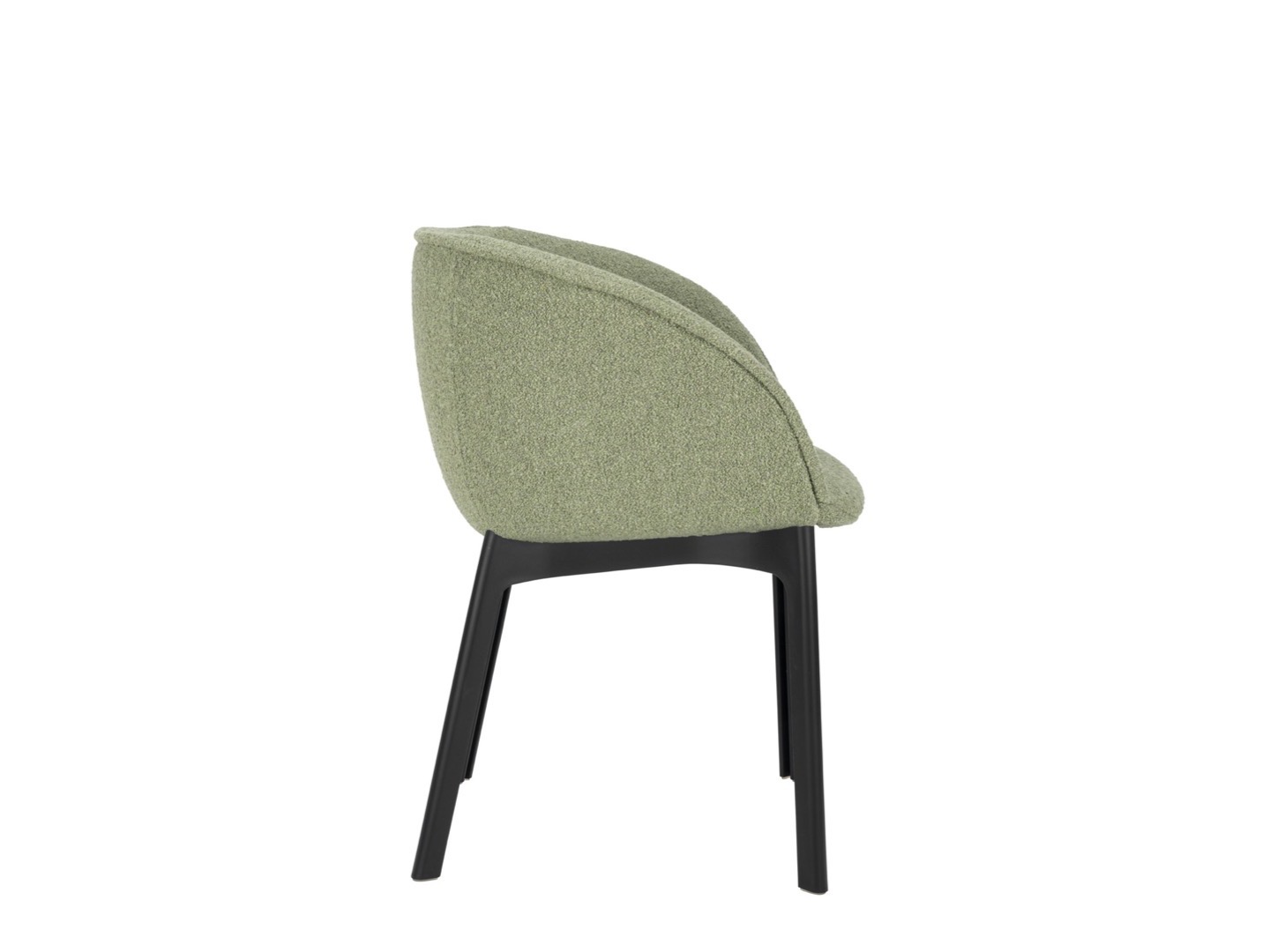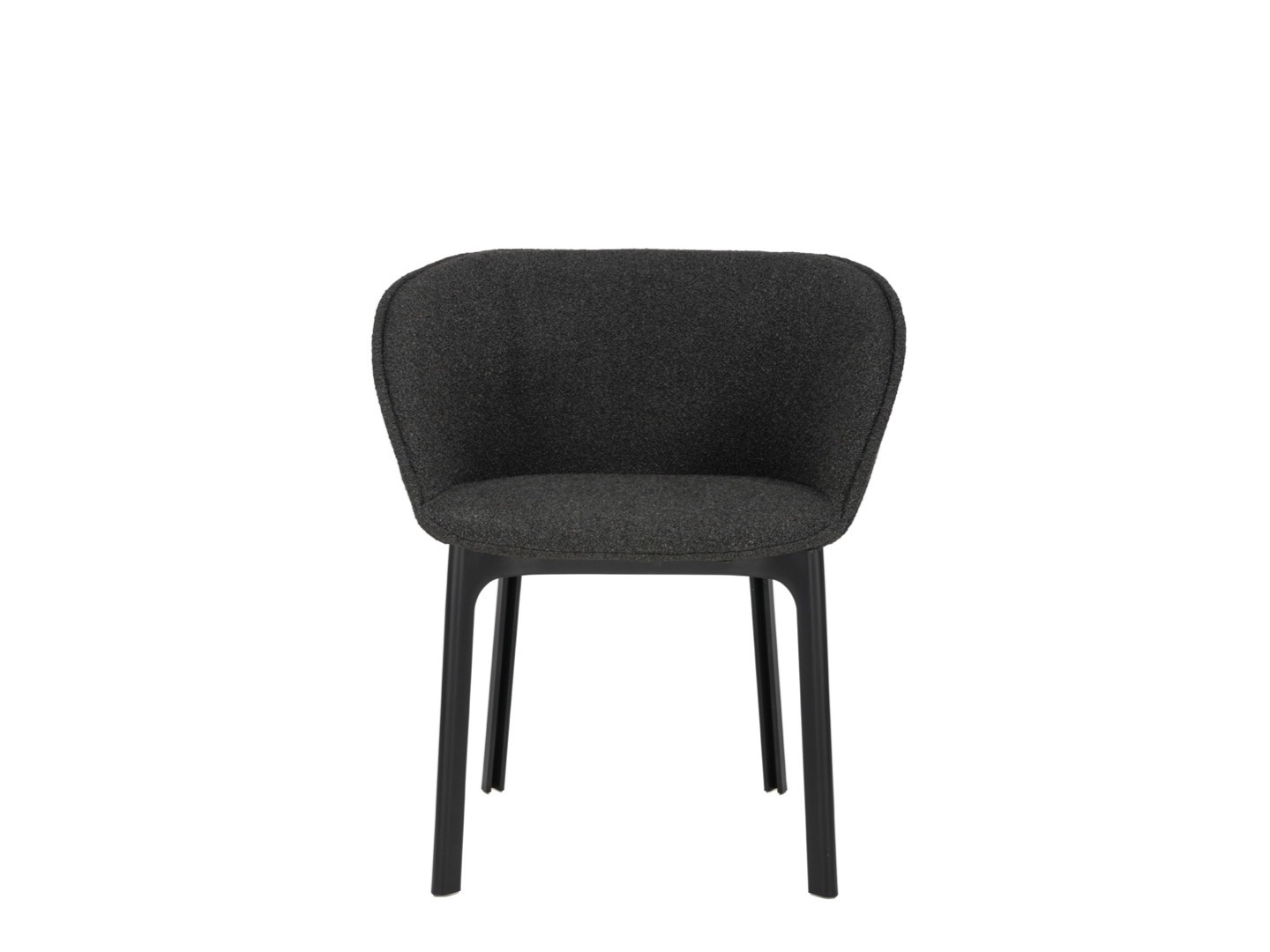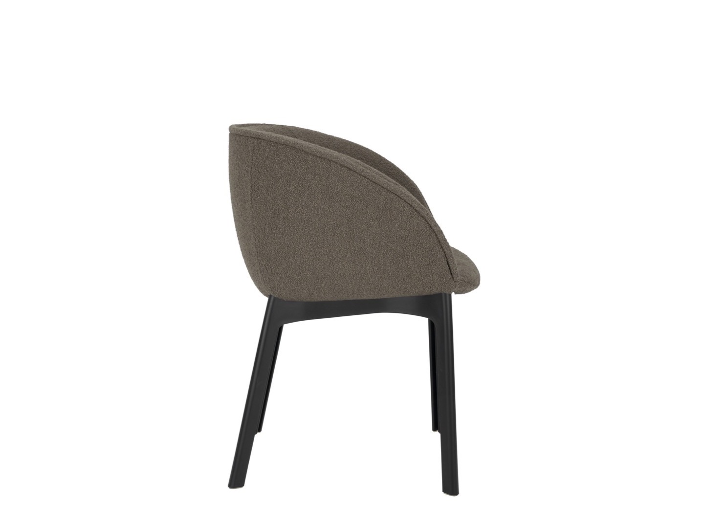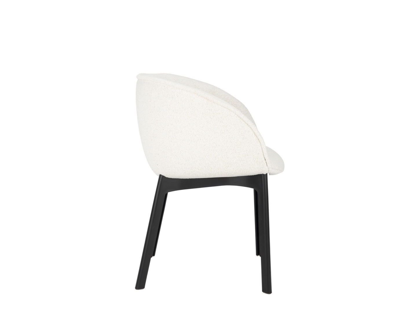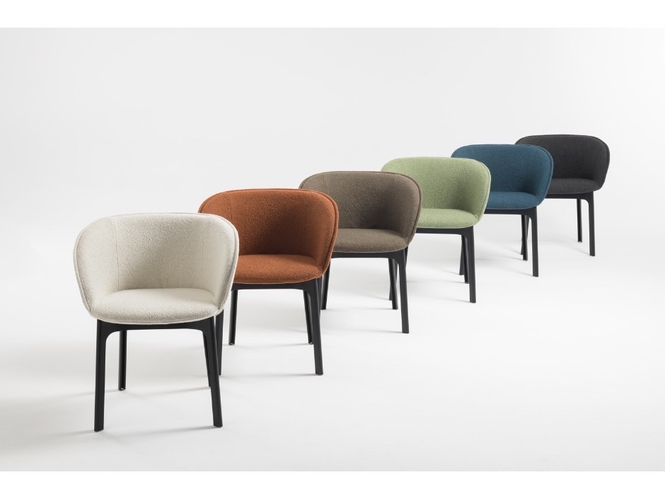 Charla łączy elegancję z trwałością dzięki nogom wykonanym z przetworzonego plastiku. Rama jest w kolorze czarnym, z tapicerką z tkaniny bouclé lub specjalnej tkaniny melanżowej.
